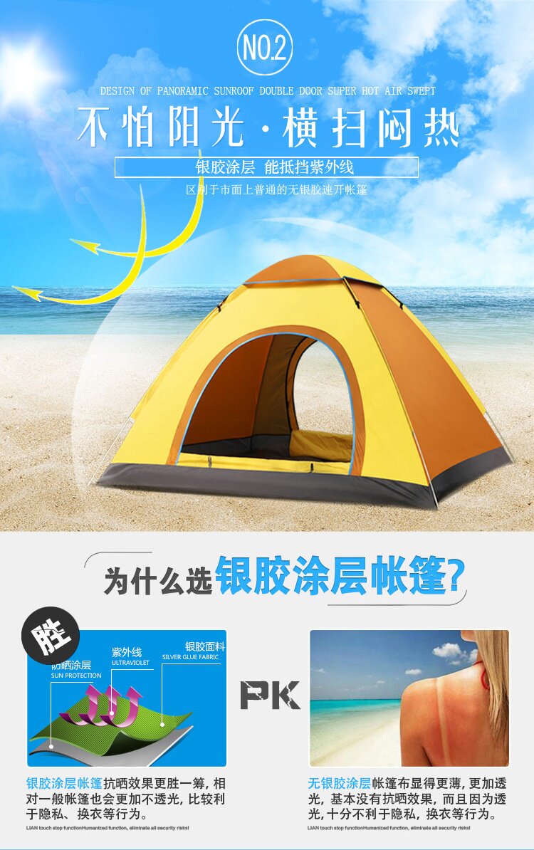 帳篷戶外3-4人全自動野營折疊帳篷沙灘簡易速開雙人露營裝備