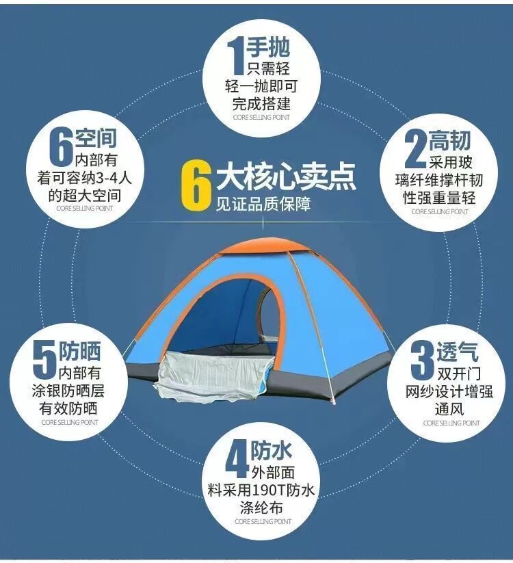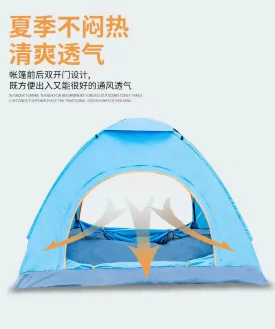 單人帳篷戶外防曬加厚防雨3-4人速開自動雙人2人野外露營沙灘帳