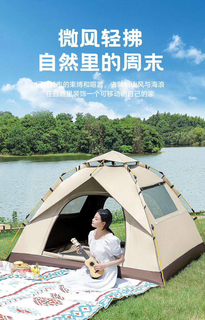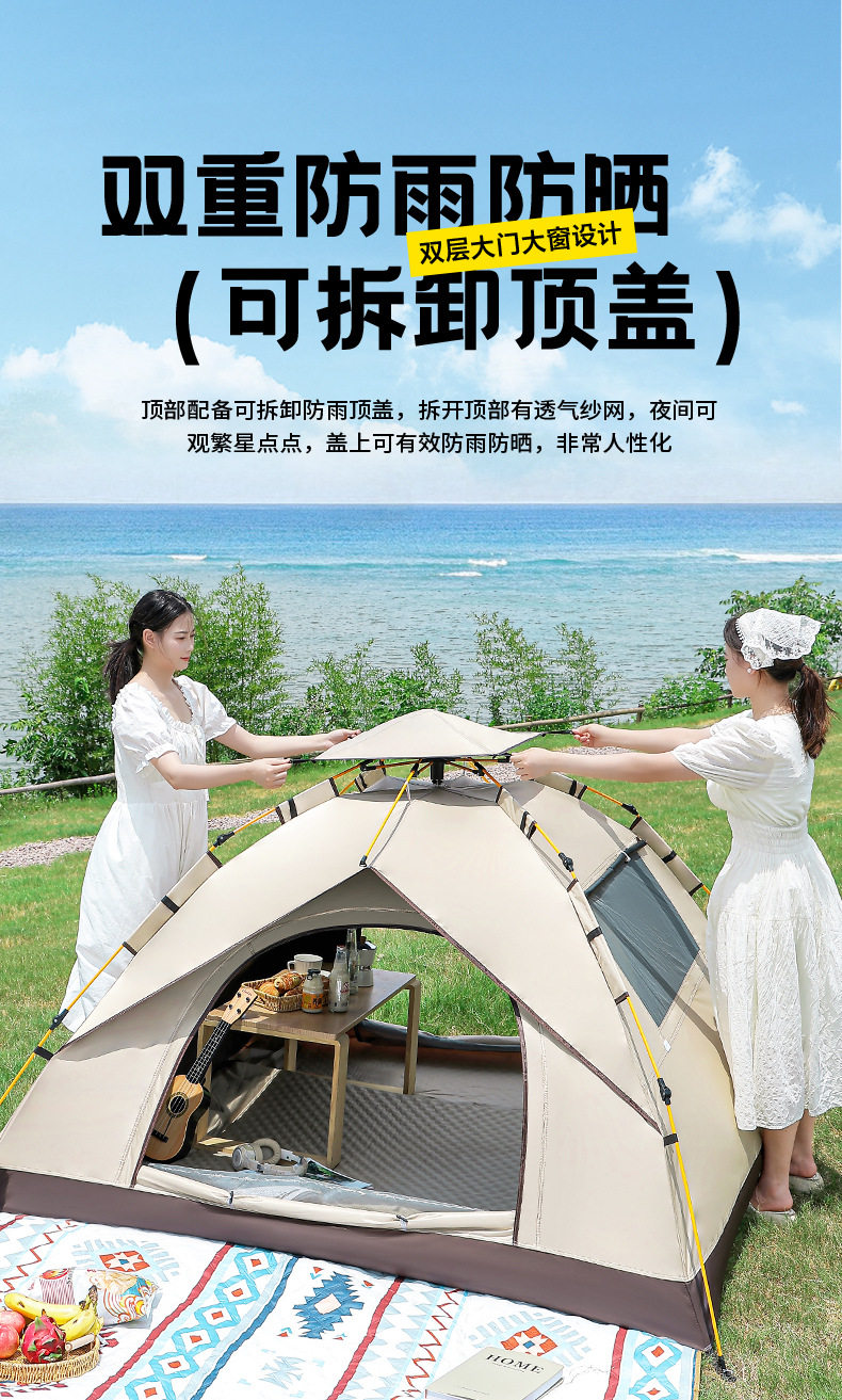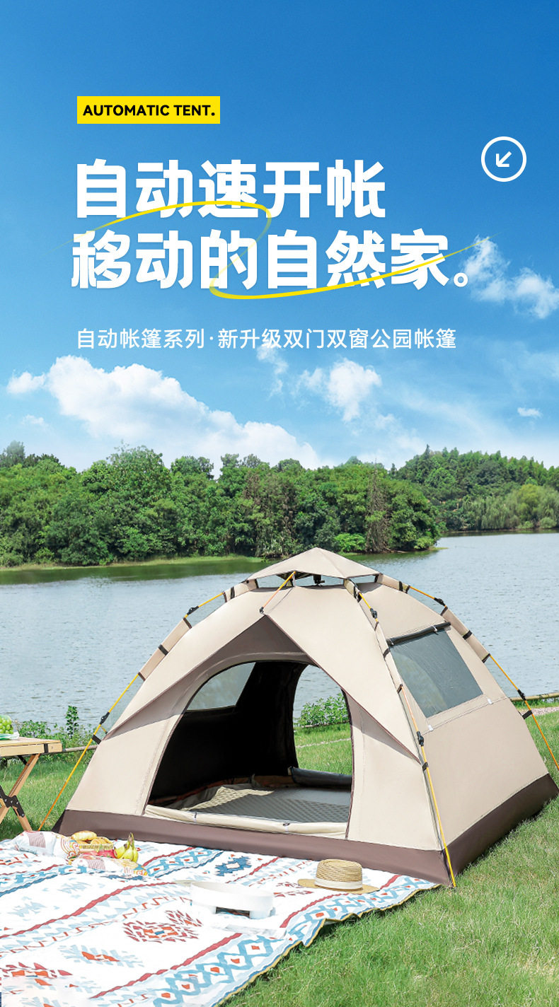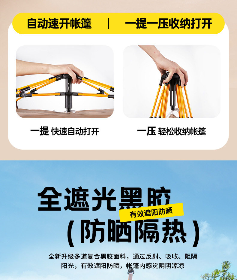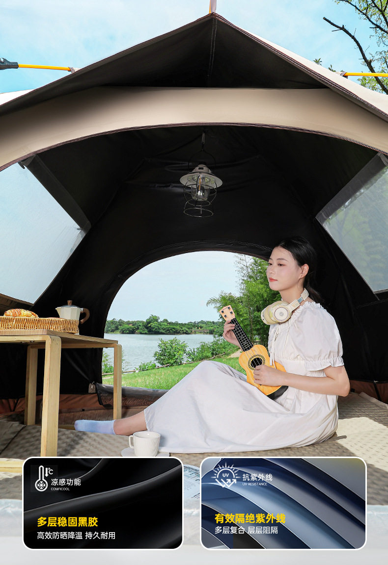 戶外可攜式露營帳篷野營春遊全自動速開帳篷沙灘防曬防蚊黑膠帳篷