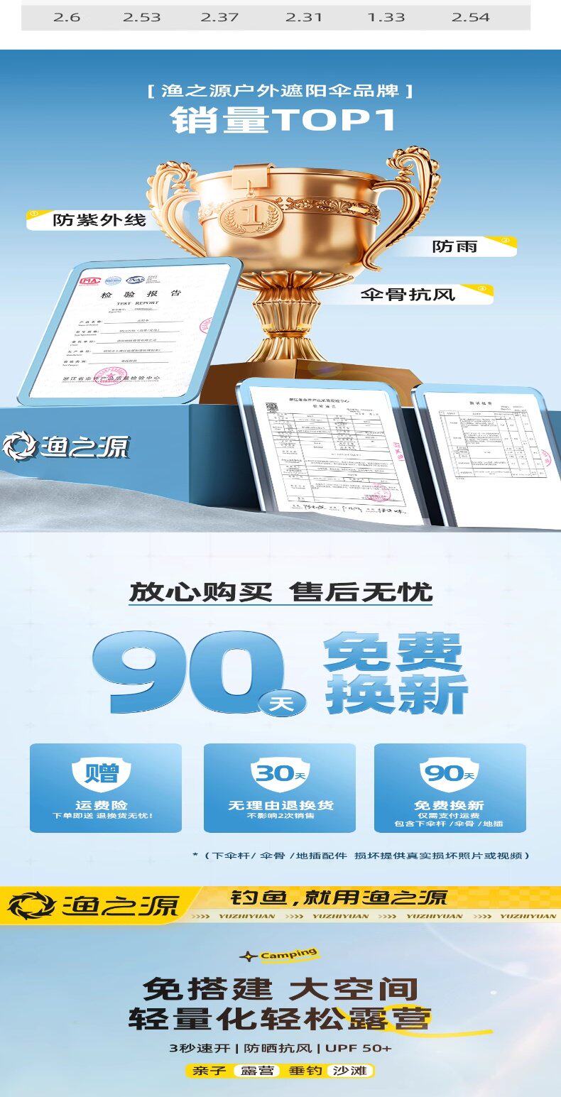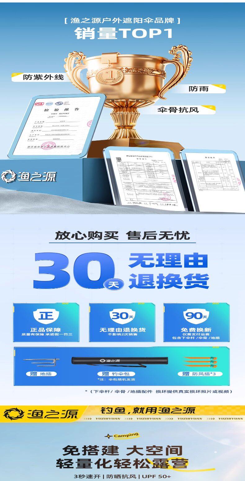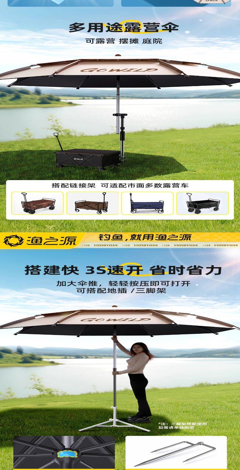 漁之源帳篷戶外免搭折疊可攜式一鍵速開野餐露營車天幕加厚遮陽傘