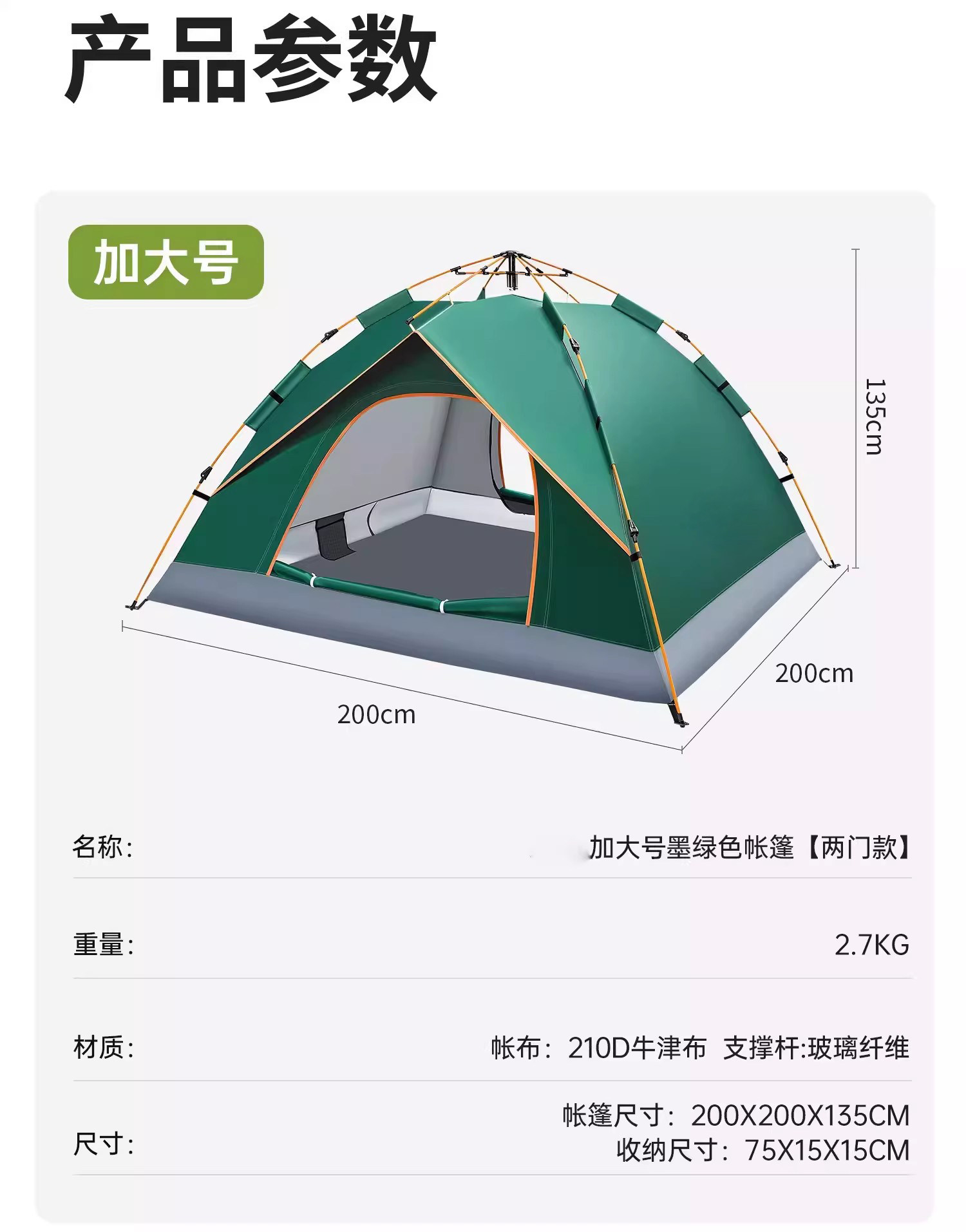 帳底材質 210D壓膠防水牛津布