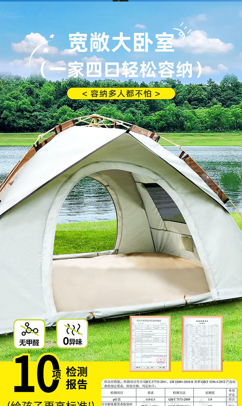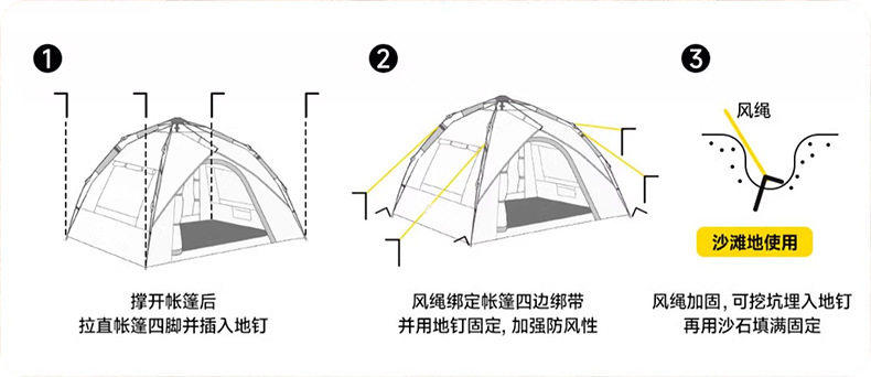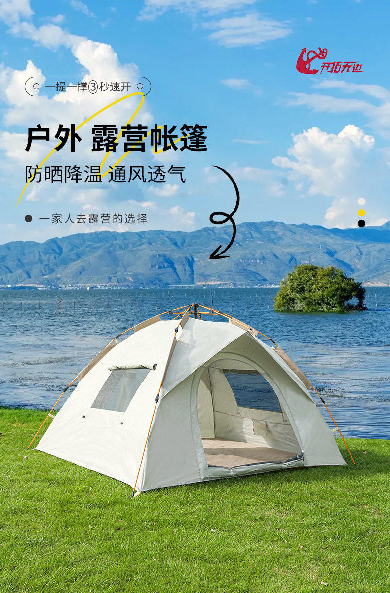 野行樂帳篷戶外可攜式折疊全自動露營沙灘速開野營黑膠塗層加厚防雨