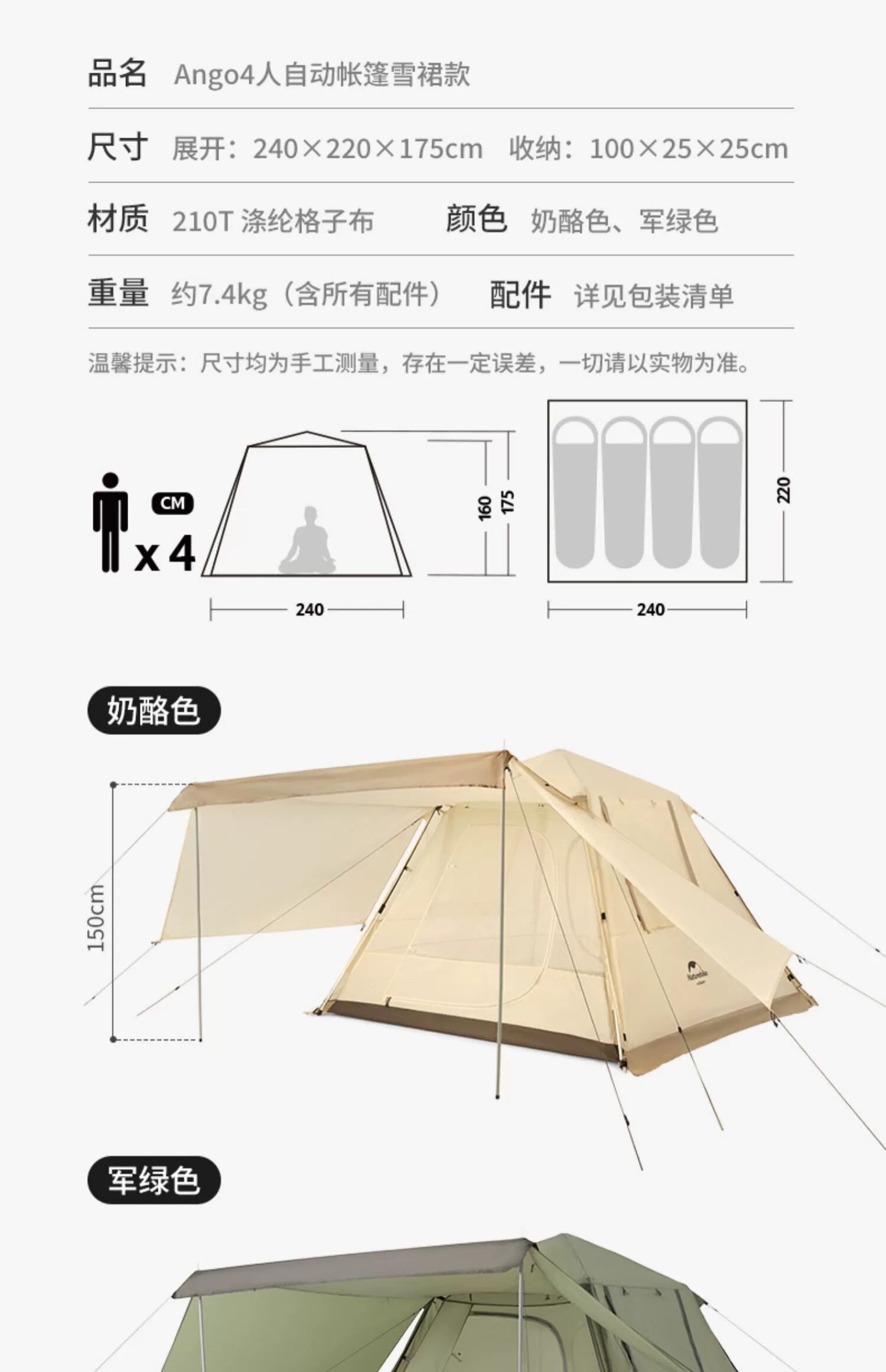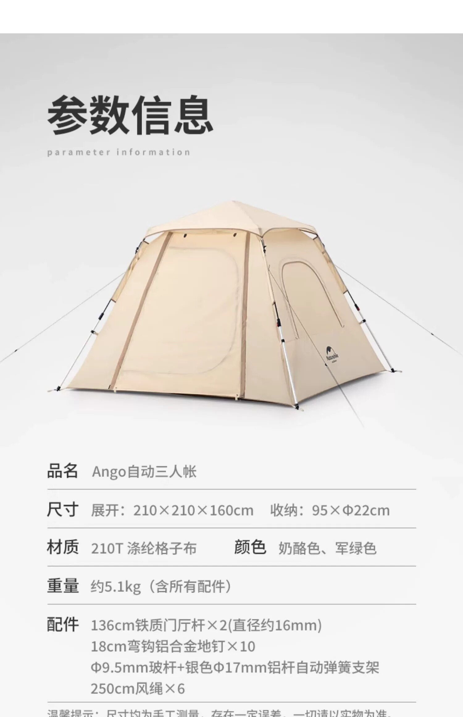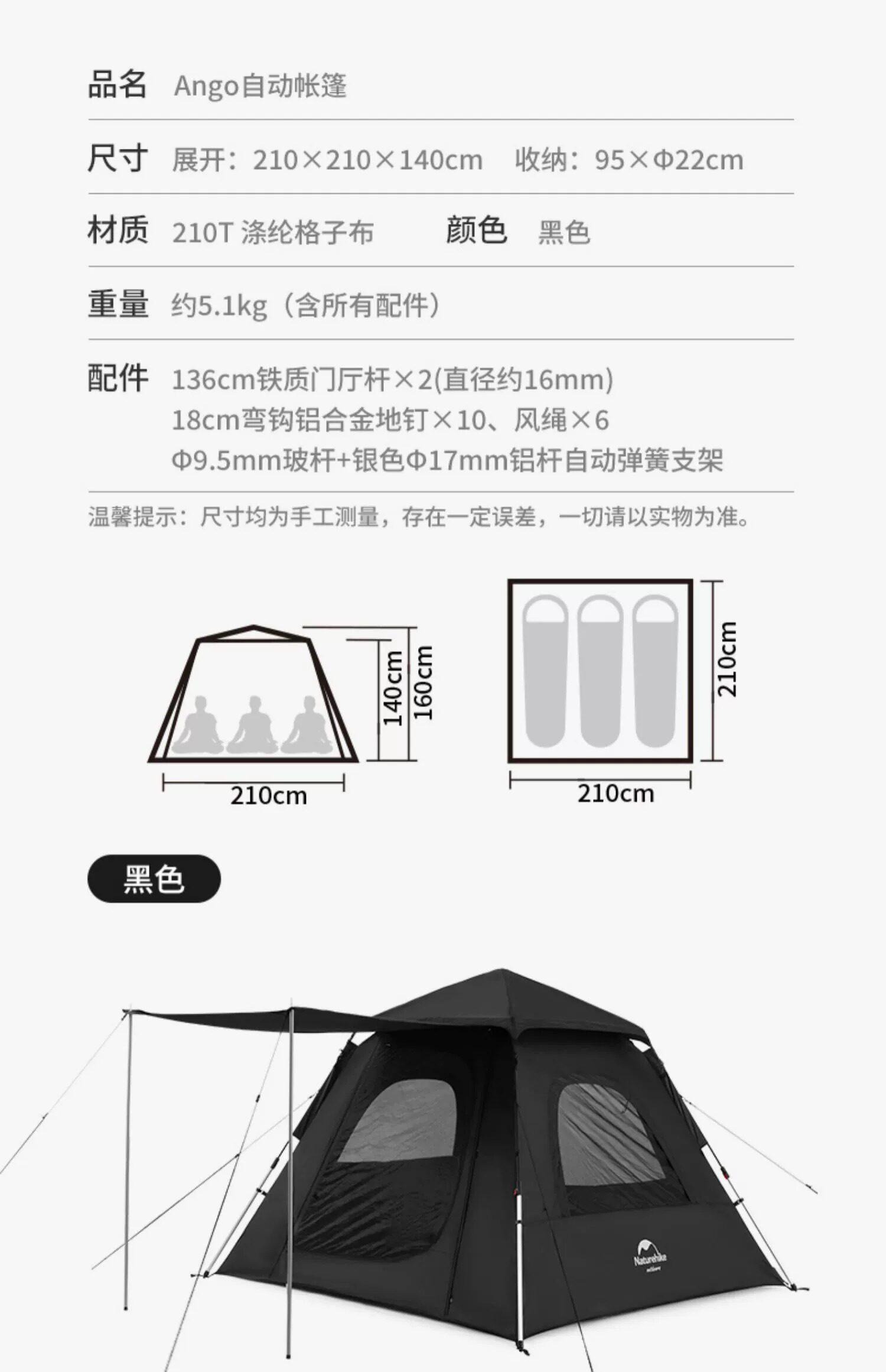 | 篷面尺寸 | 210*210*160 |