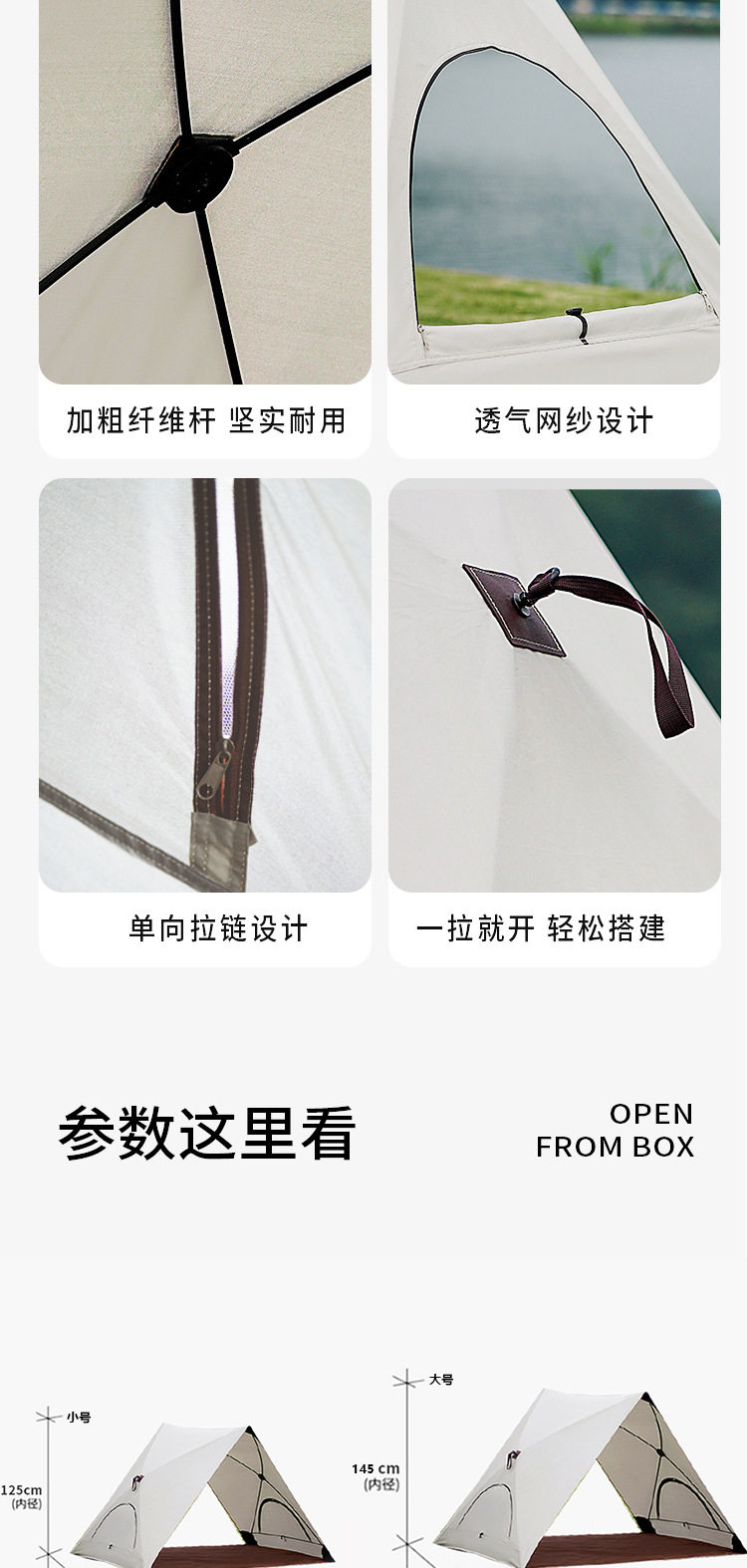 敞開式沙灘帳篷戶速開外可攜式折疊露營帳篷裝備公園三角帳篷防水