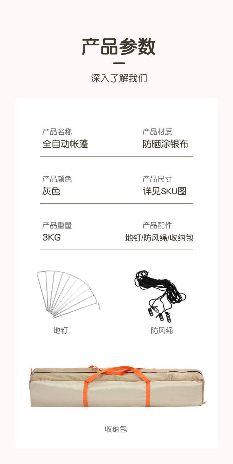 露營帳篷戶外防曬速開帳篷透氣遮陽可攜式免搭建過夜帳篷折疊可攜式