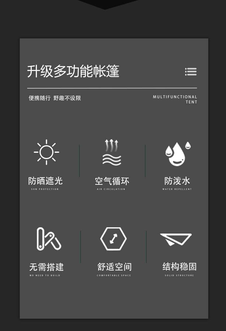 | 外帳材質 | 210D,190T滌塔夫,210D 塗銀防水塗層防紫外線 |