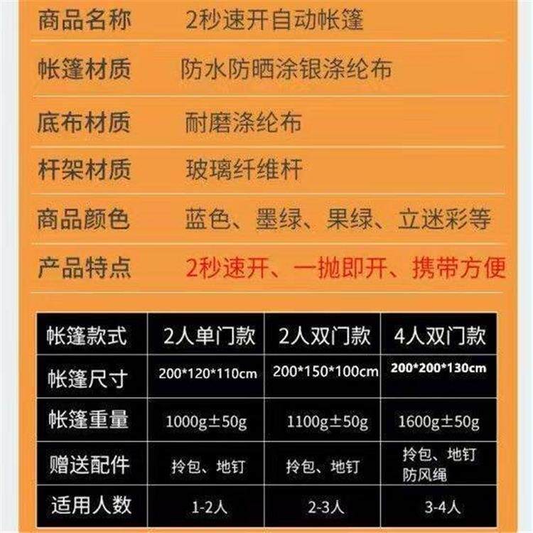 防雨2到4人野營外免搭建全自動速開戶外雙門野外釣魚居家室內帳篷