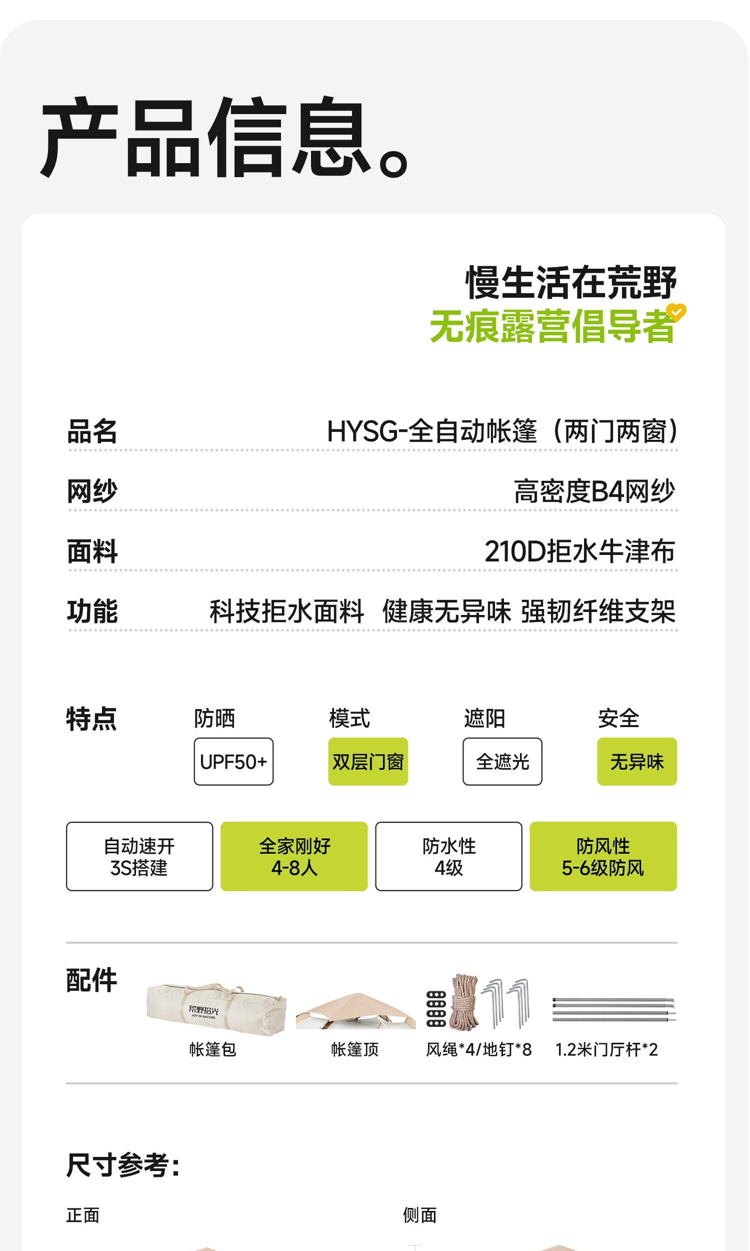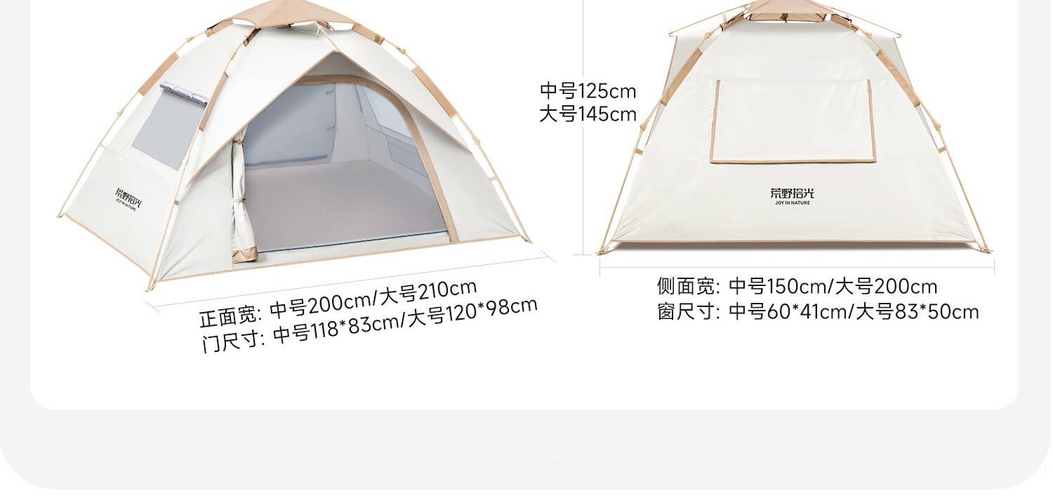 荒野拾光帳篷全自動野營雙人帳篷野營便捷防水防曬速開帳篷露營防
