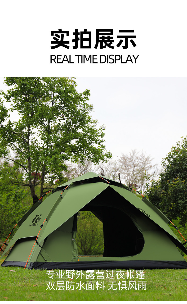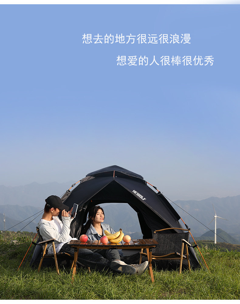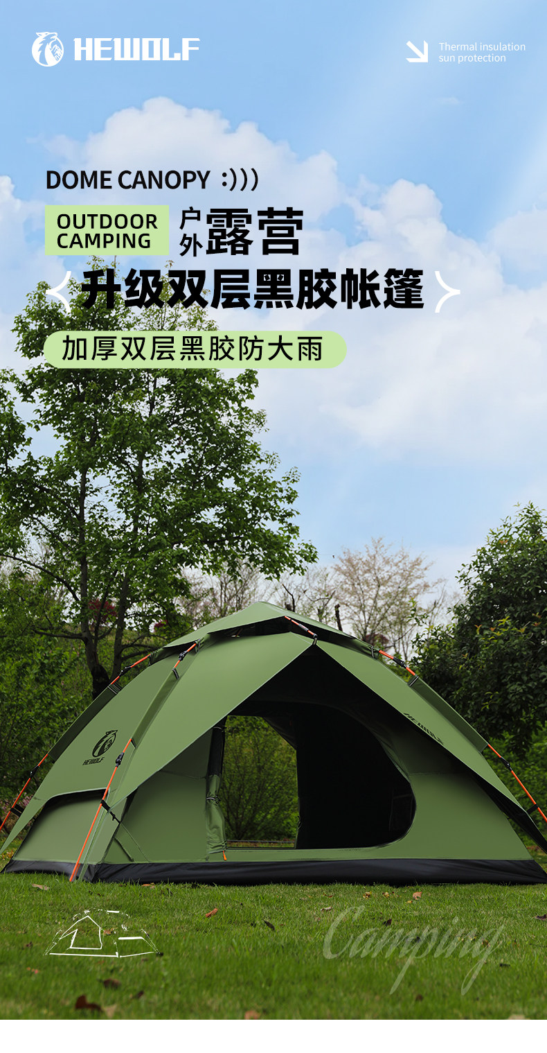 hewolf公狼帳篷戶外露營黑膠防曬防暴雨自動速開折疊可攜式過夜防水