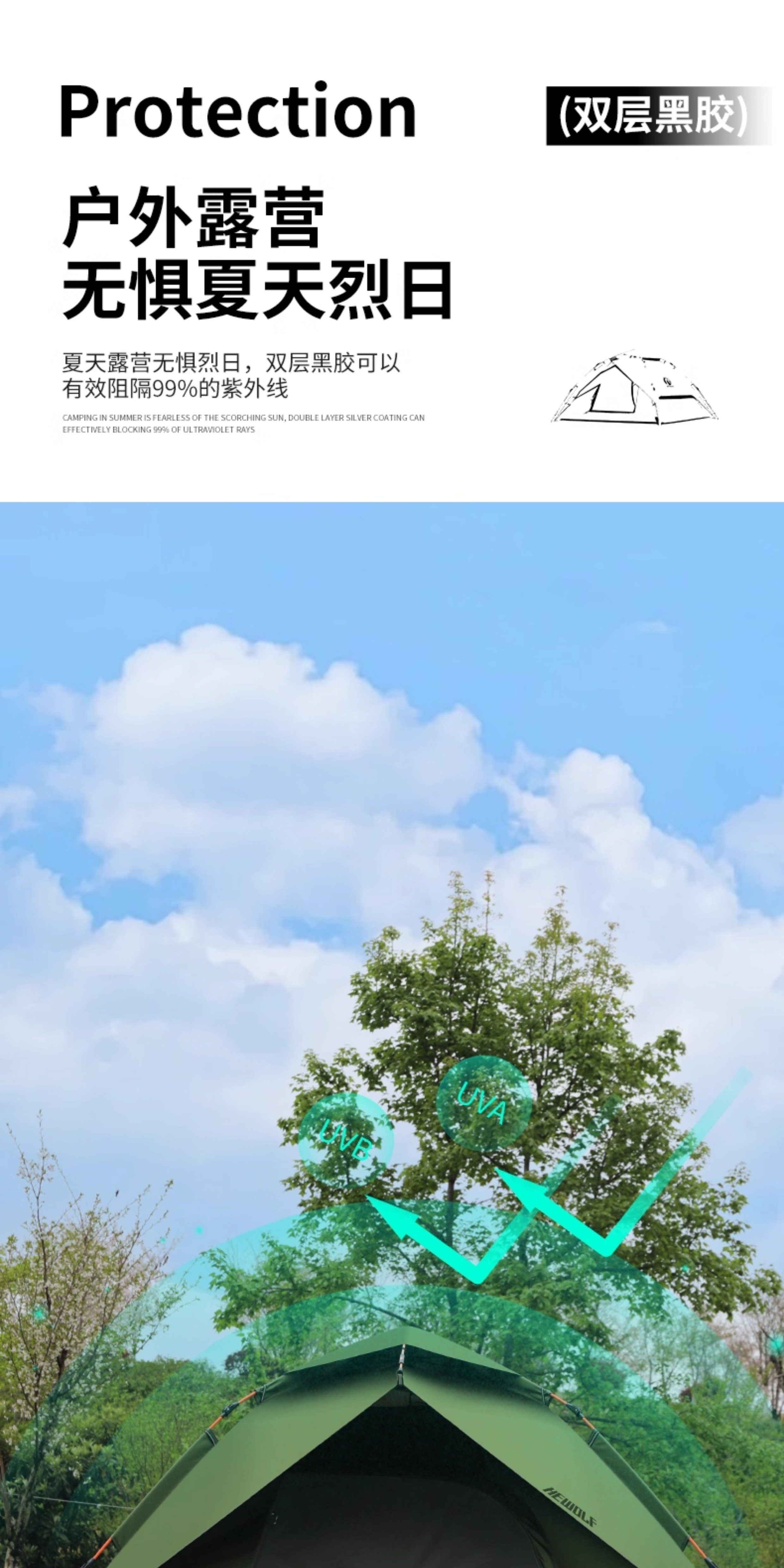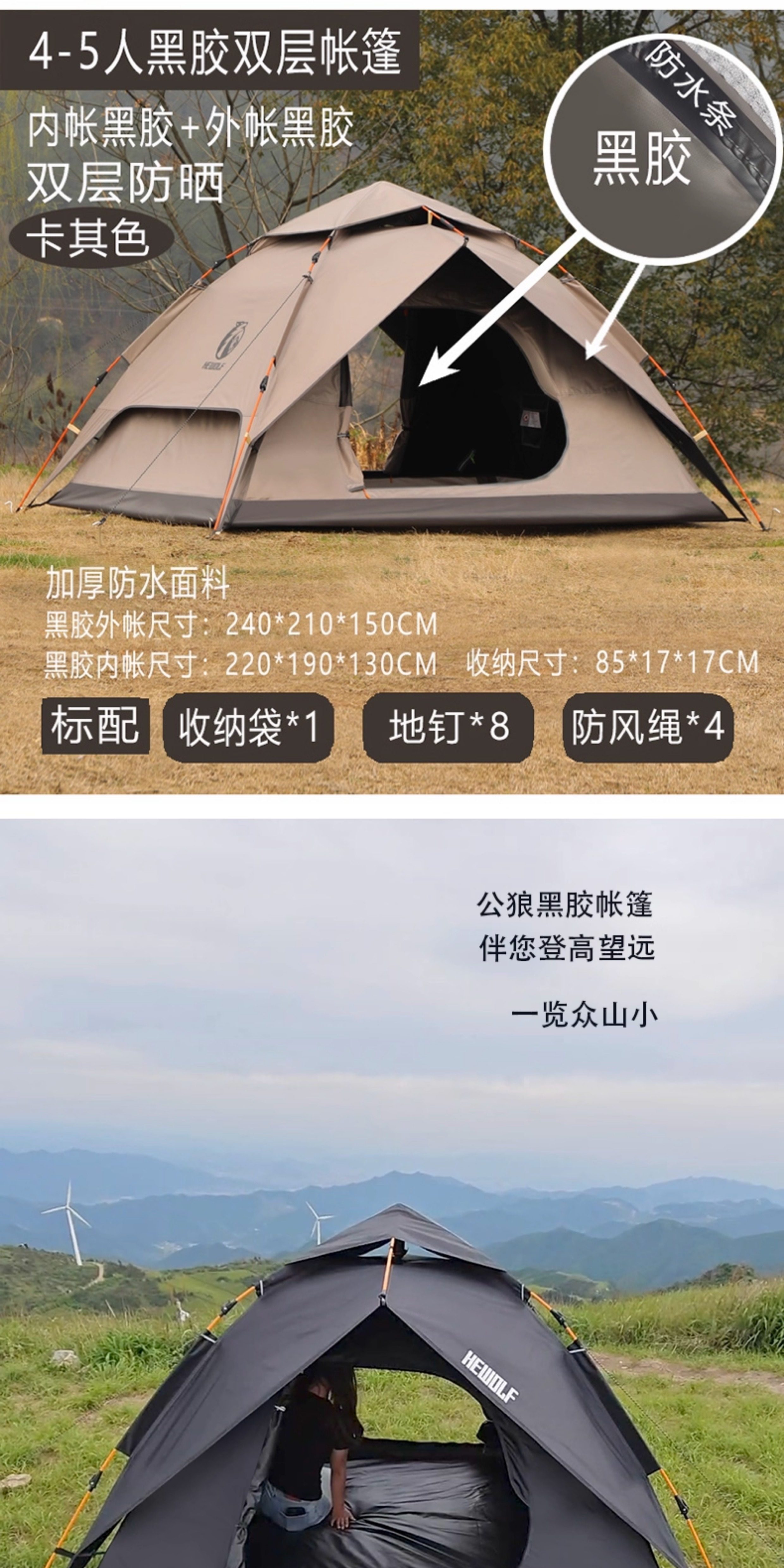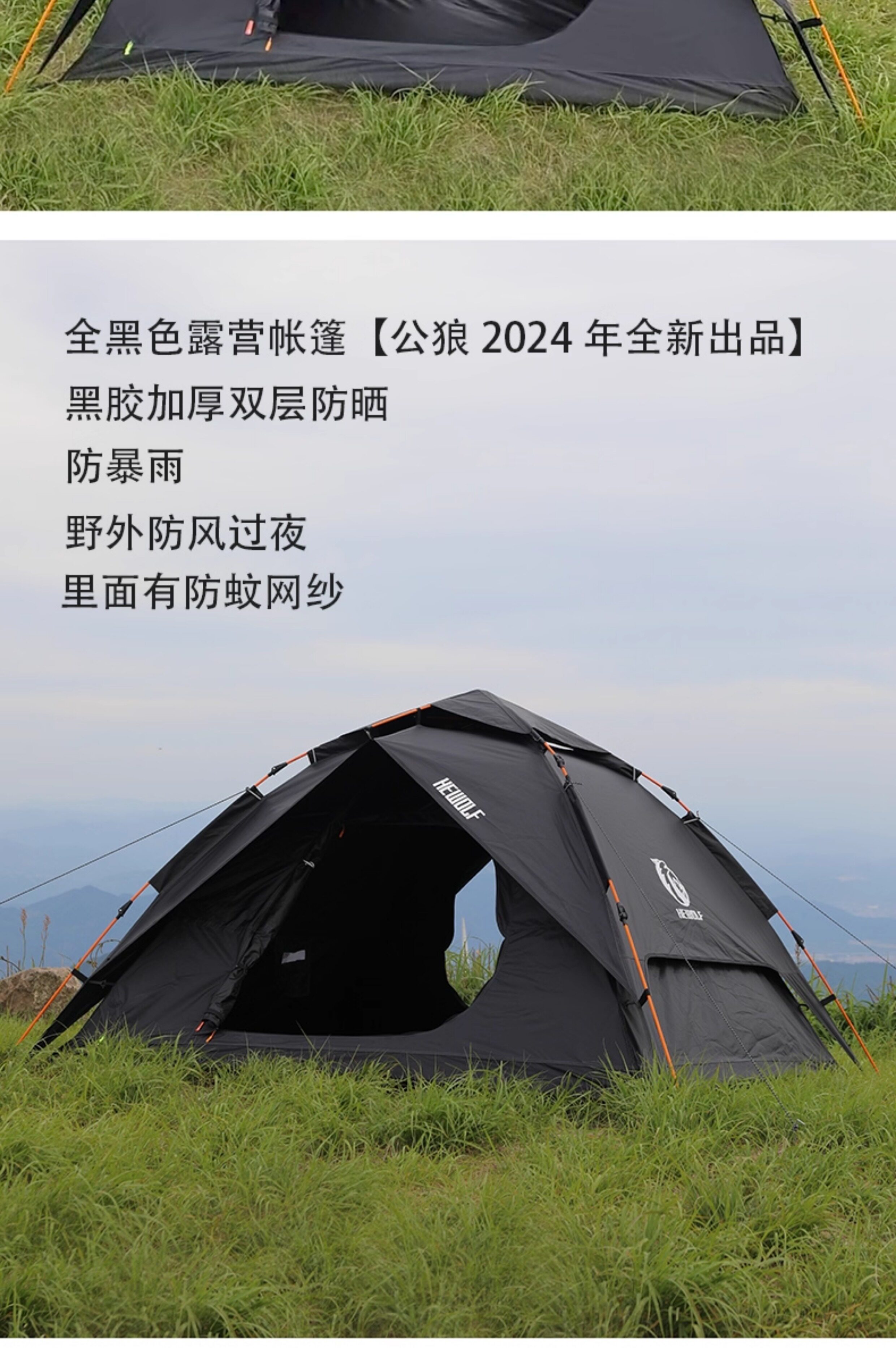 hewolf公狼帳篷戶外露營黑膠防曬防暴雨自動速開折疊可攜式過夜防水