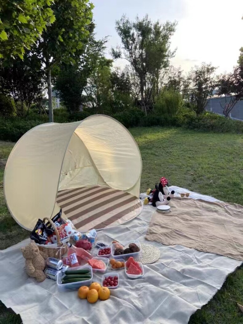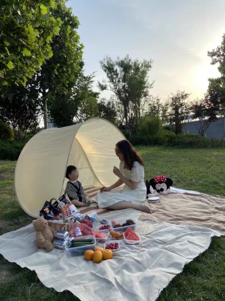韓國ins沙灘帳篷戶外露營公園春遊防曬可攜式兒童遮陽速開一鍵開合