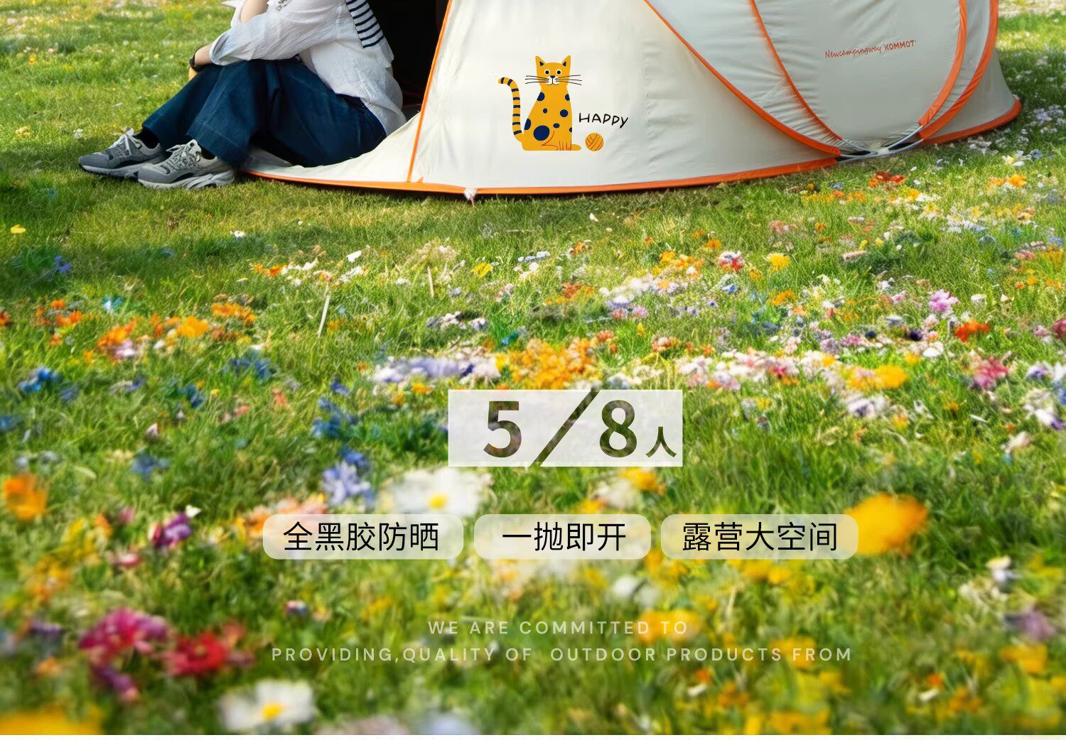 牧徹KOMMOT全自動一拋速開免搭建帳篷黑膠防曬防雨防風露營海灘帳
