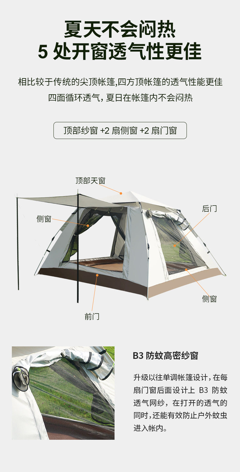 戶外露營帳篷兩門兩窗全自動速開遮陽防風野營野外露營全套裝帳篷