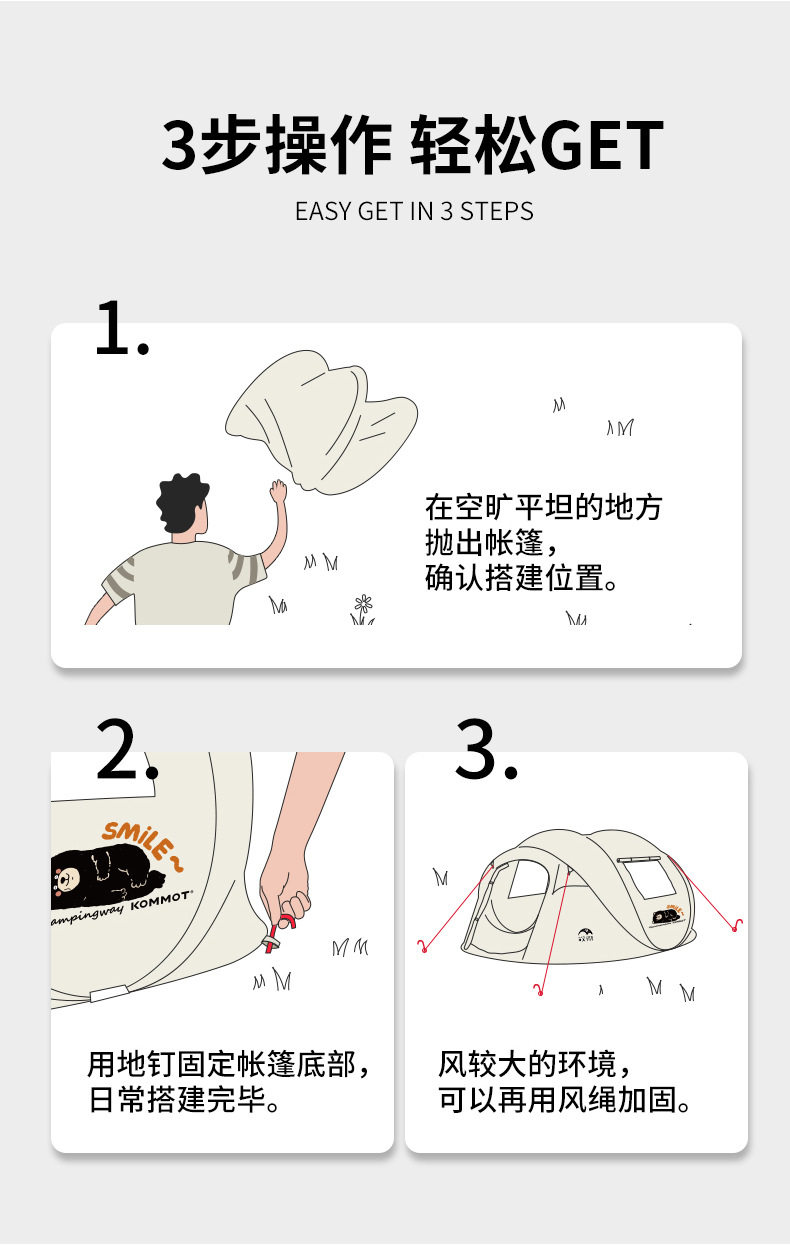 【小熊限定款】KOMMOT牧徹秒搭速開全自動免搭建帳篷戶外防雨露營