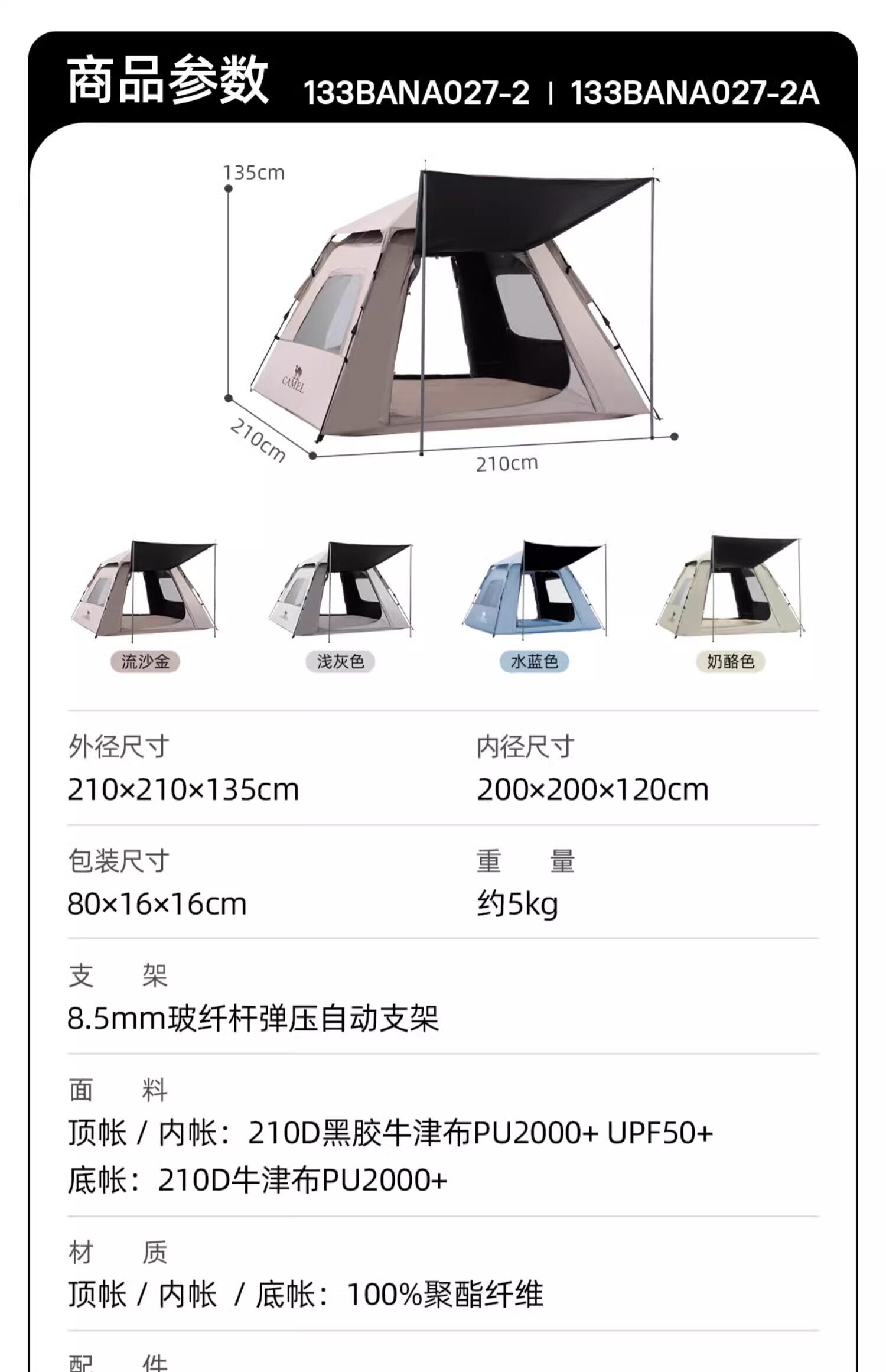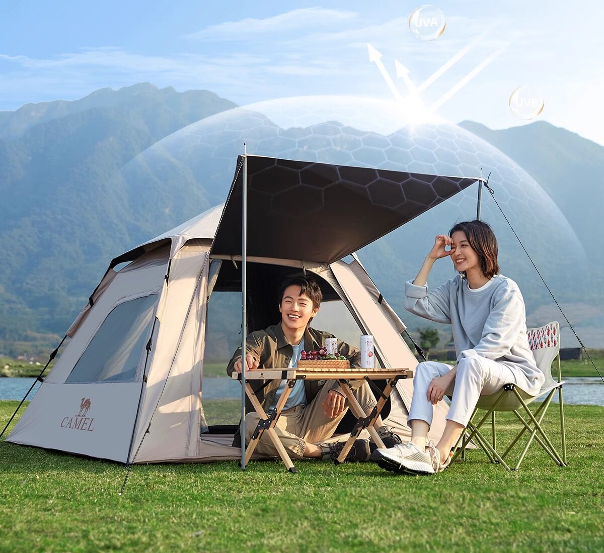 駱駝戶外露營黑膠防曬帳篷加厚全自動速開可攜式野餐野外防雨公園