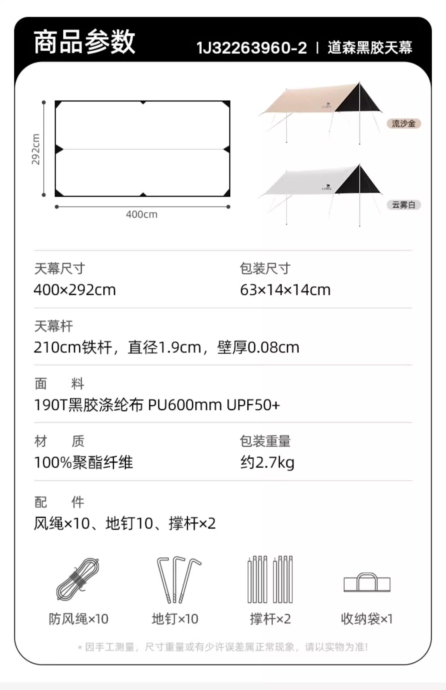 | 內帳材料 | 150D牛津PU1000mm防水塗層+致密網紗 |