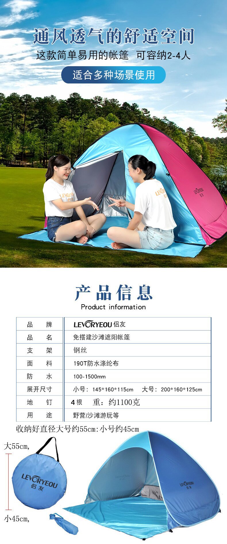 帳篷戶外可攜式折疊兒童野營折疊全自動速開雙層3-4人沙灘露營野