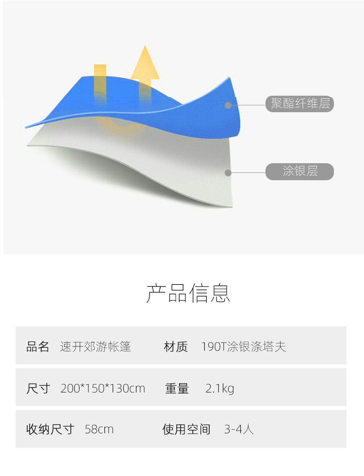 | 內帳材料 | 190T塗銀滌塔夫 |