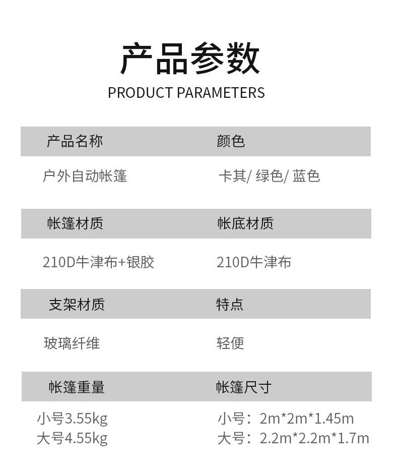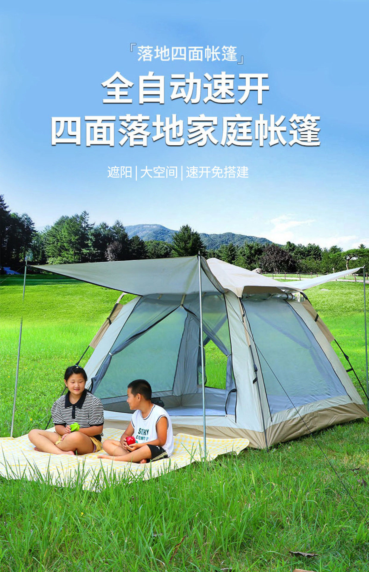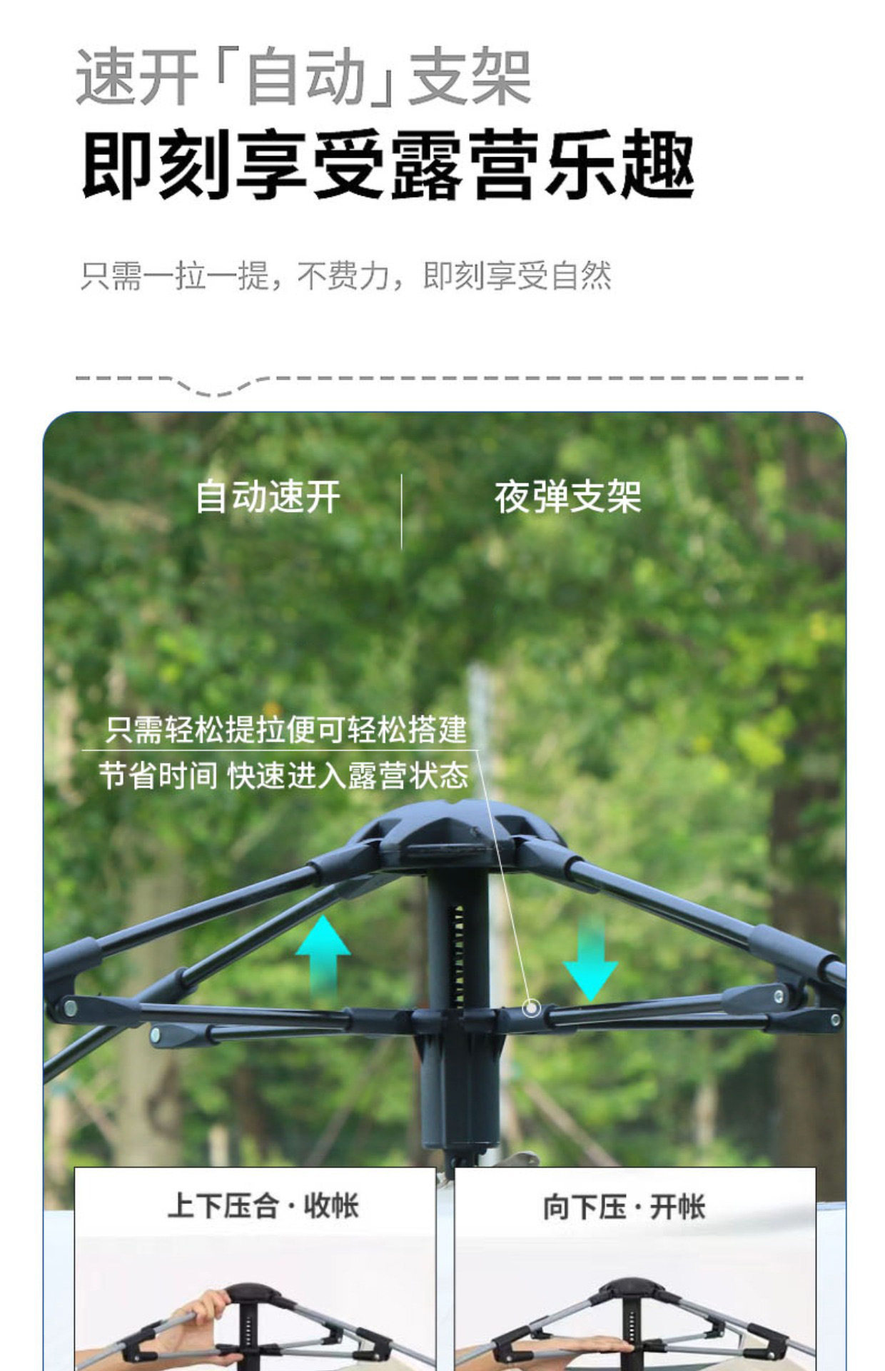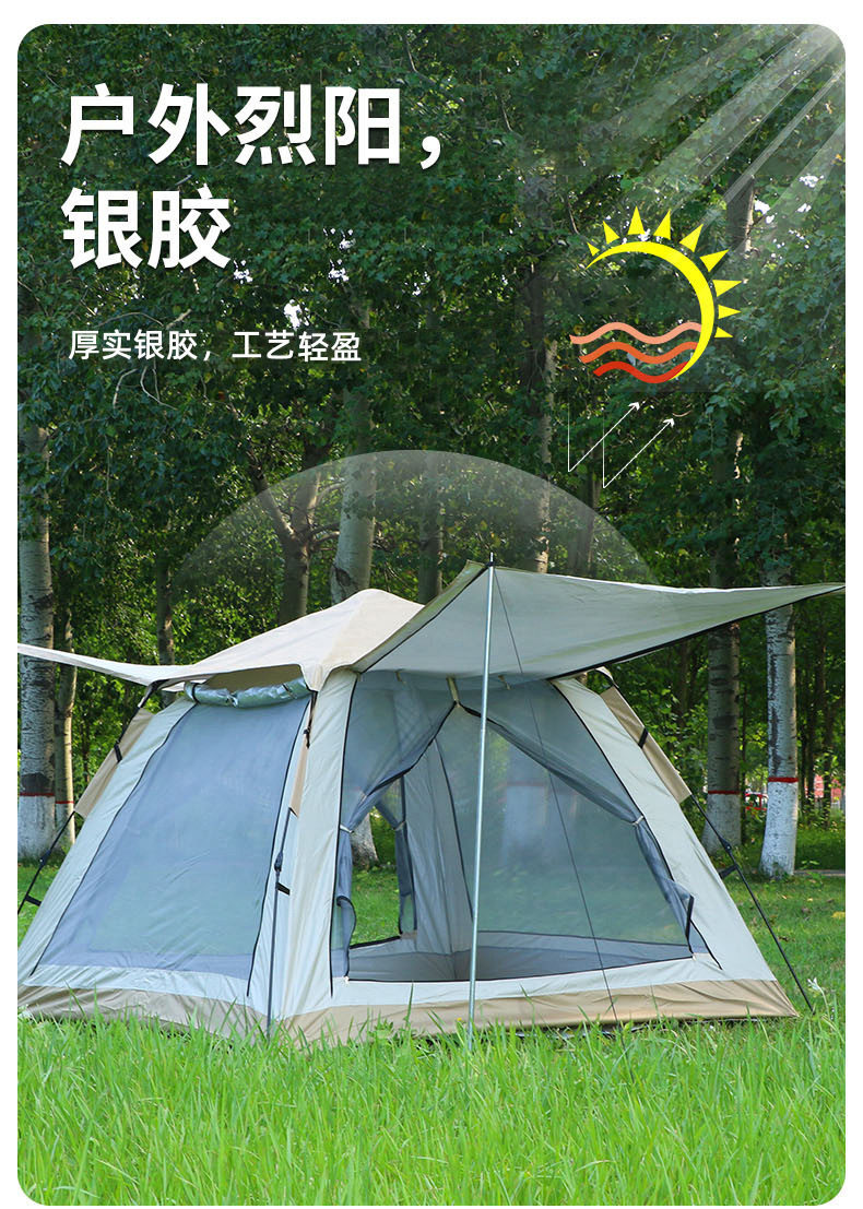 戶外露營野餐遮陽棚免搭建速開可攜式帳篷防水防曬銀膠黑膠雙層帳