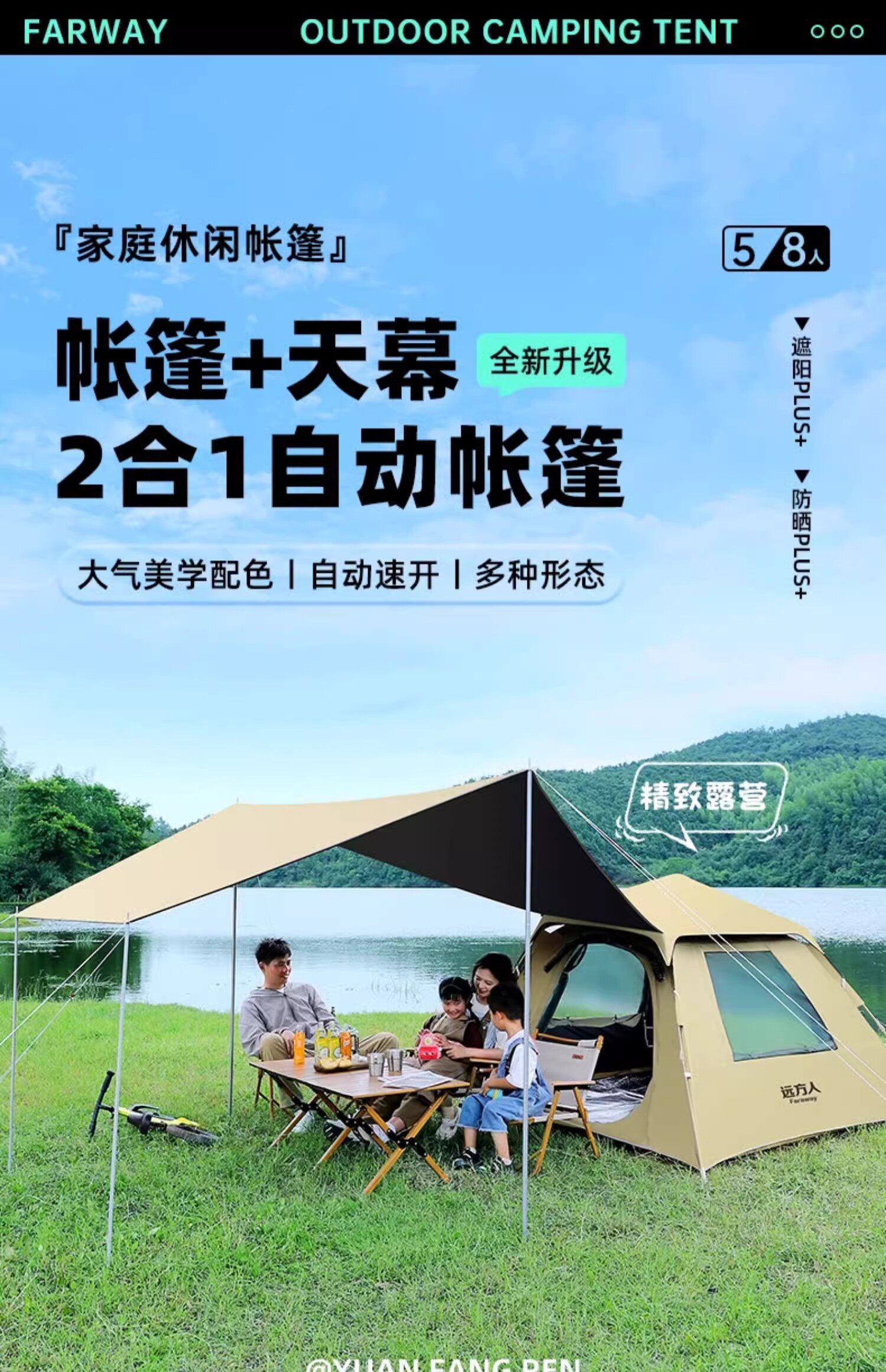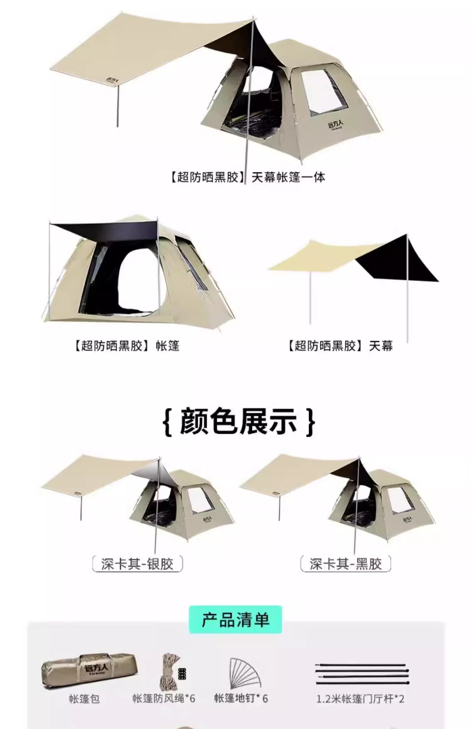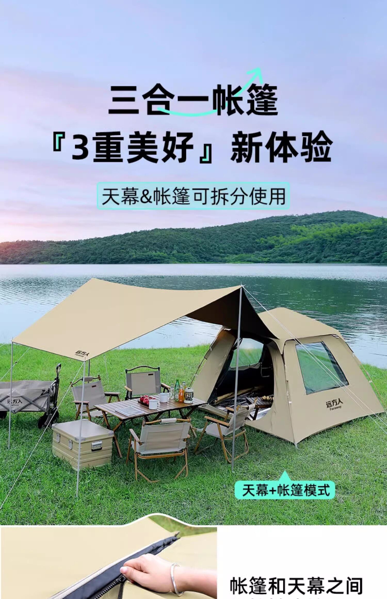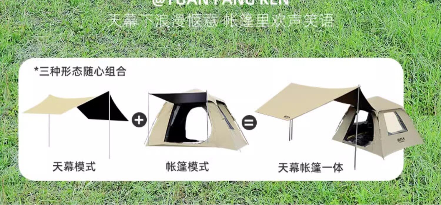 帳篷天幕二合戶外折疊遠方人速開四季防水露營可攜式野營遮陽帳篷