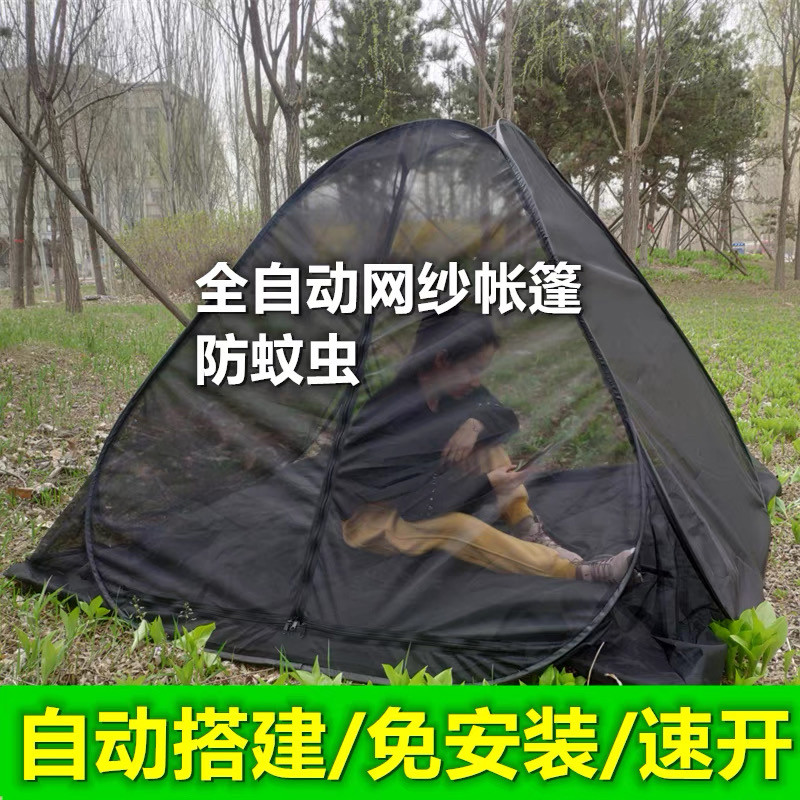 戶外露營蚊帳帳篷防蚊蟲網紗草地透氣速開三角帳篷釣魚全自動蚊帳
