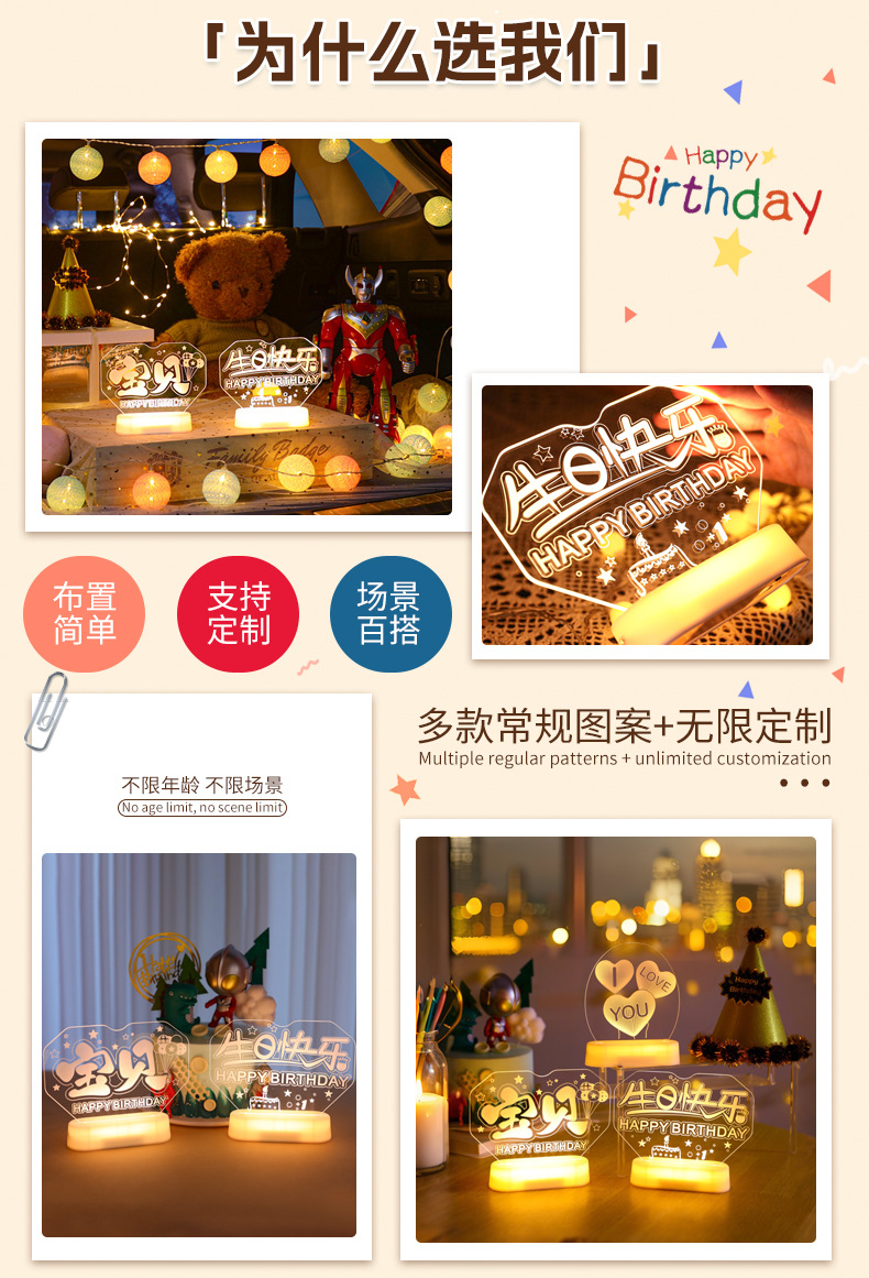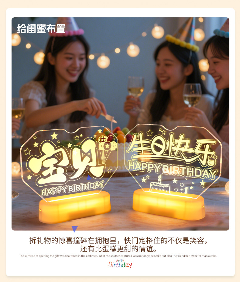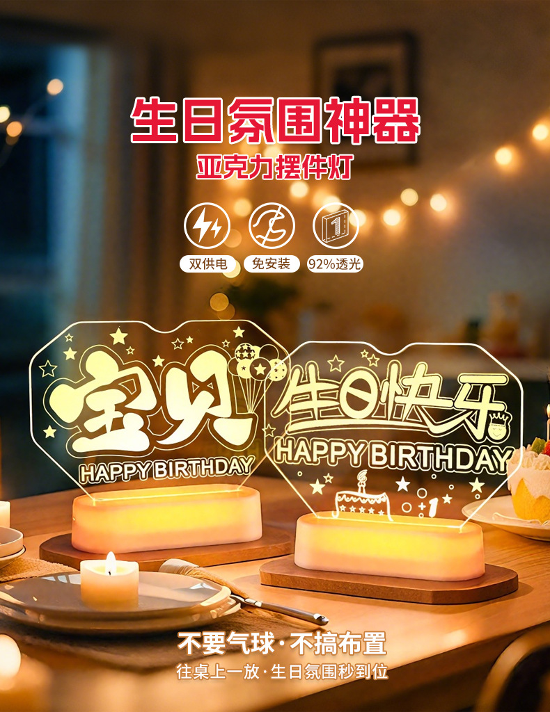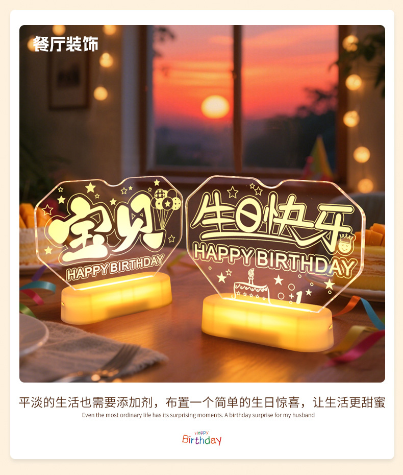 霓虹發光寶貝生日快樂字燈牌擺件生日氛圍感布置裝飾led字母燈