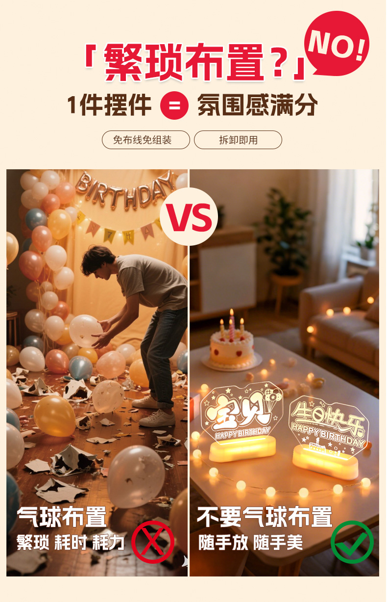 | 燈光顔色 | 生日快樂愛心氣球(彩色) +棉線球燈 |