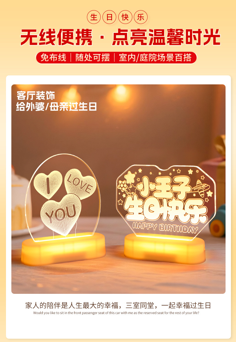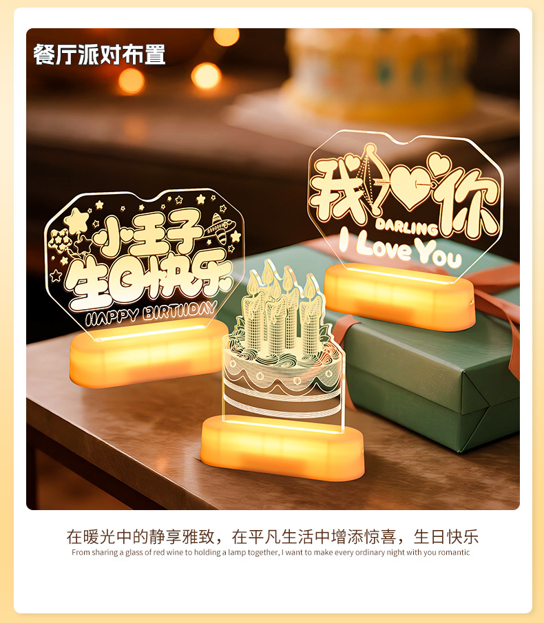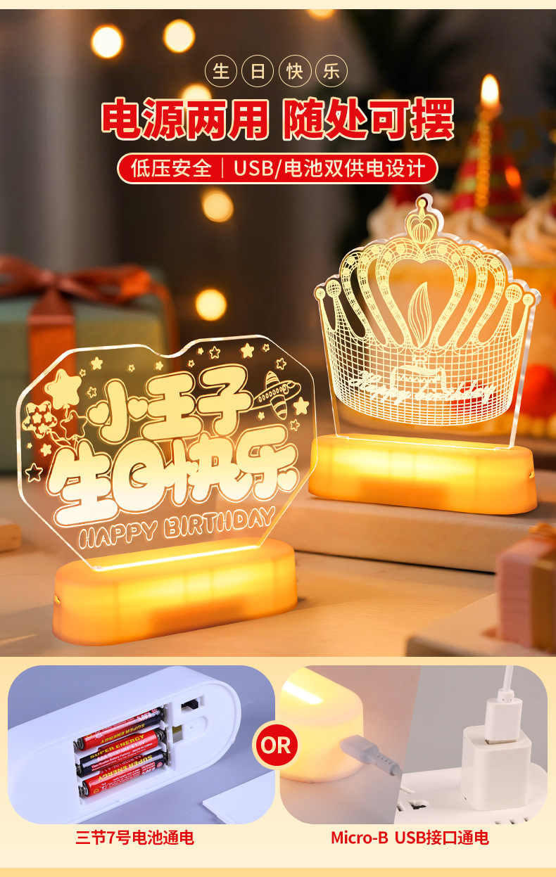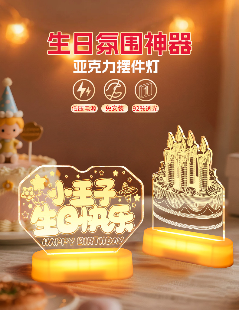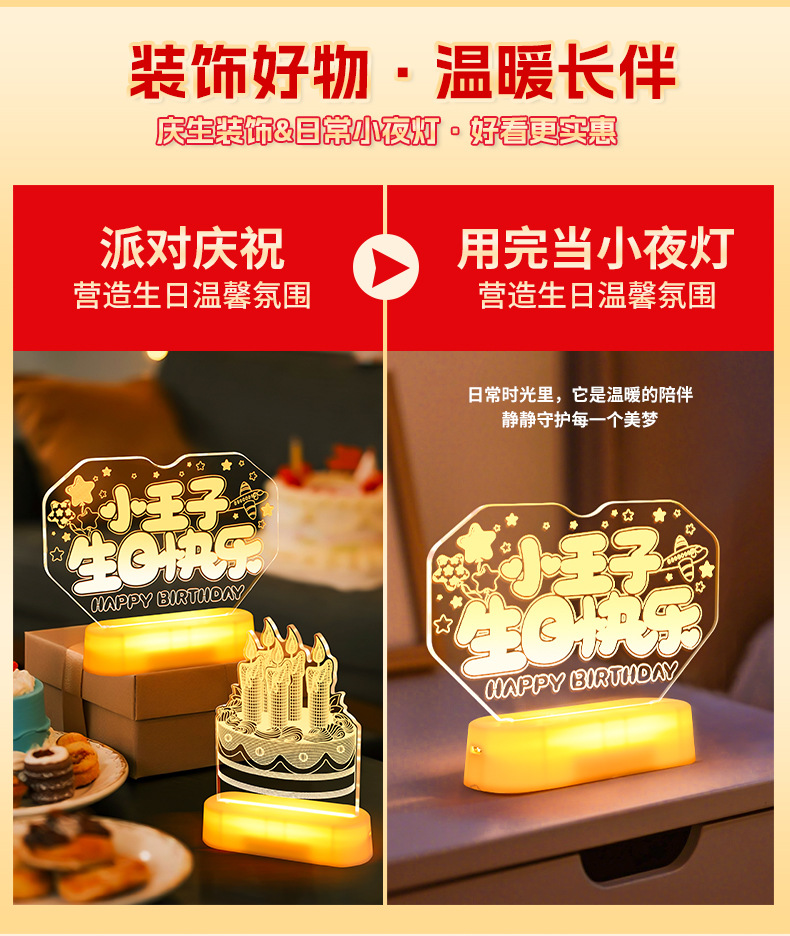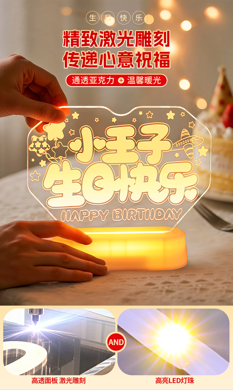 霓虹發光小王子生日快樂字燈牌擺件生日氛圍感裝飾布置led字母燈