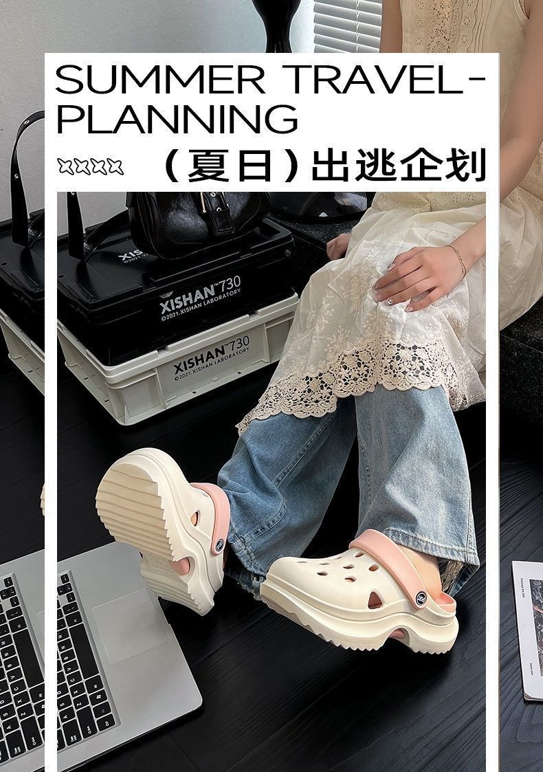 EVA增高厚底男潮款涼鞋洞洞鞋女款夏季居家宿捨外出沙灘浴室防滑