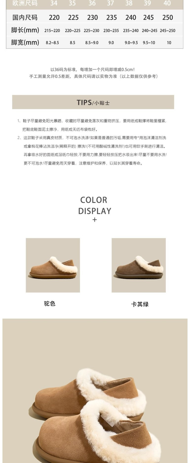 | 鞋面內裡材質 | 人造長毛羢 |