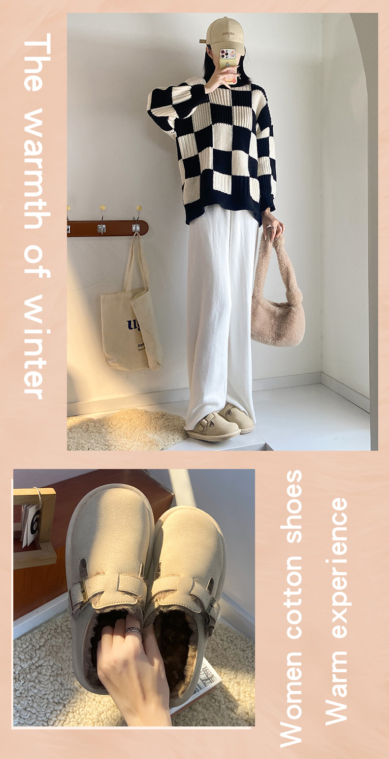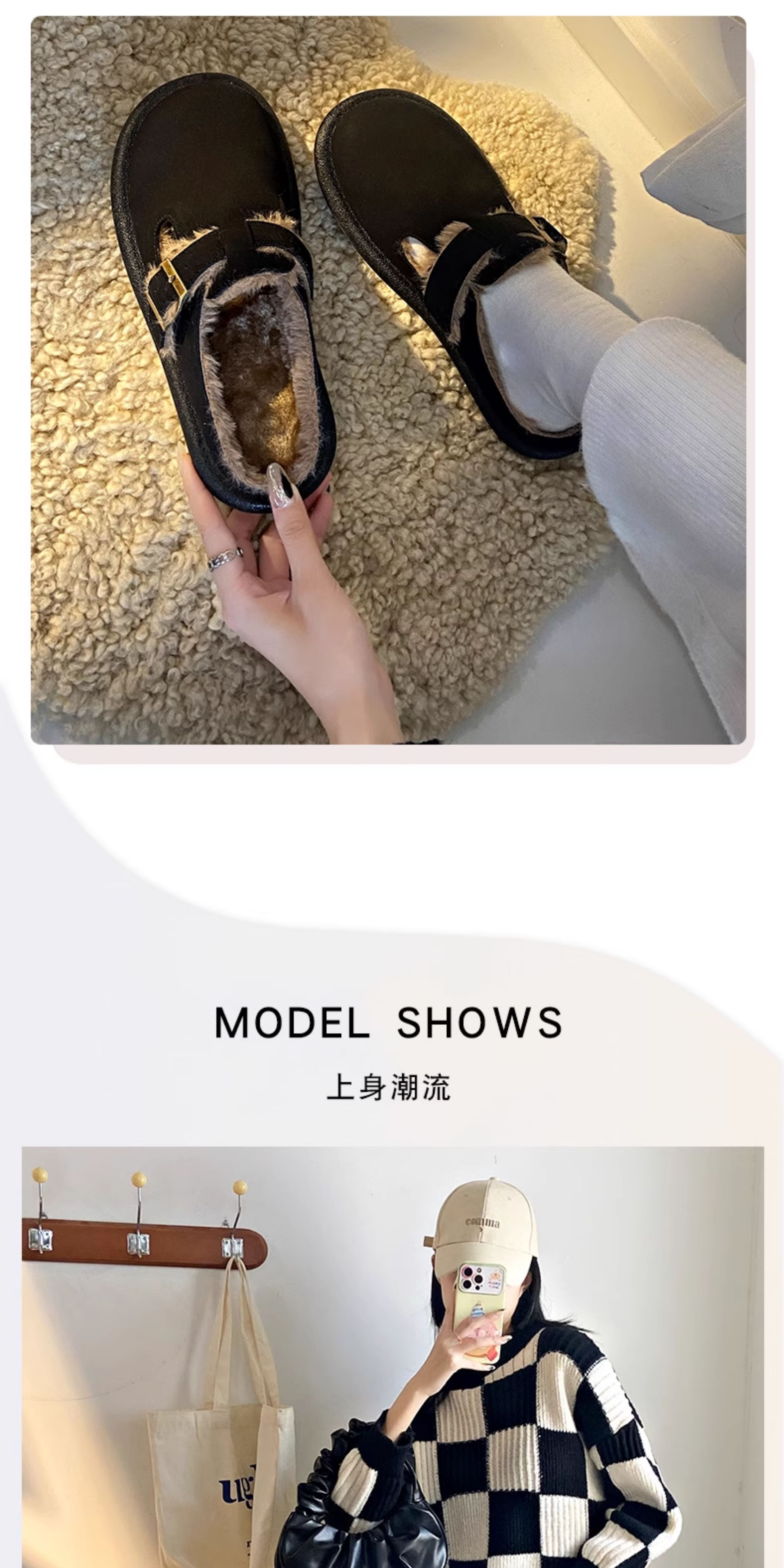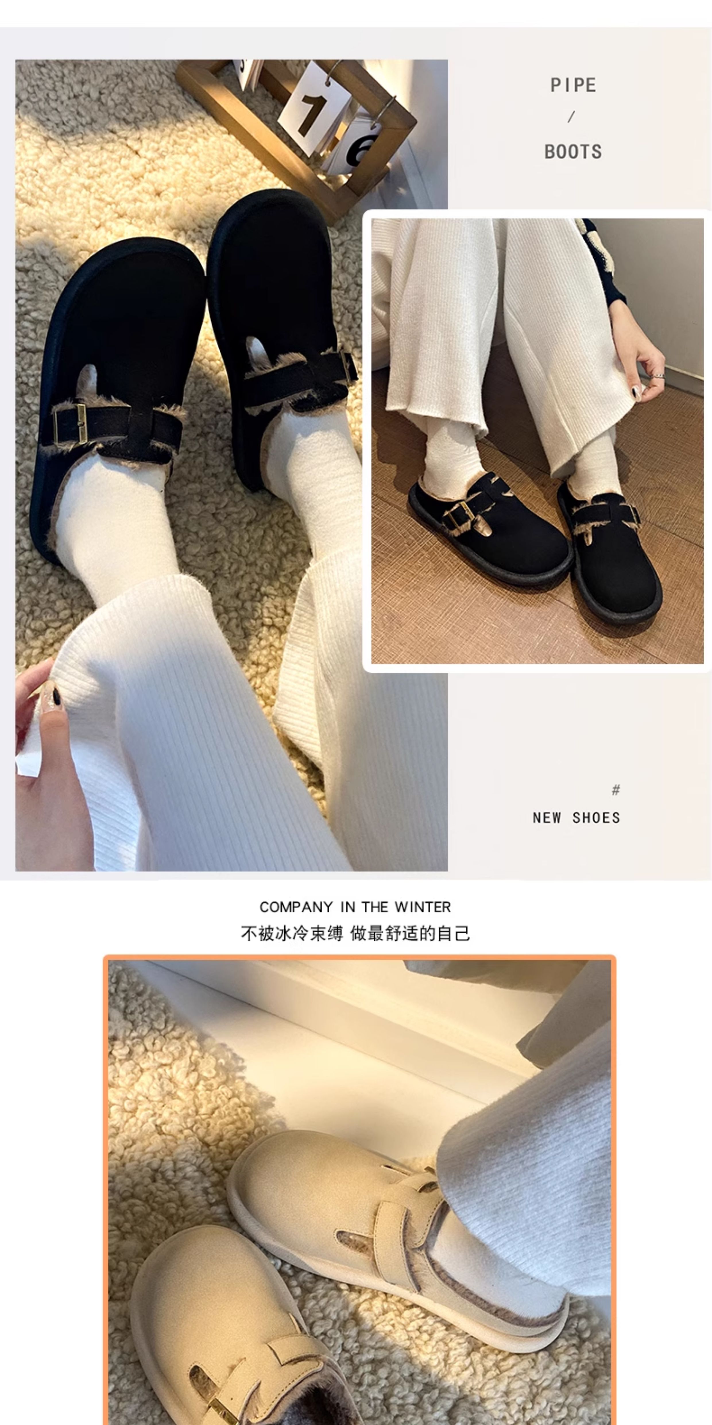 加絨勃肯鞋女2025新款冬季辦公室包頭棉拖鞋孕婦軟底棉鞋博肯女鞋