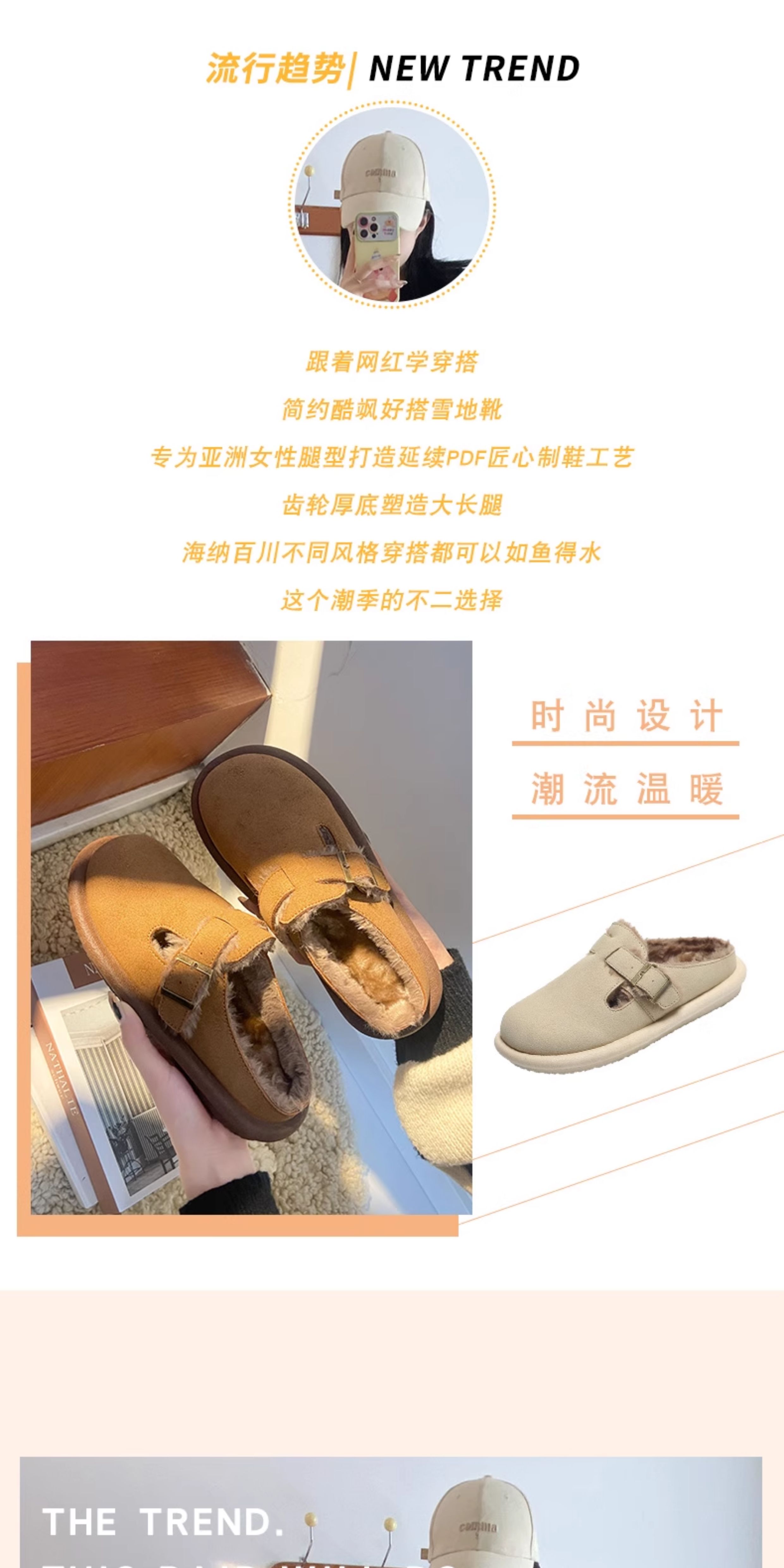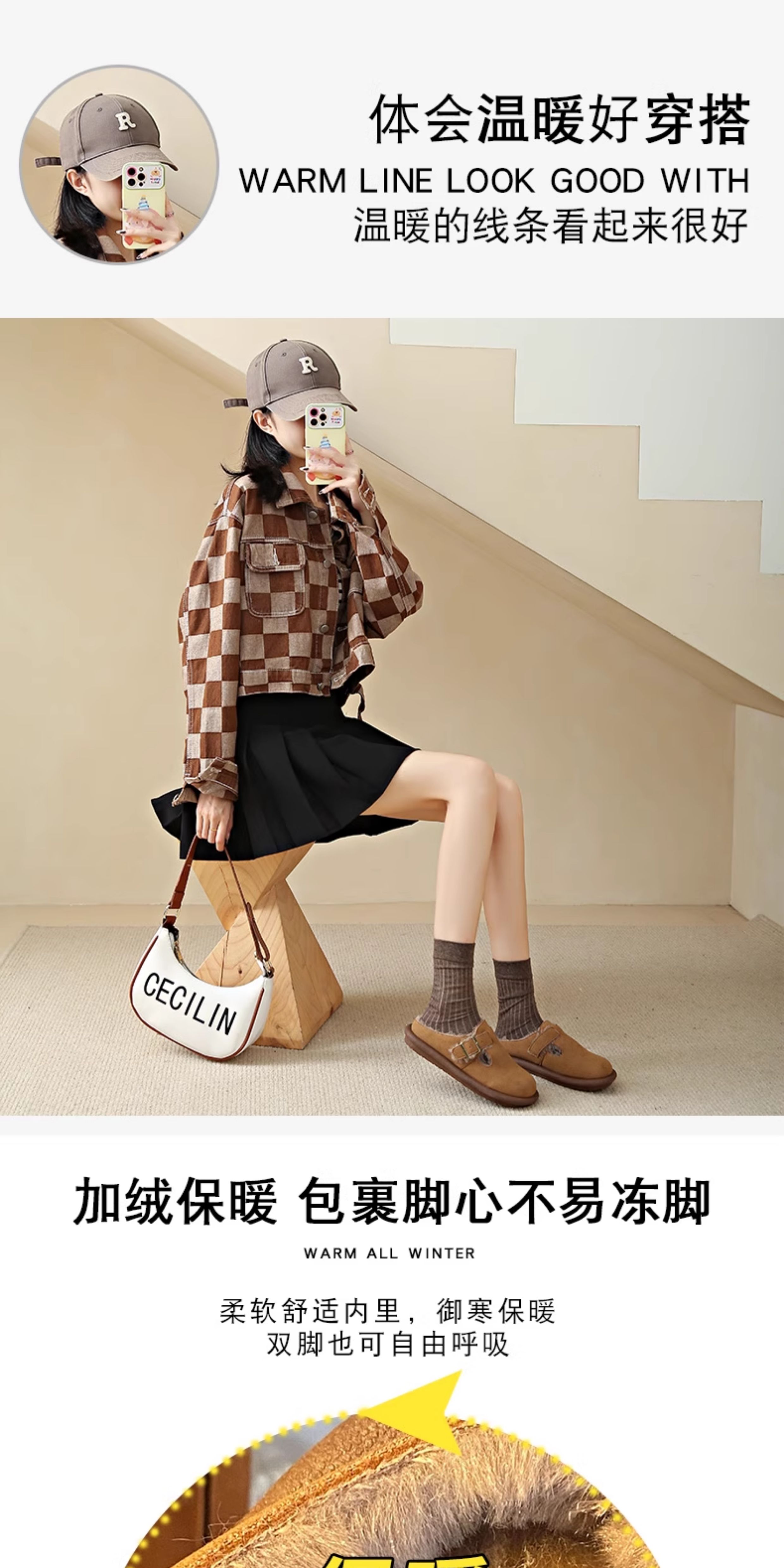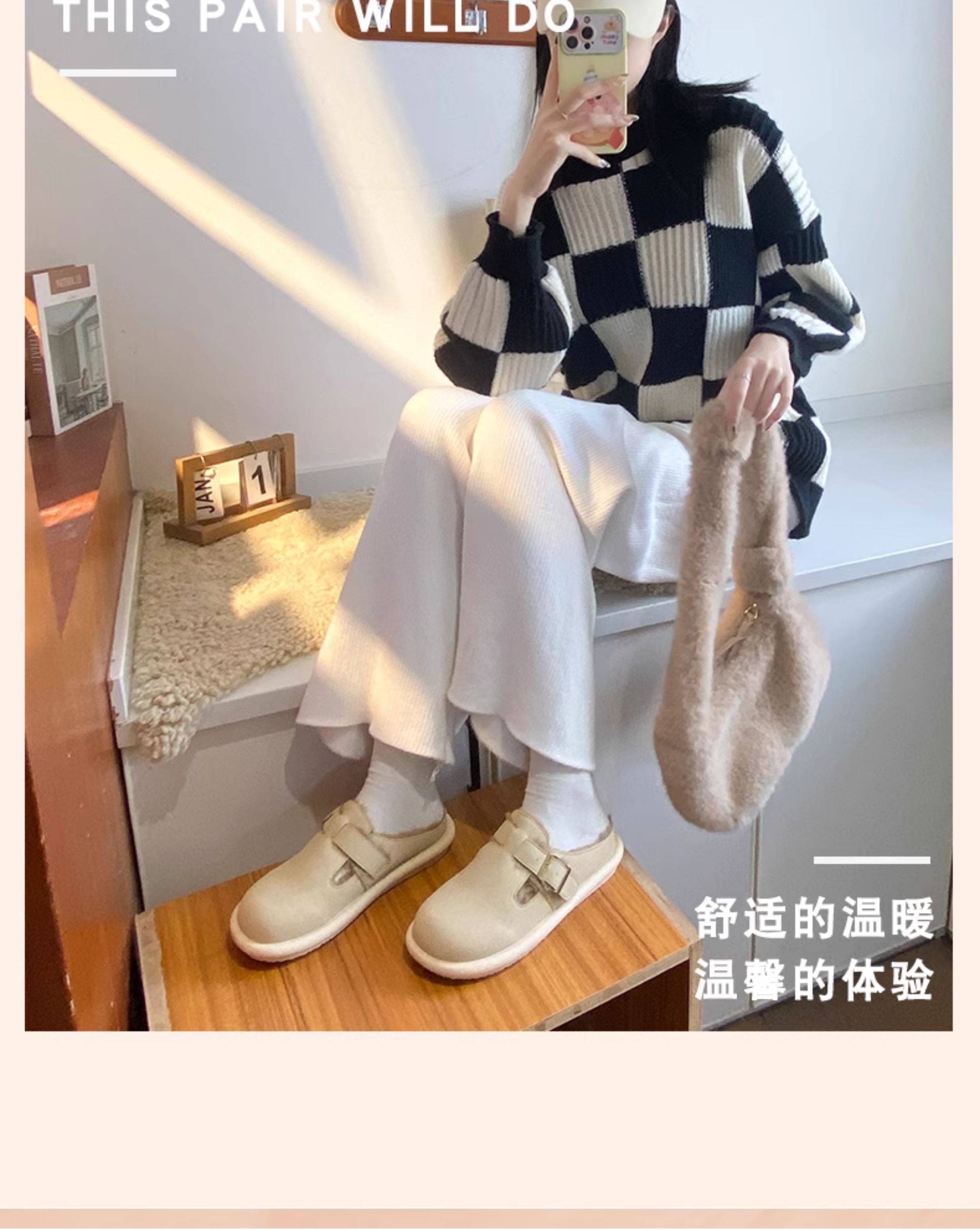 加絨勃肯鞋女2025新款冬季辦公室包頭棉拖鞋孕婦軟底棉鞋博肯女鞋