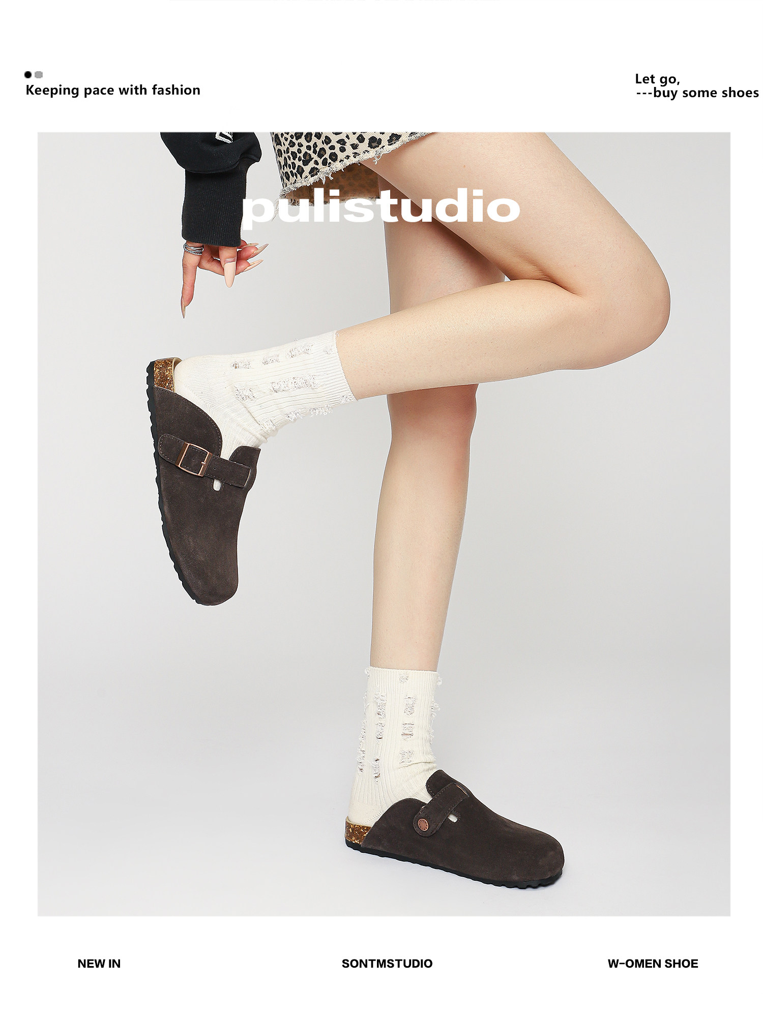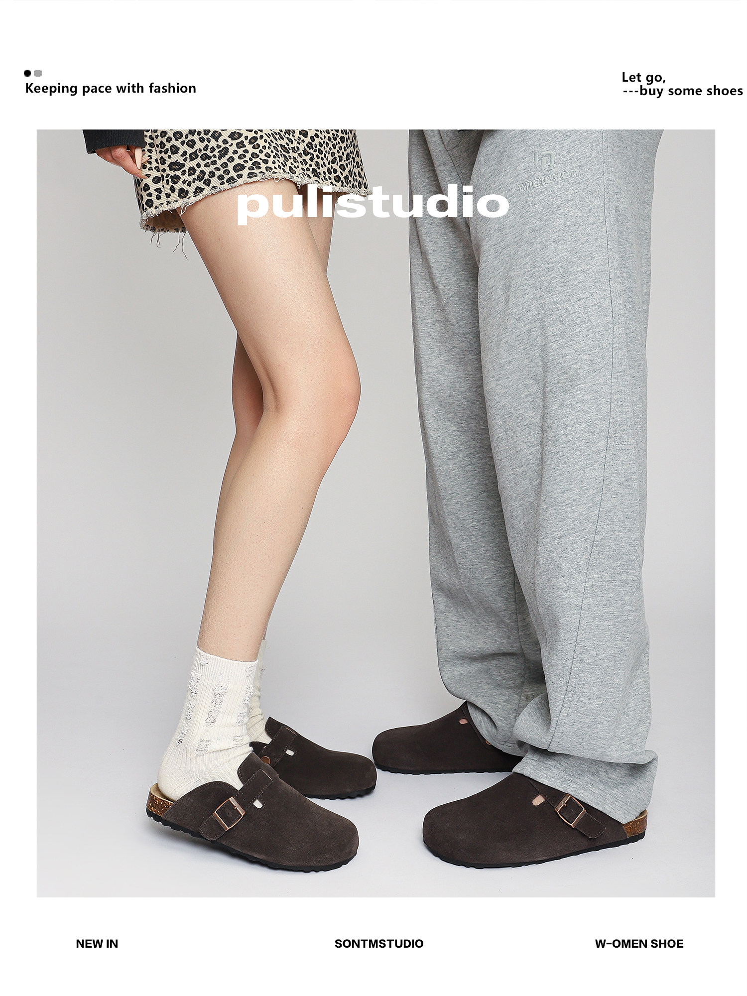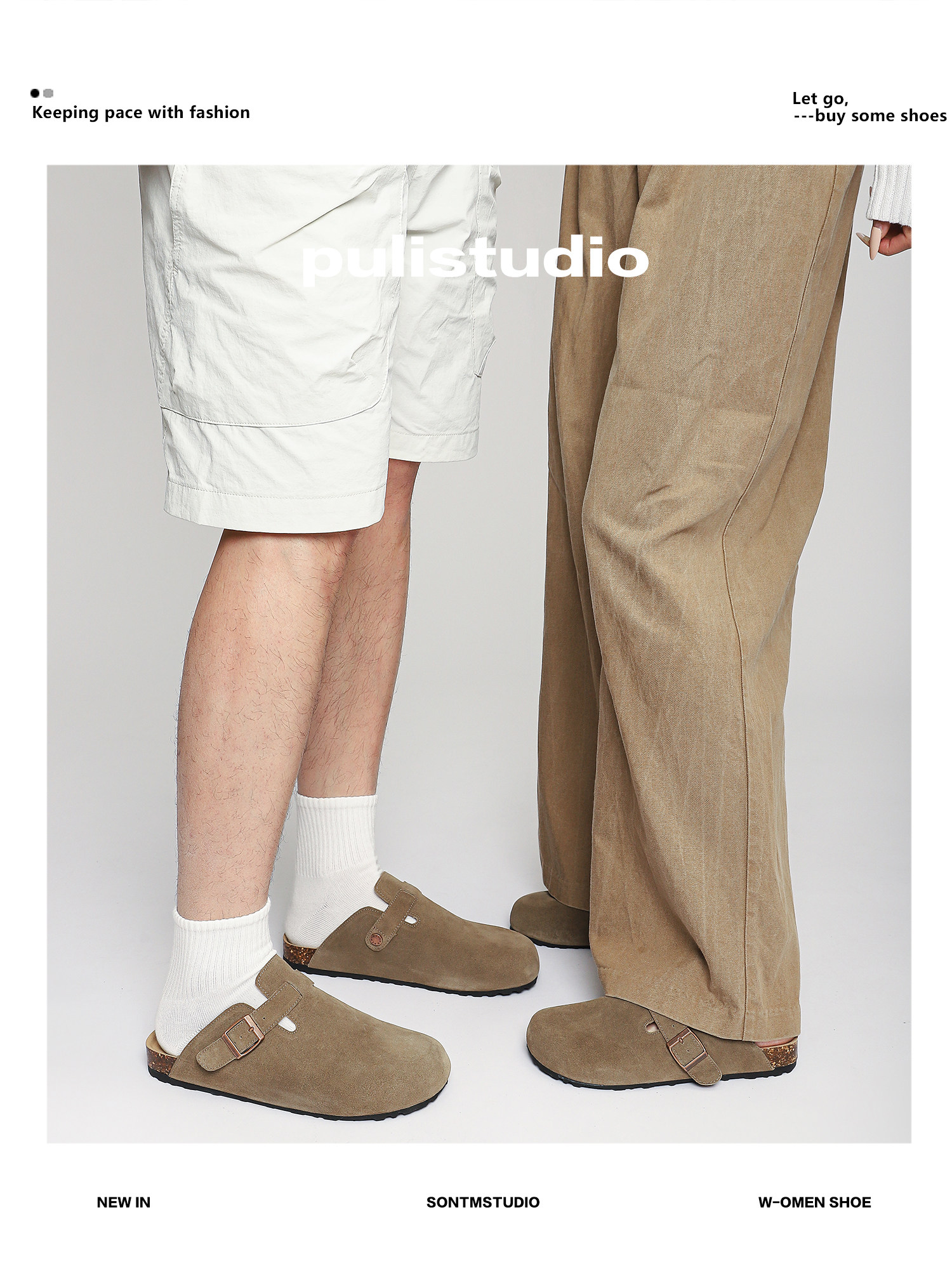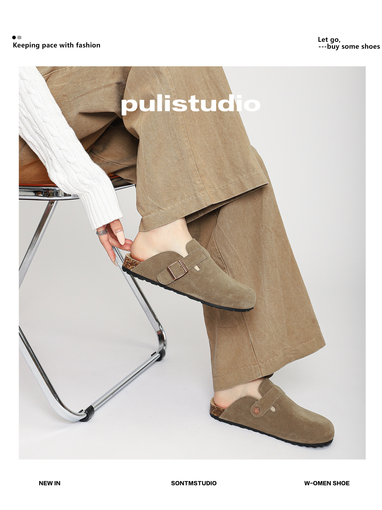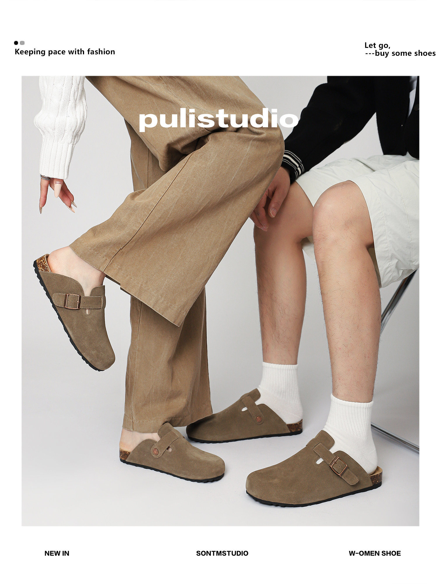 真皮軟木底勃肯鞋女拖鞋外穿大碼男女同款情侶博肯鞋包頭半拖男款