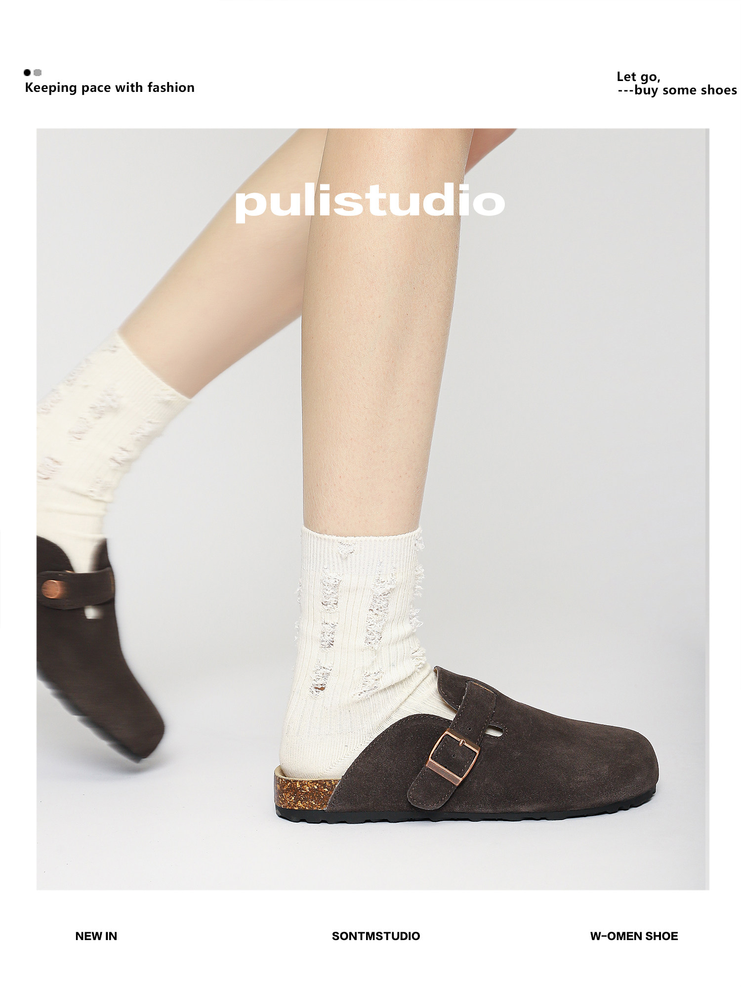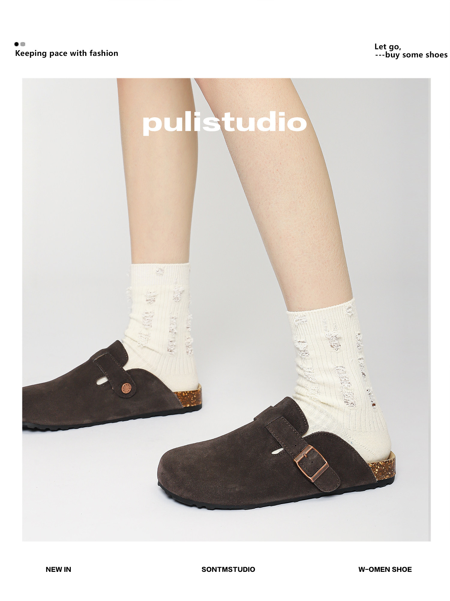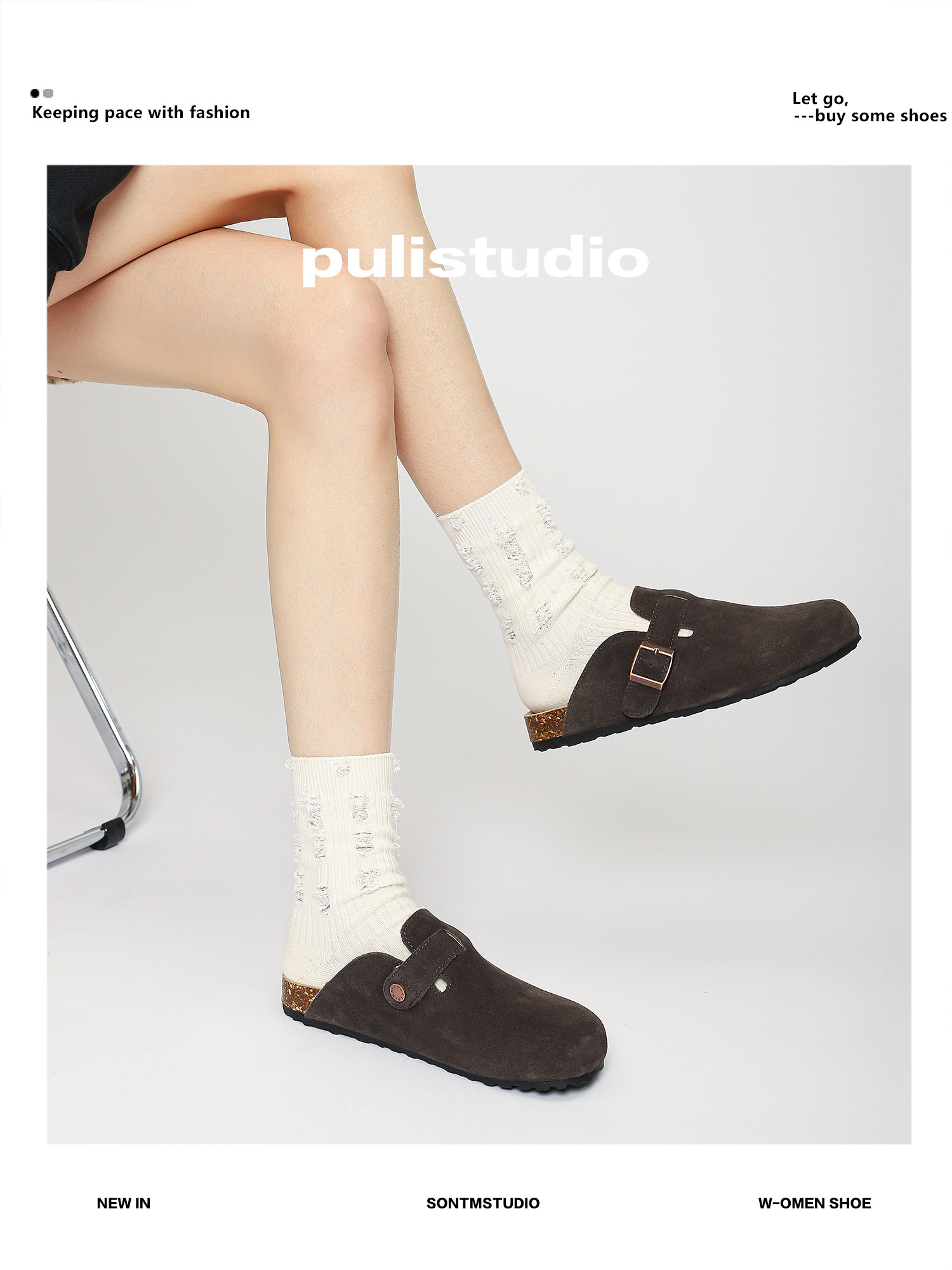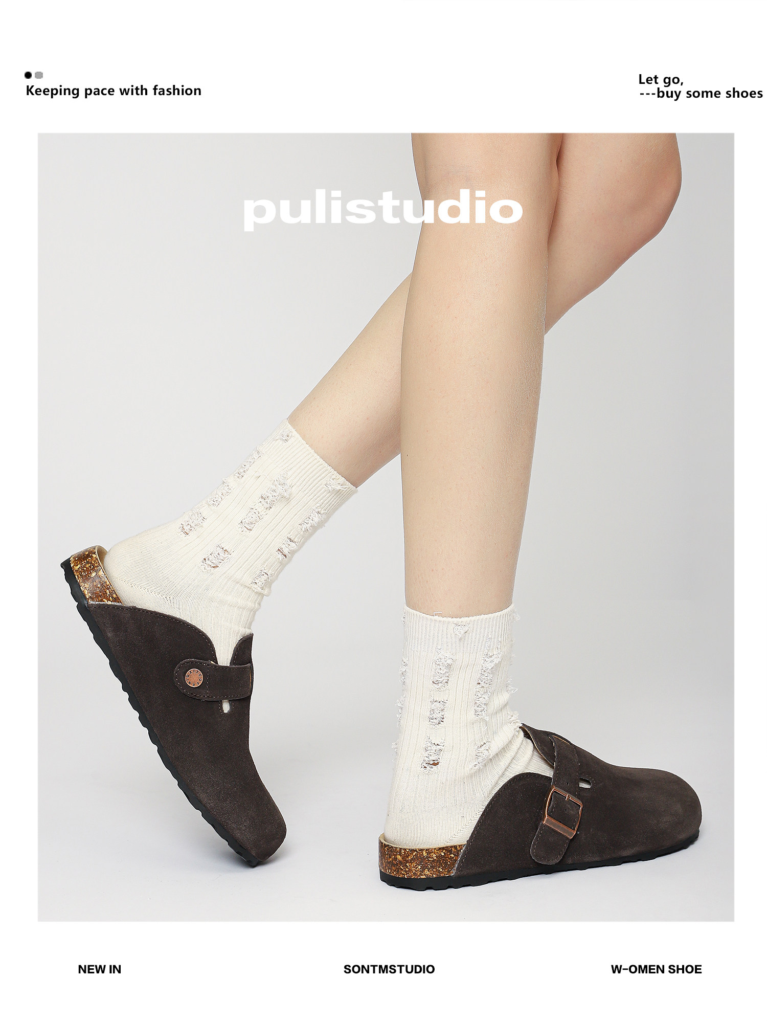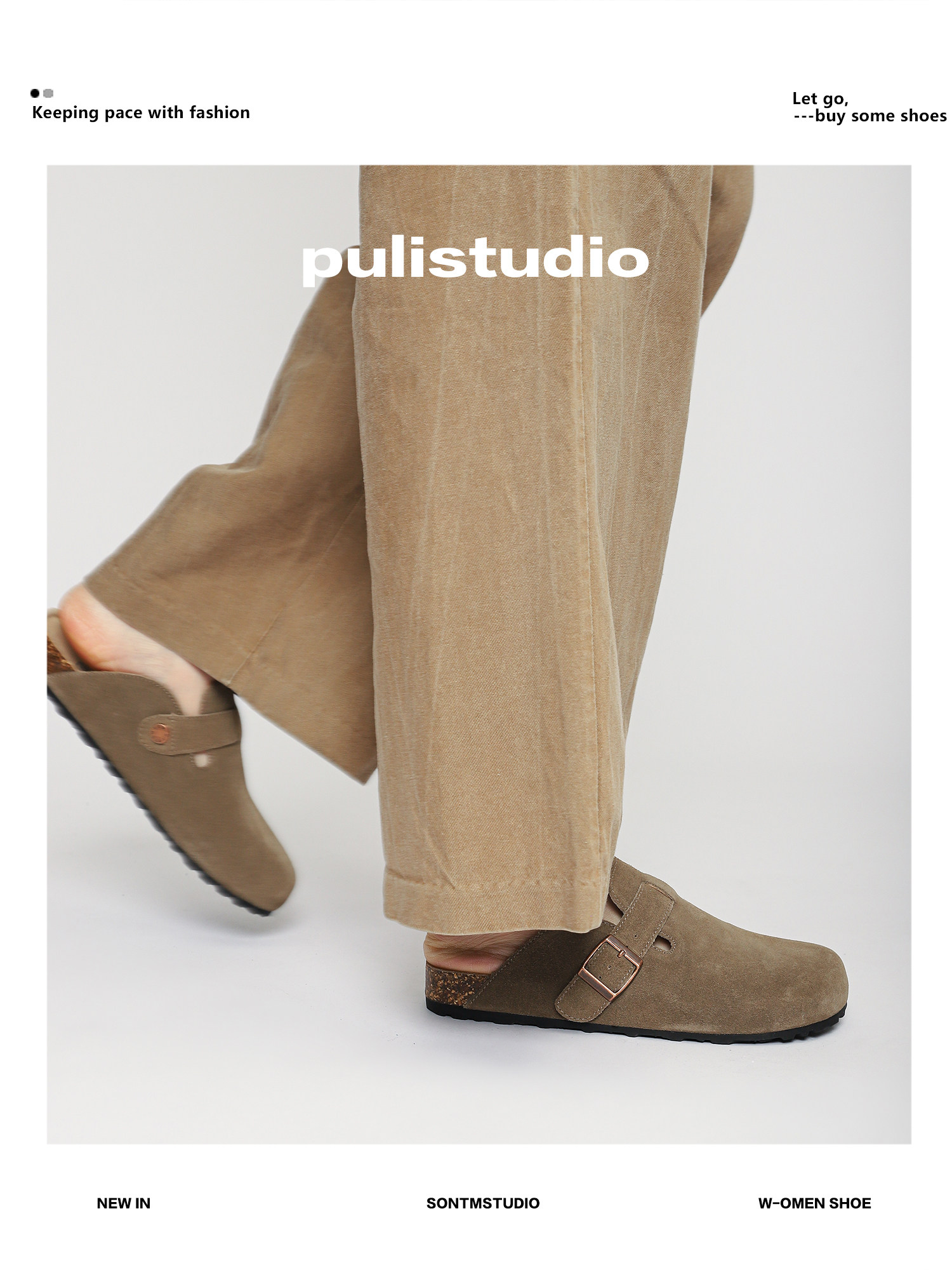 真皮軟木底勃肯鞋女拖鞋外穿大碼男女同款情侶博肯鞋包頭半拖男款