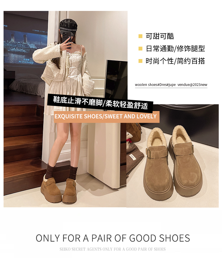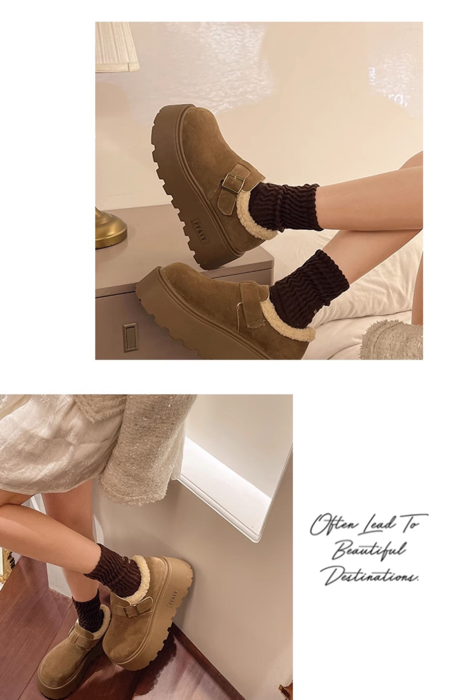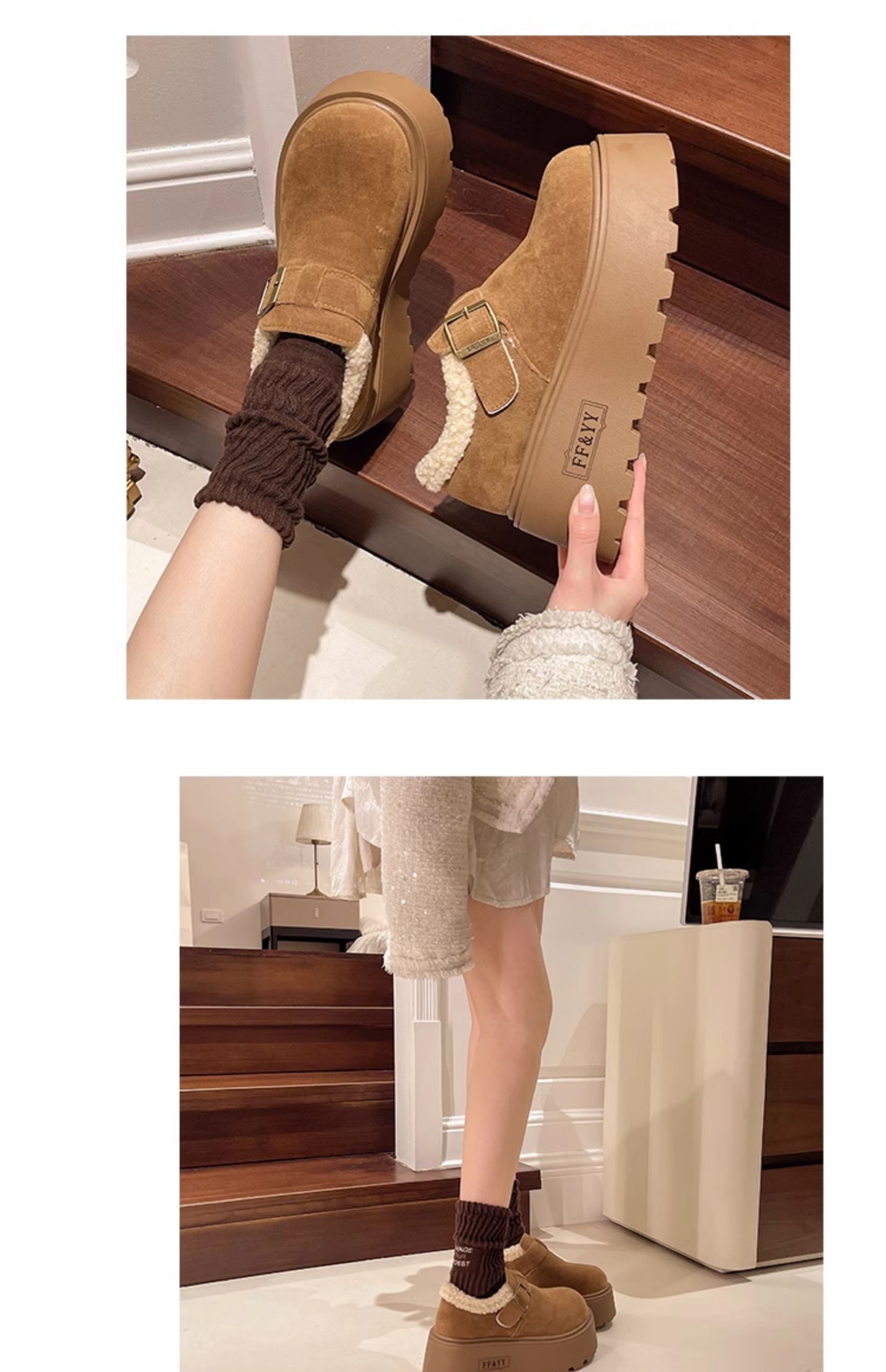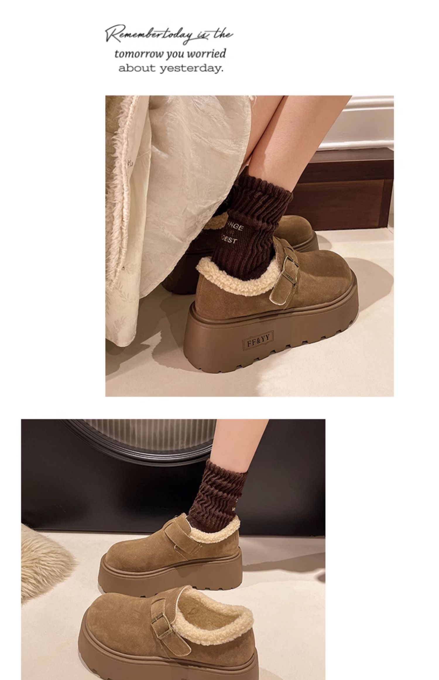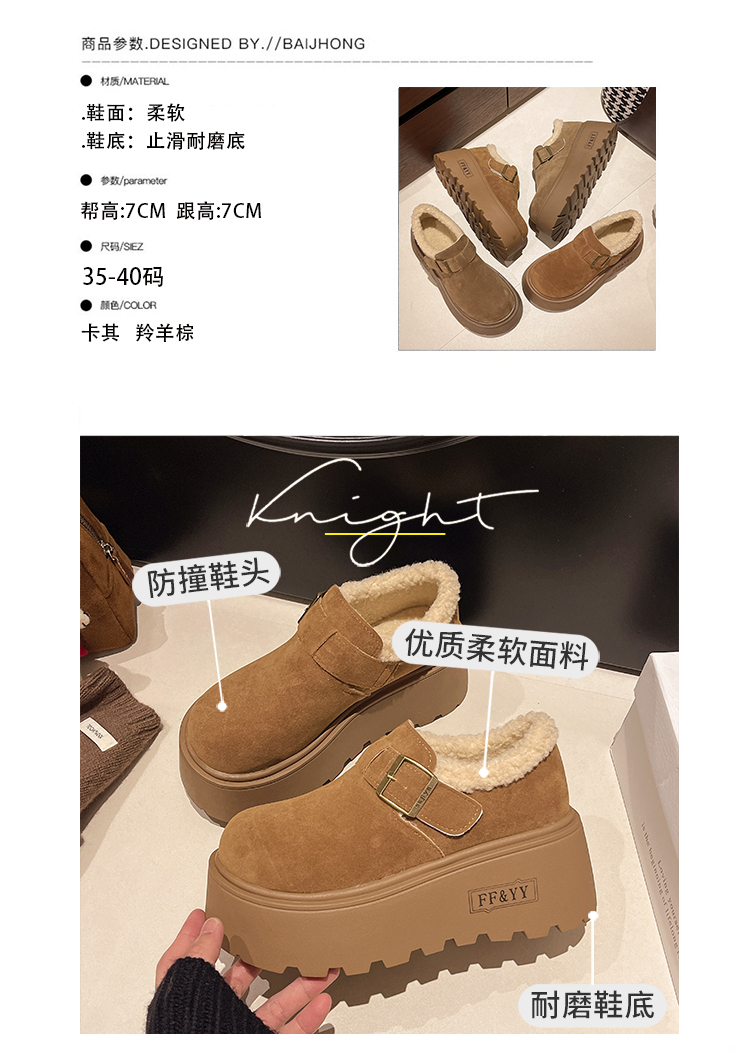 厚底增高雪地靴女加絨加厚勃肯鞋2025新款冬季爆款樂福鞋雪地棉鞋