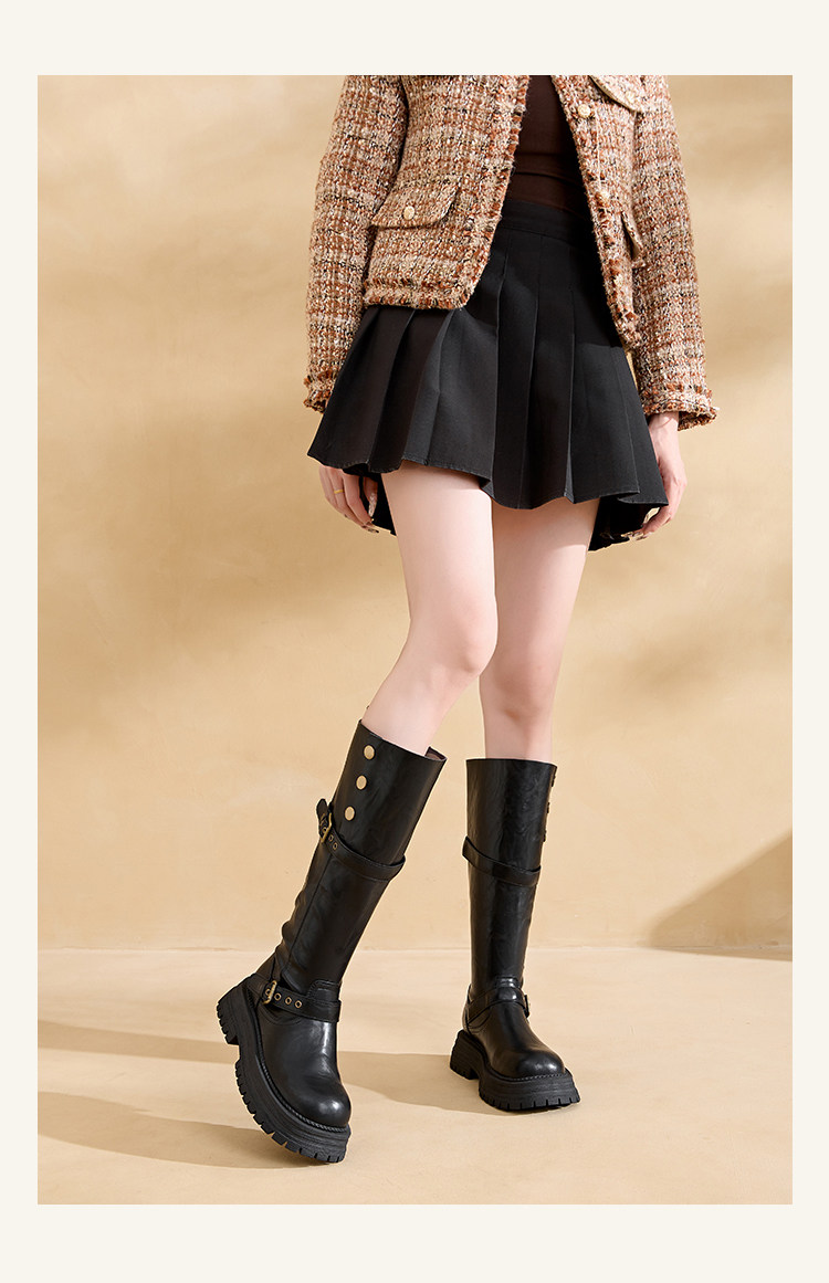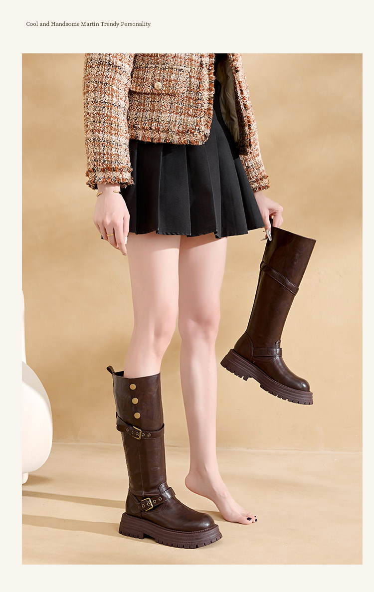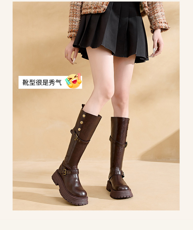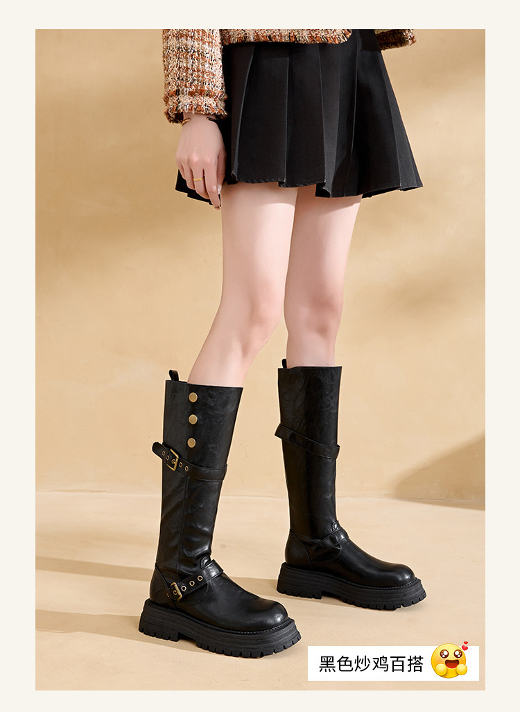 兩穿復古英倫風不過膝長筒靴女2026新款胖mm大碼顯瘦騎士長靴加寬