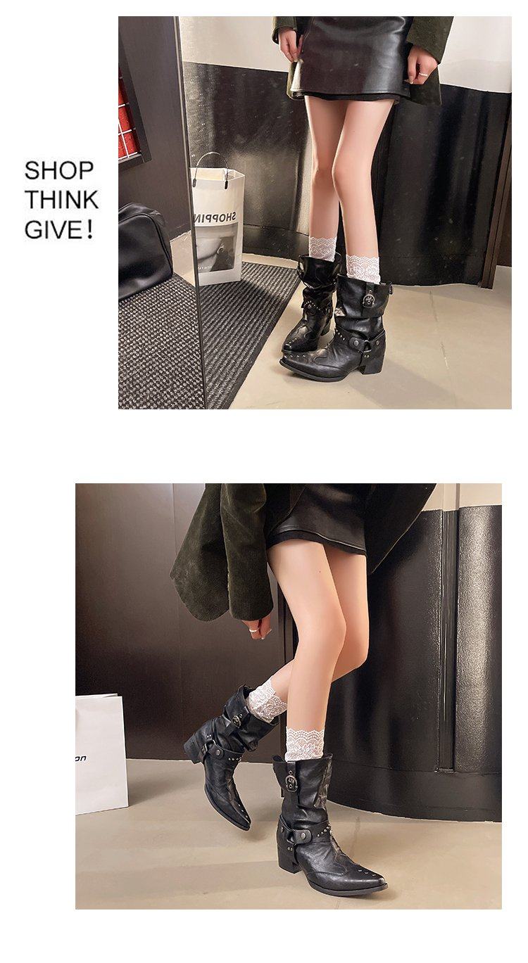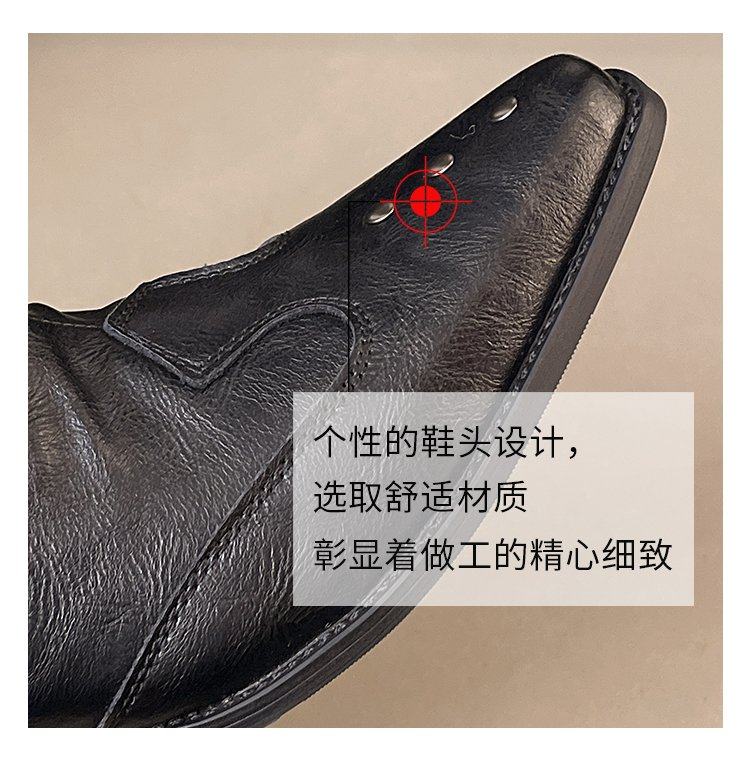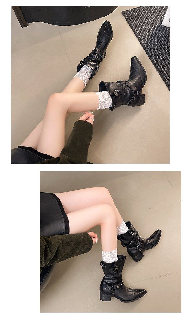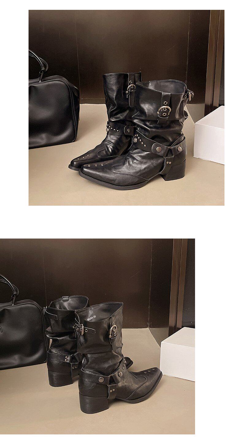 2025超火短靴尖頭粗跟鉚釘堆堆靴西部牛仔時裝靴女英倫風個性靴子