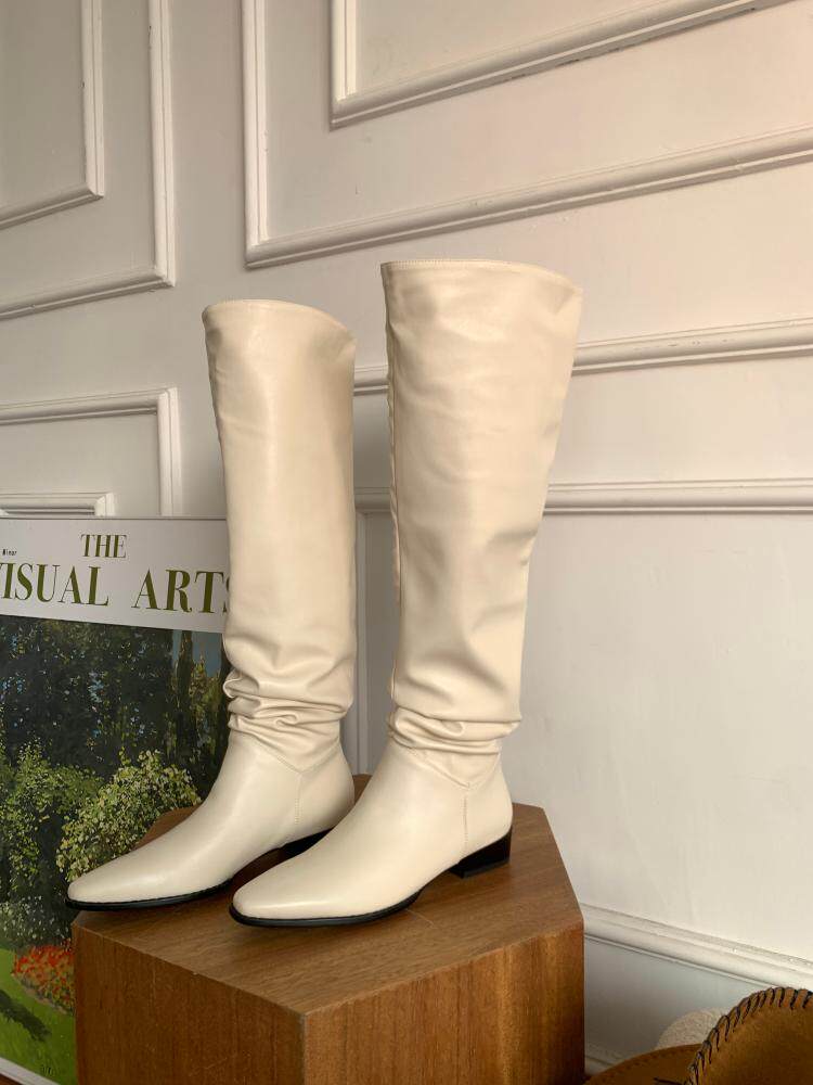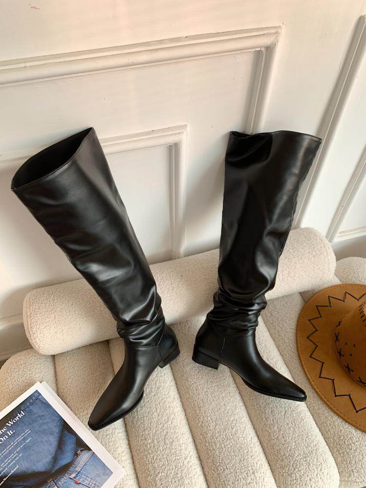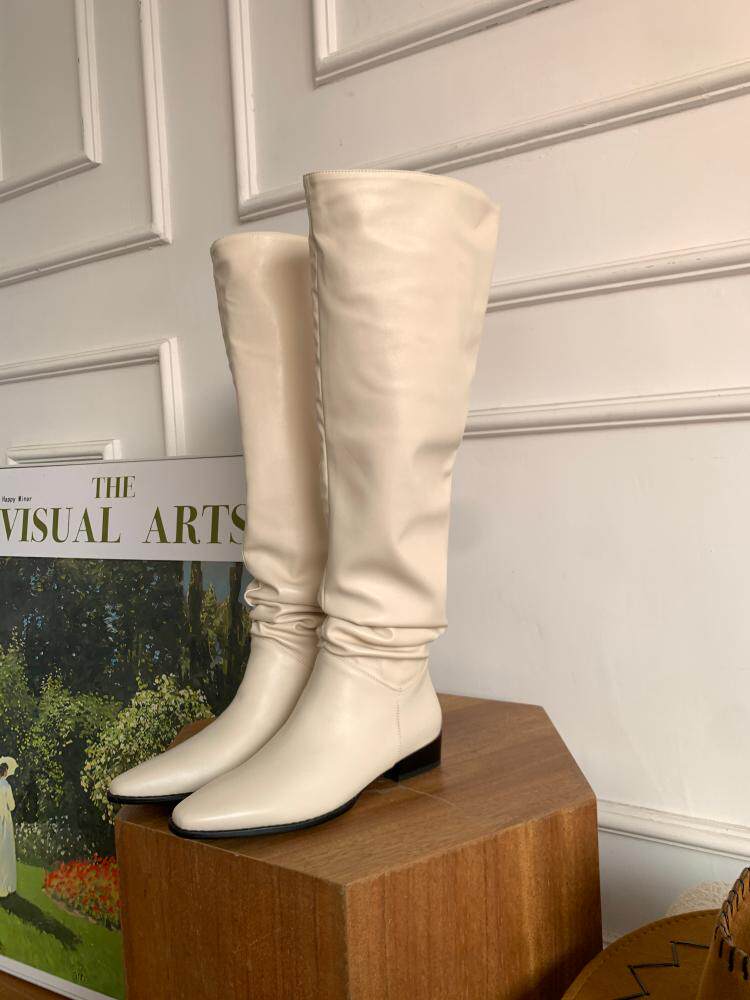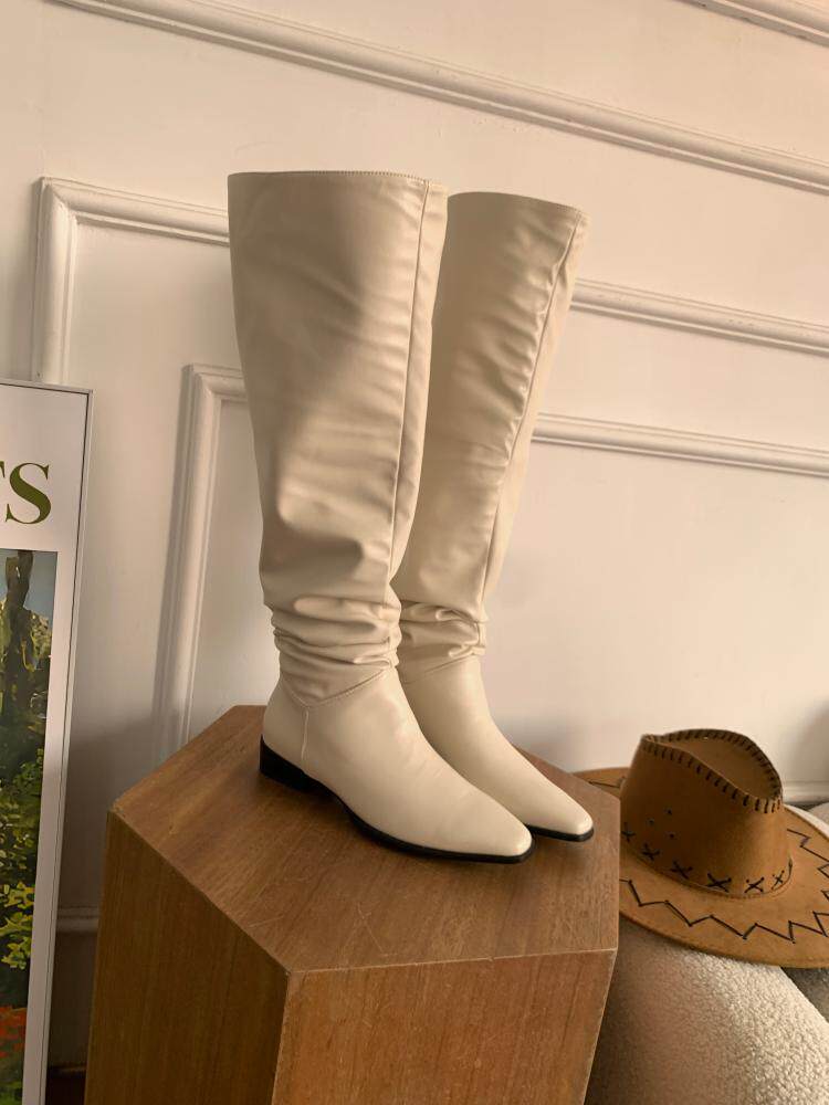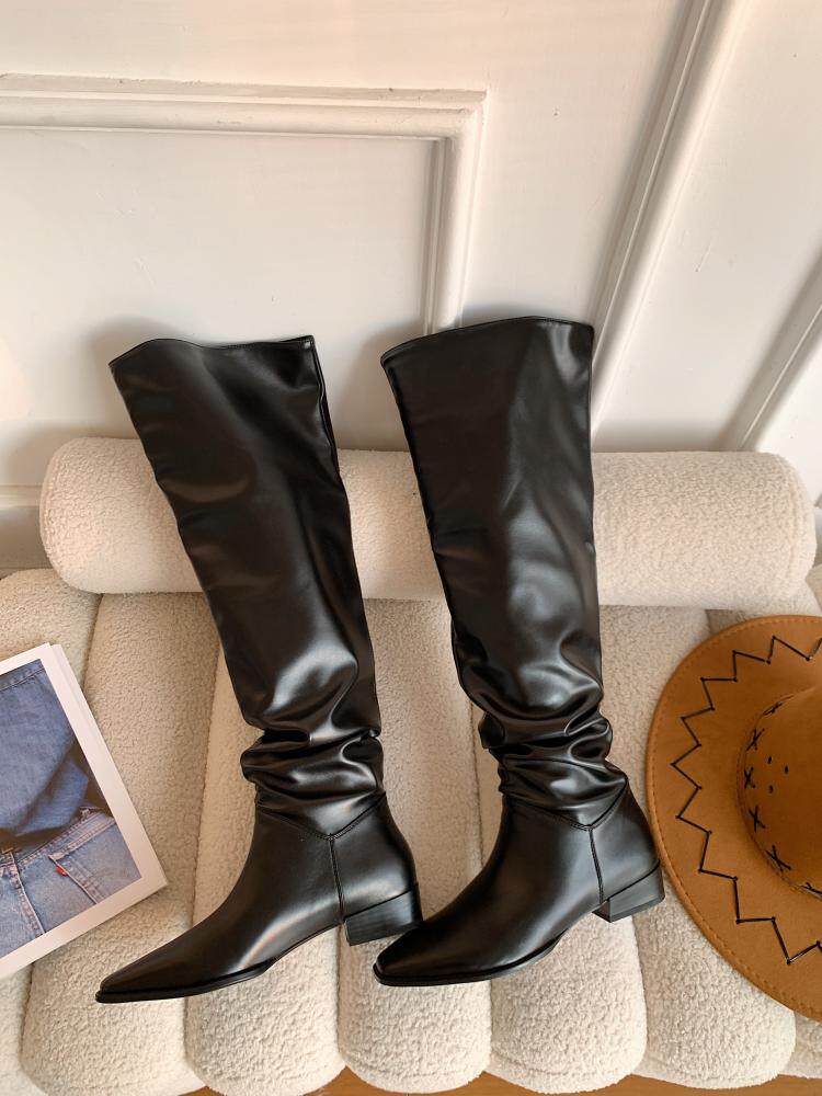 宋熙熙2026春新款長靴平底過膝靴大筒圍騎士靴女高筒靴百搭堆堆靴