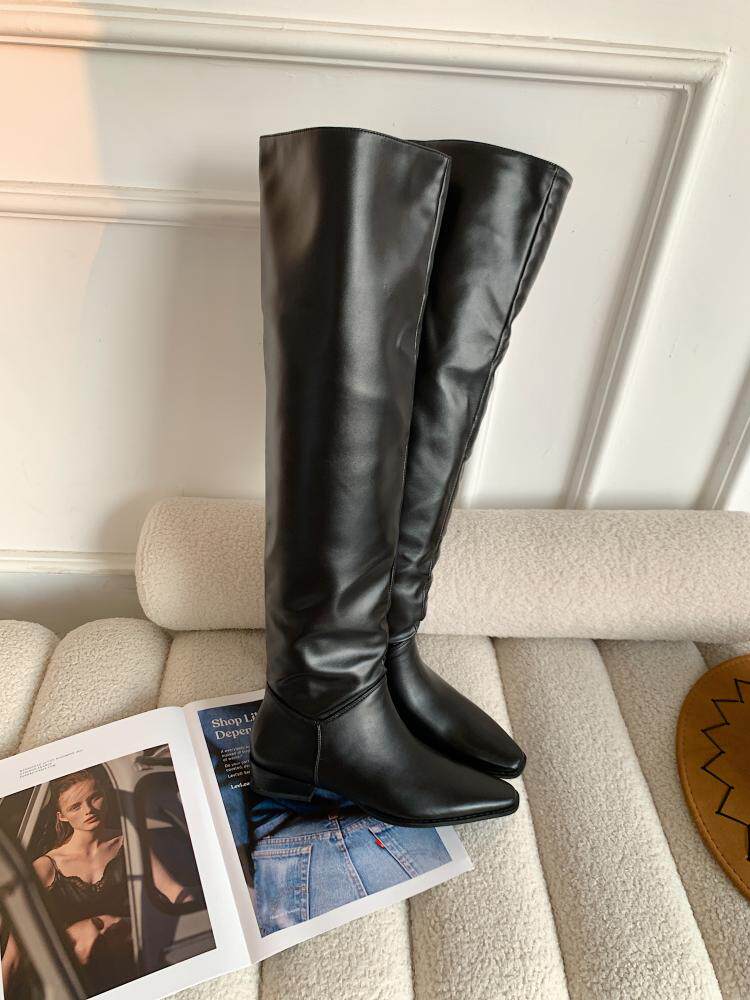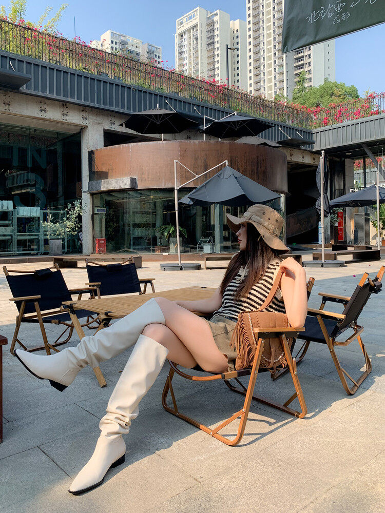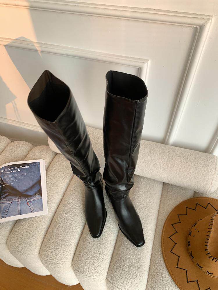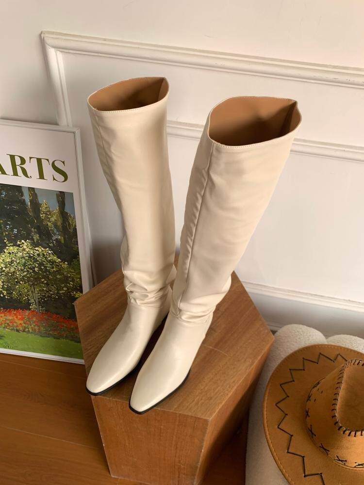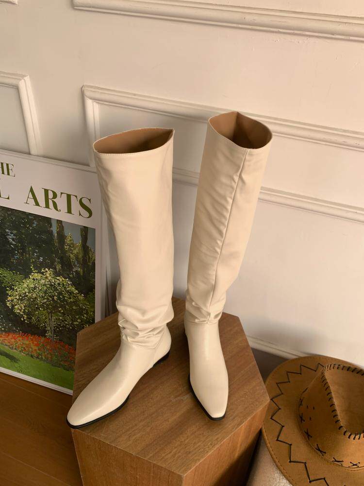 宋熙熙2026春新款長靴平底過膝靴大筒圍騎士靴女高筒靴百搭堆堆靴