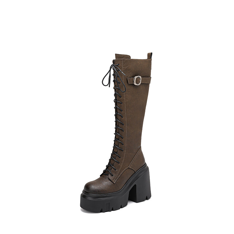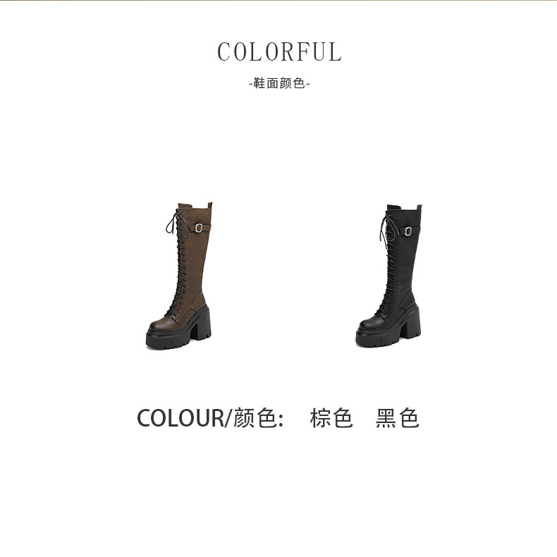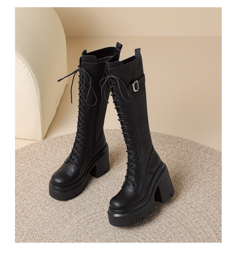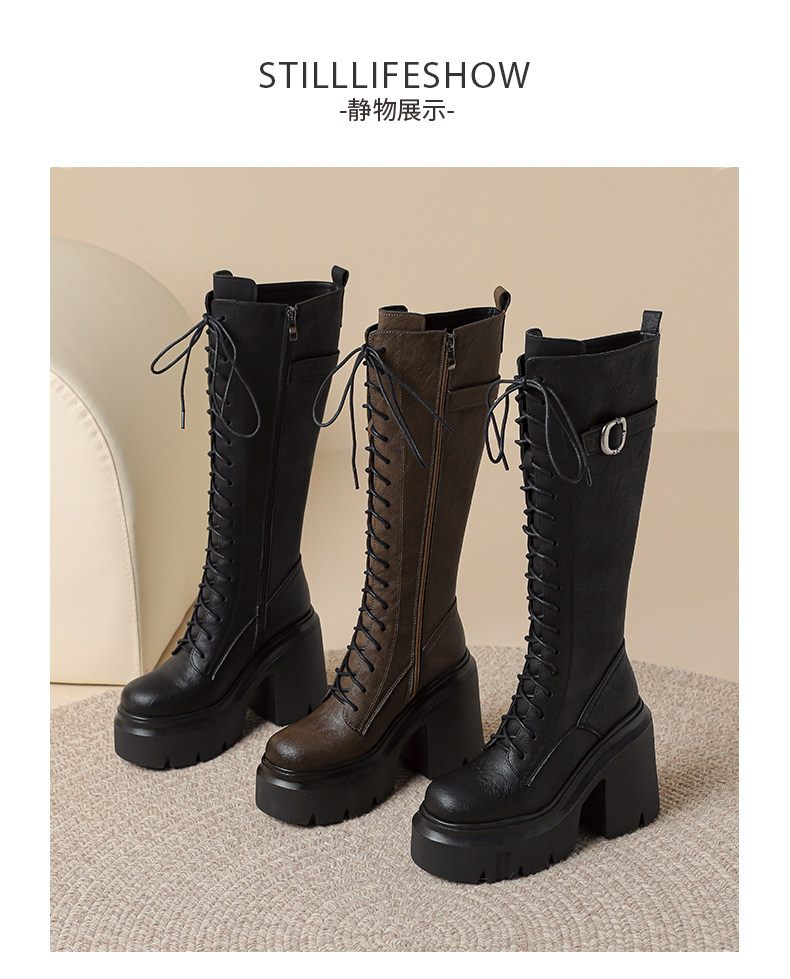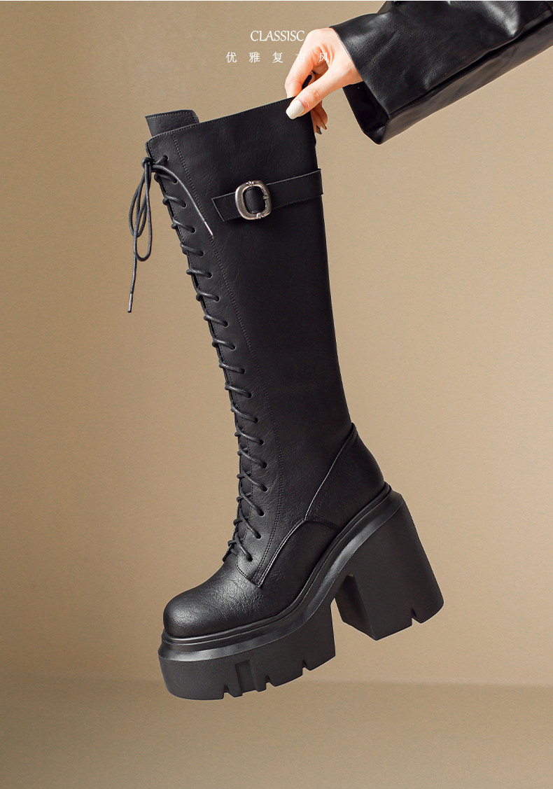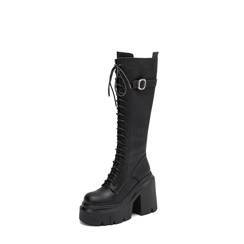 2025秋新款高跟長靴騎士靴女顯瘦長筒高筒靴厚底機車粗跟馬丁靴子