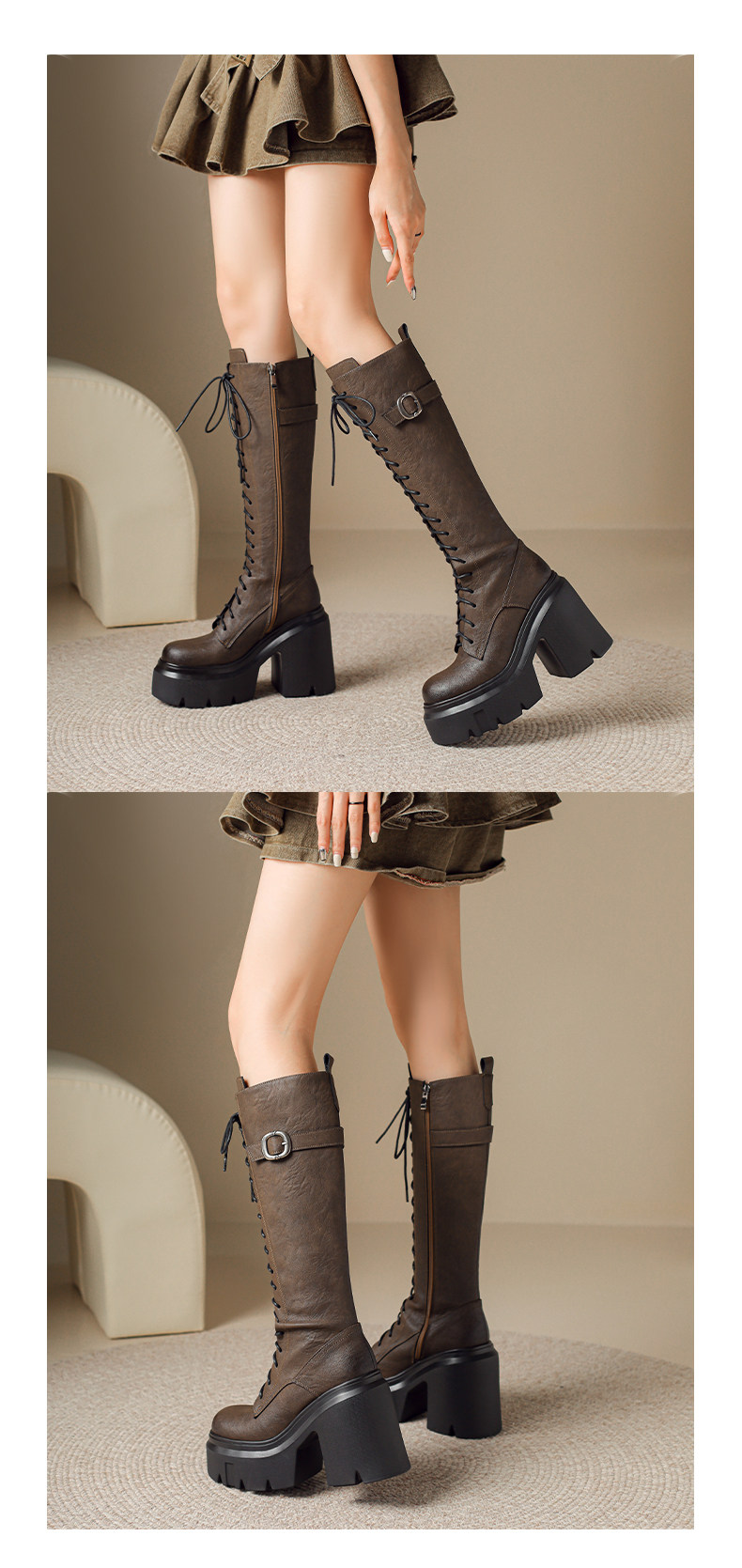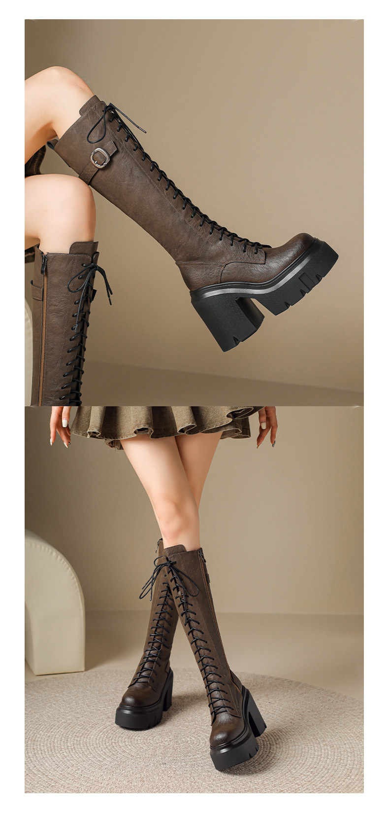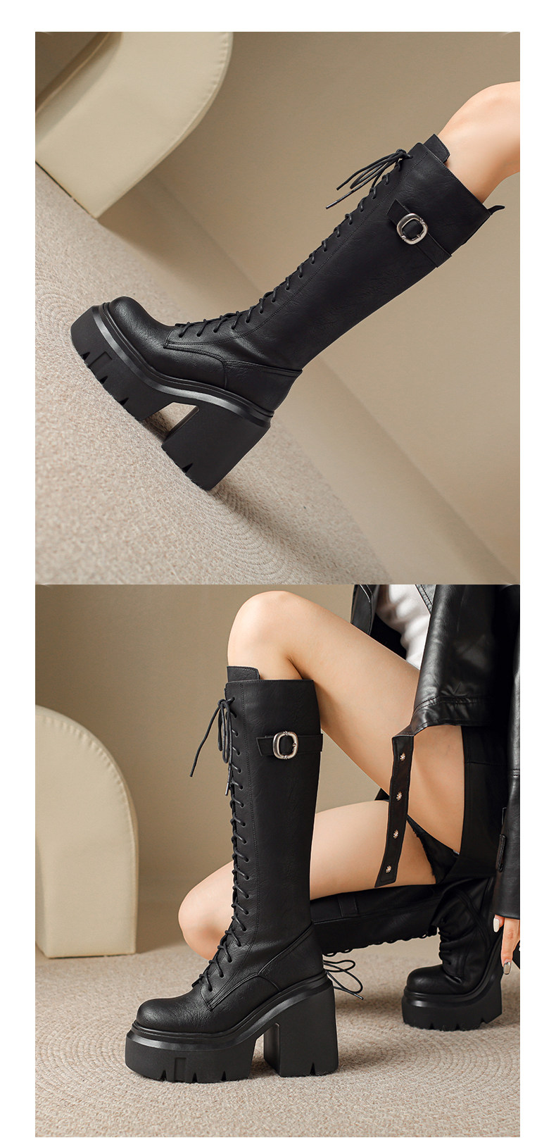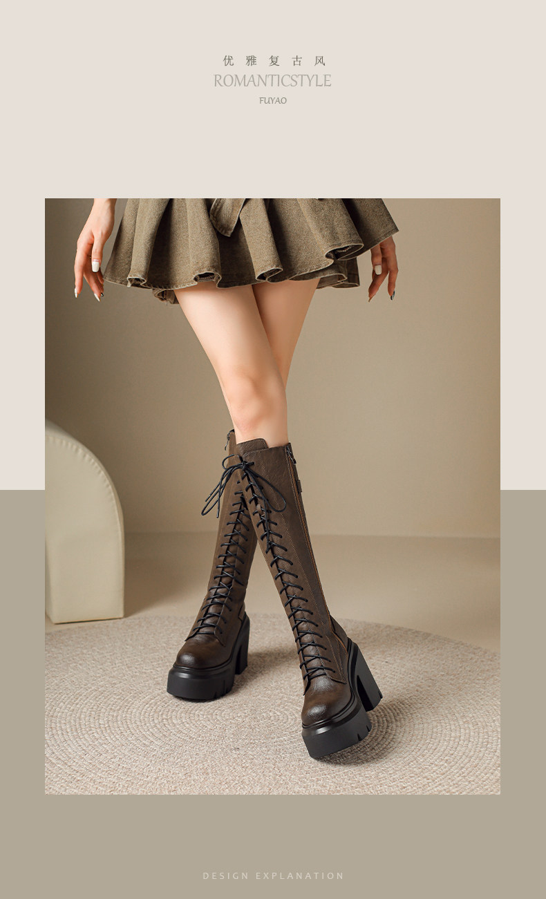 2025秋新款高跟長靴騎士靴女顯瘦長筒高筒靴厚底機車粗跟馬丁靴子