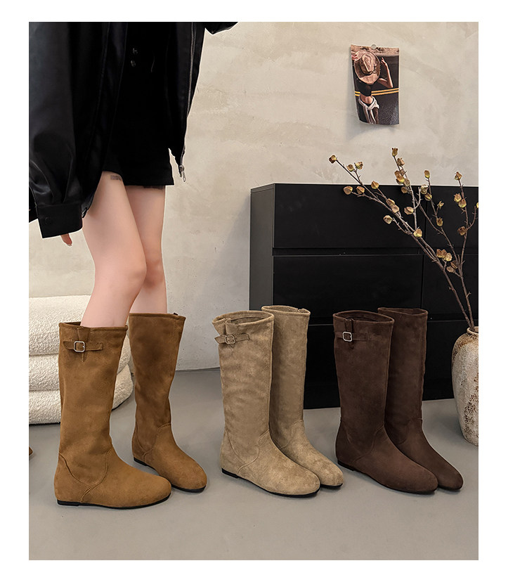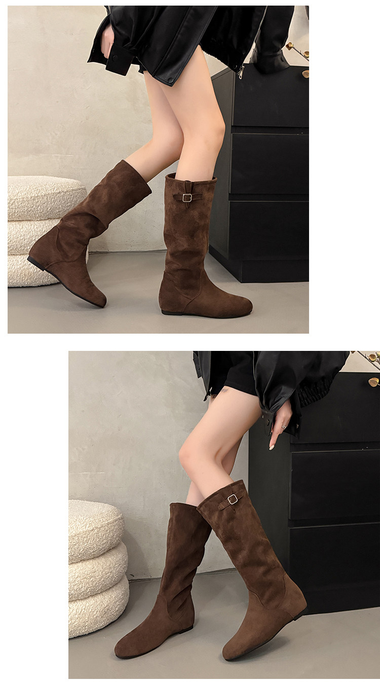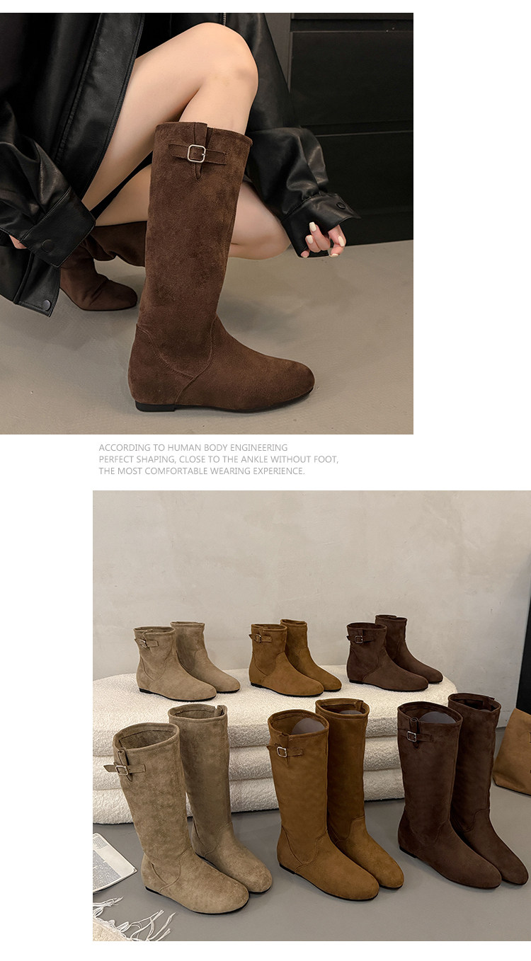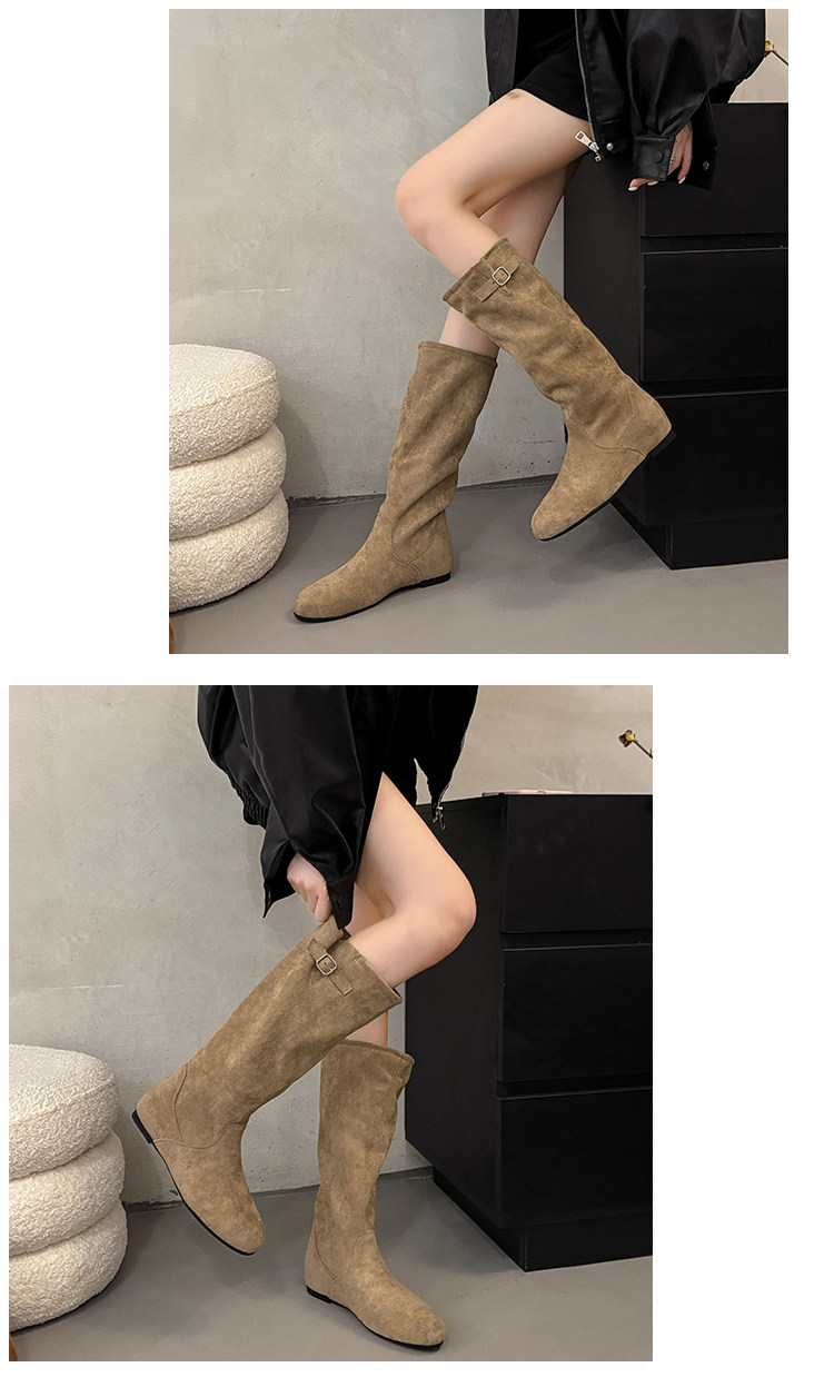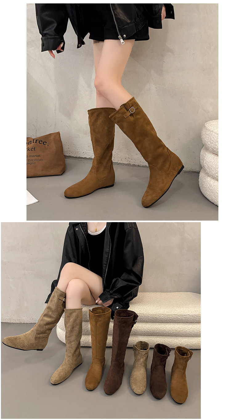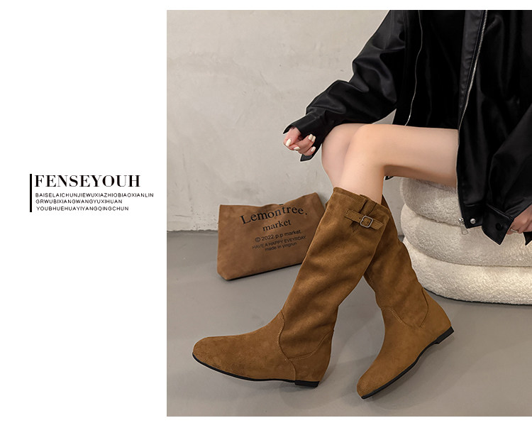 復古堆堆長筒靴女秋冬新款內增高不過膝高筒騎士靴平底西部牛仔靴