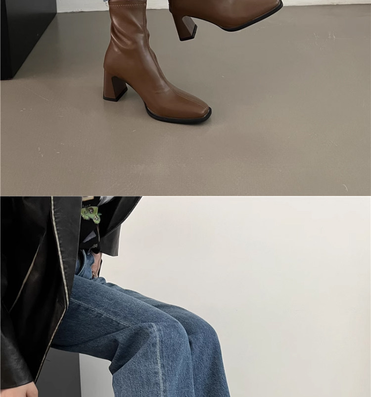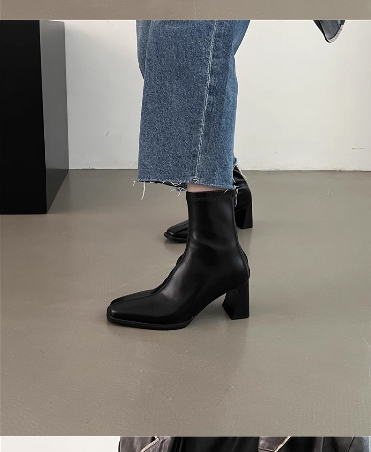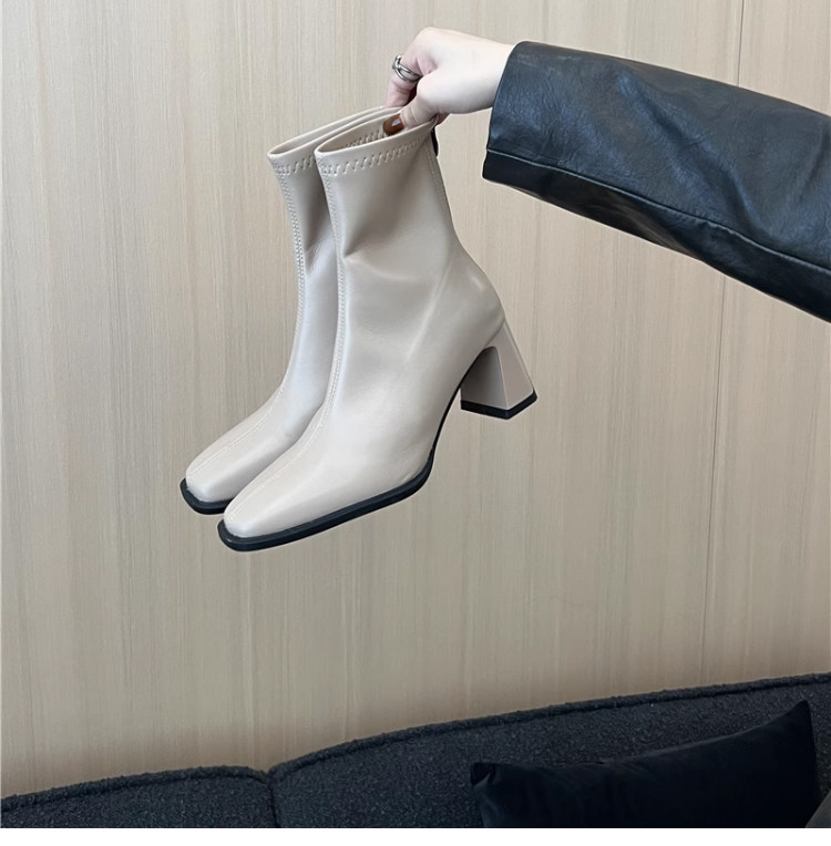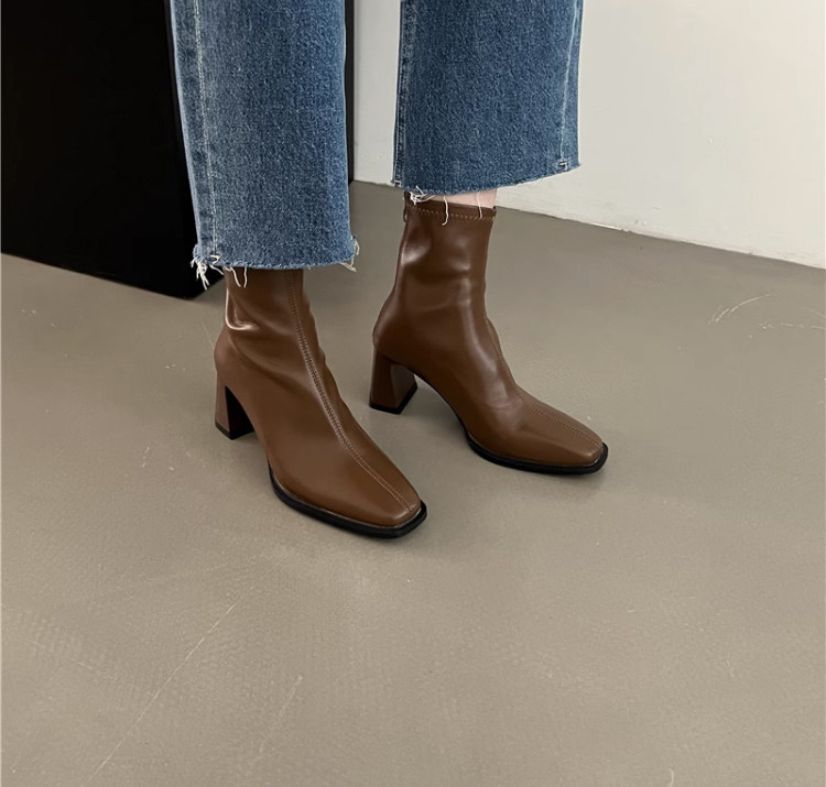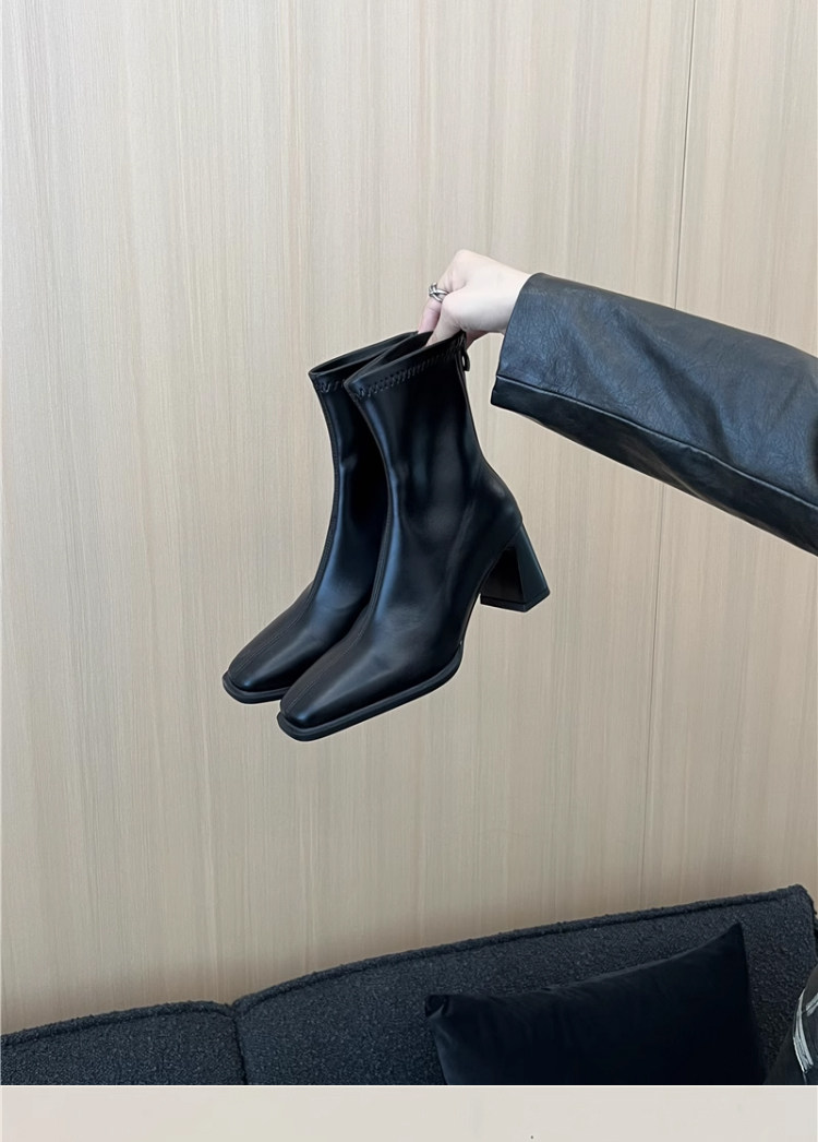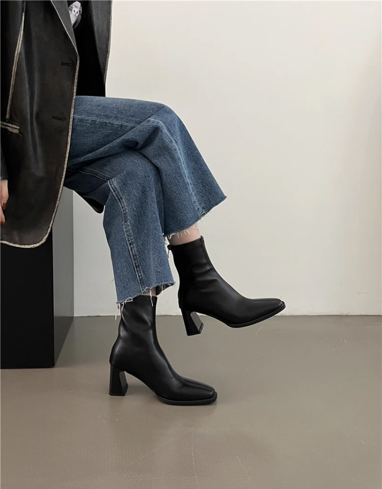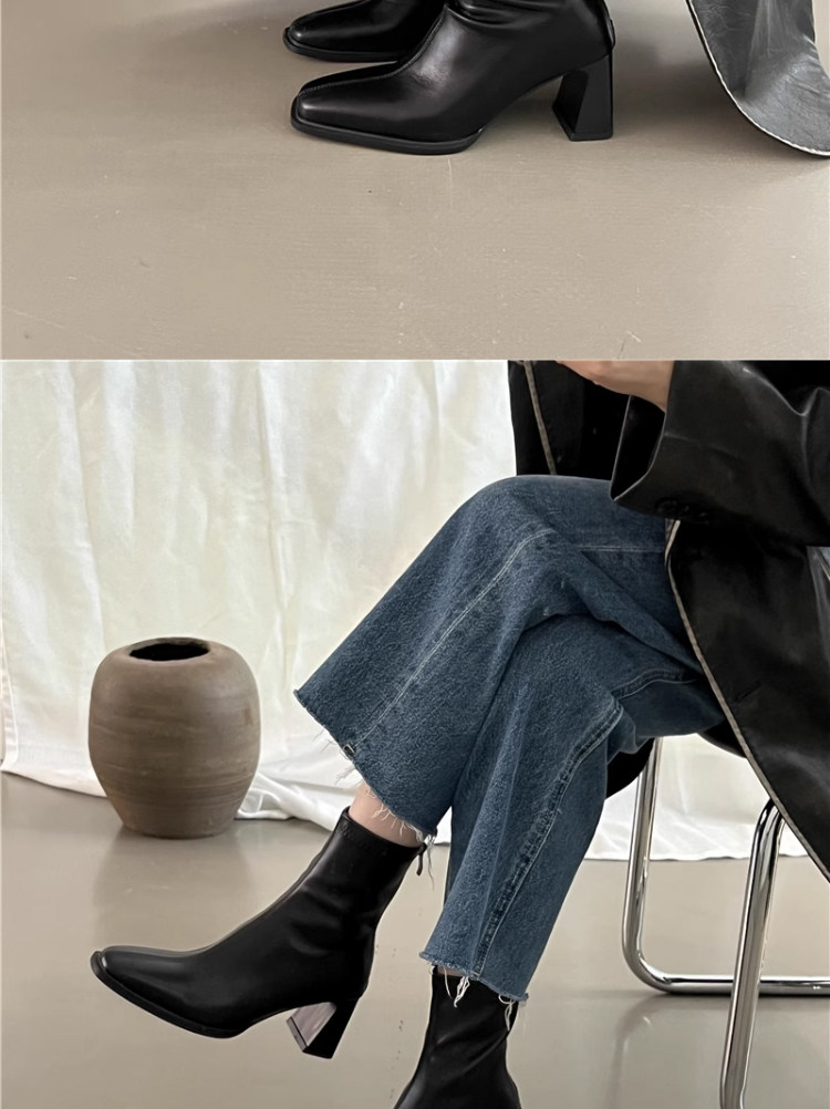 高跟鞋靴子粗跟韓系短靴女2026新款春秋季法式小踝靴馬丁靴瘦瘦靴