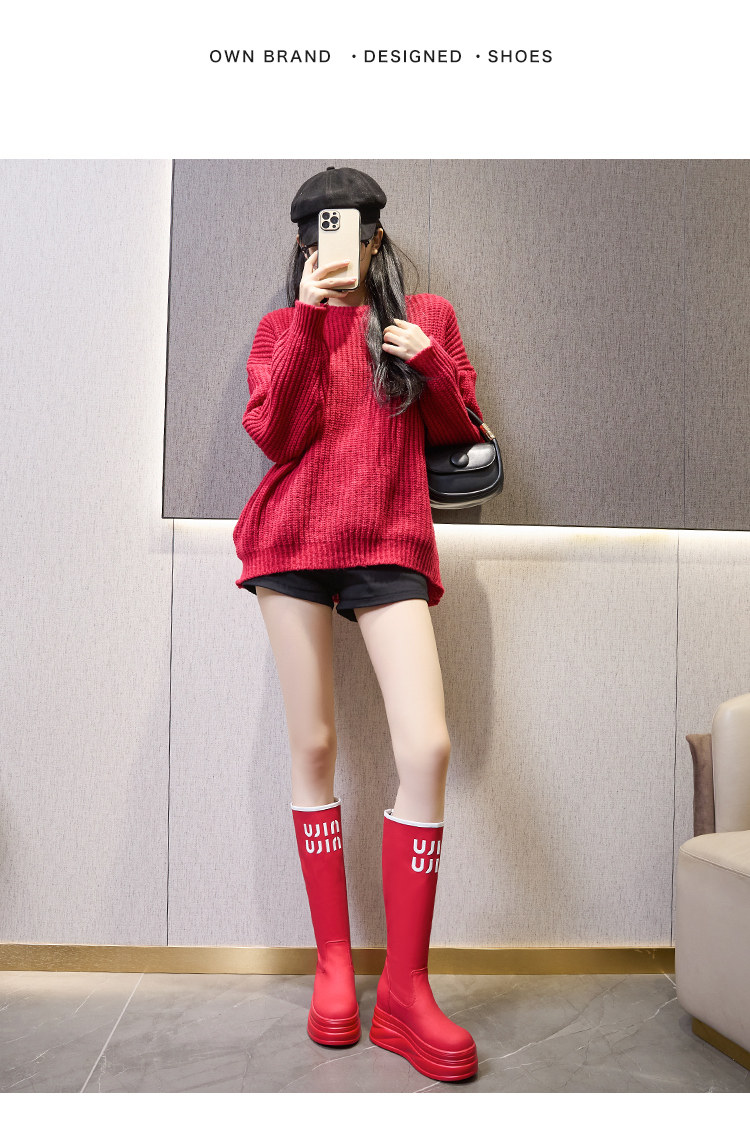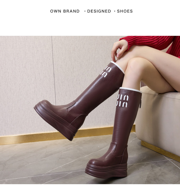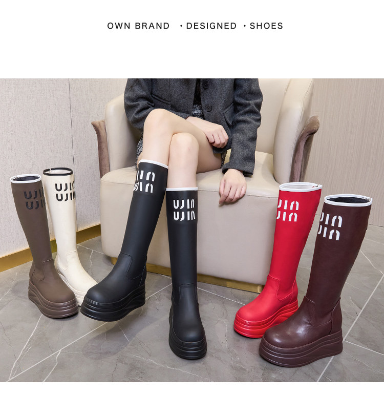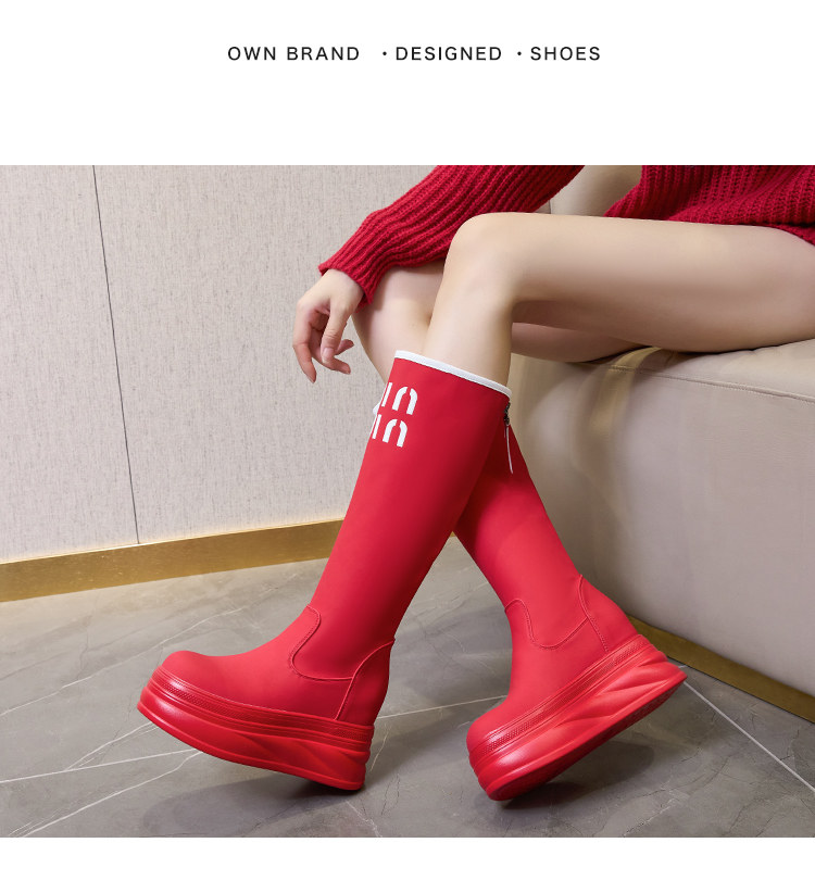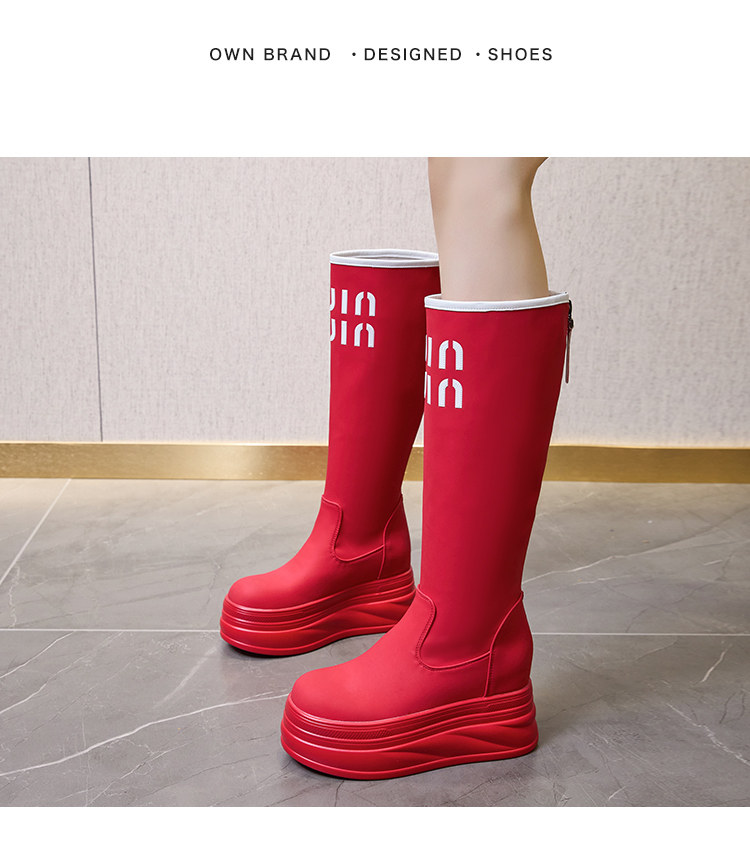 內增高長筒靴女2025秋冬新款紅色騎士靴小個子白色高筒靴高跟靴子