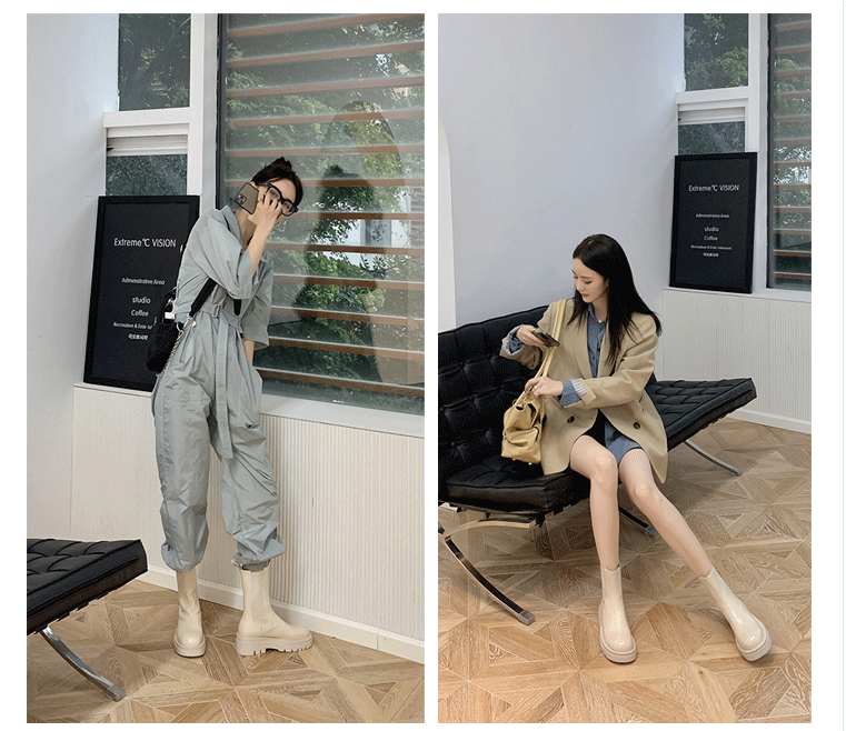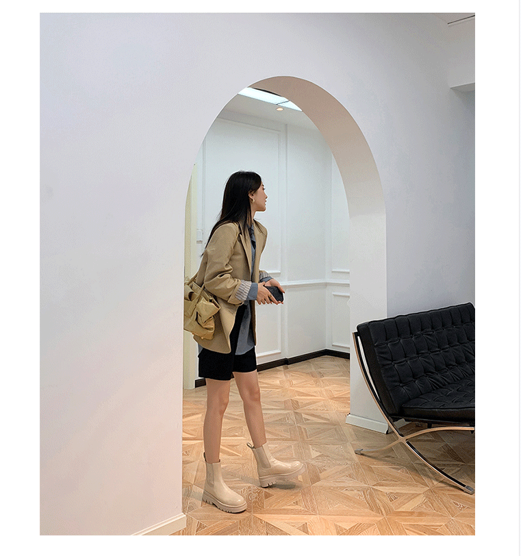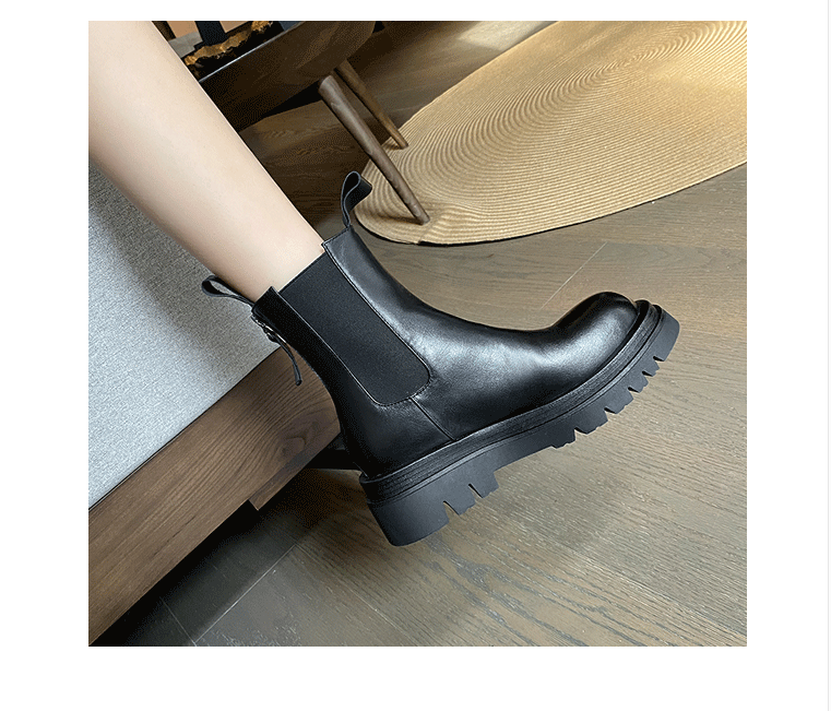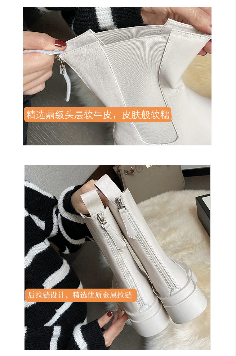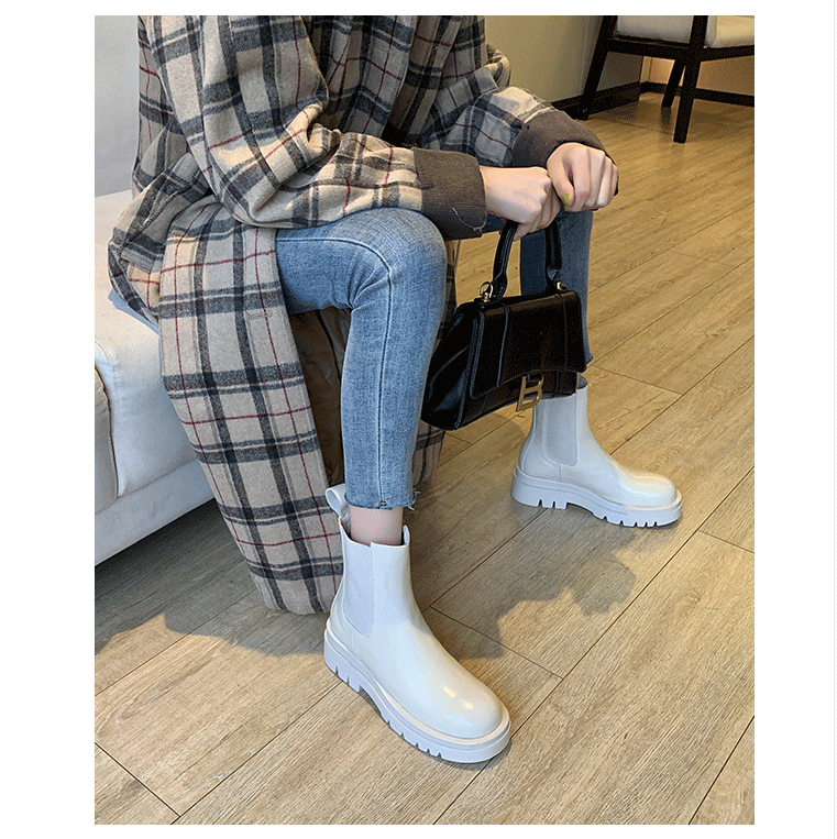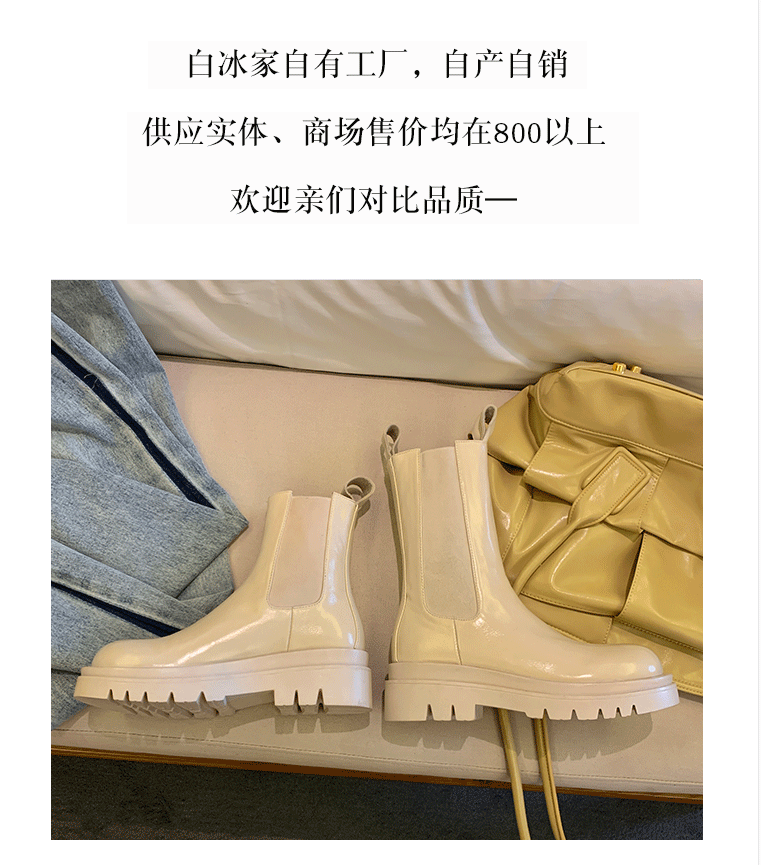 mona同款松緊口切爾西白色真皮短靴內增高大碼41一43厚底菸筒靴女