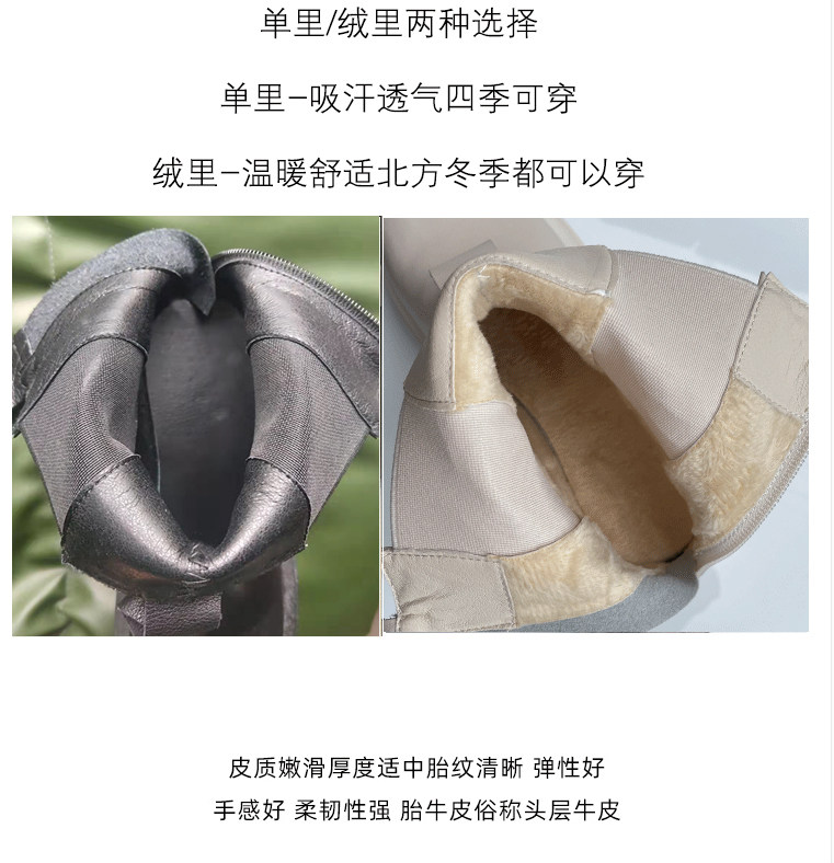 | 靴筒內裡材質 | 頭層豬皮 |
