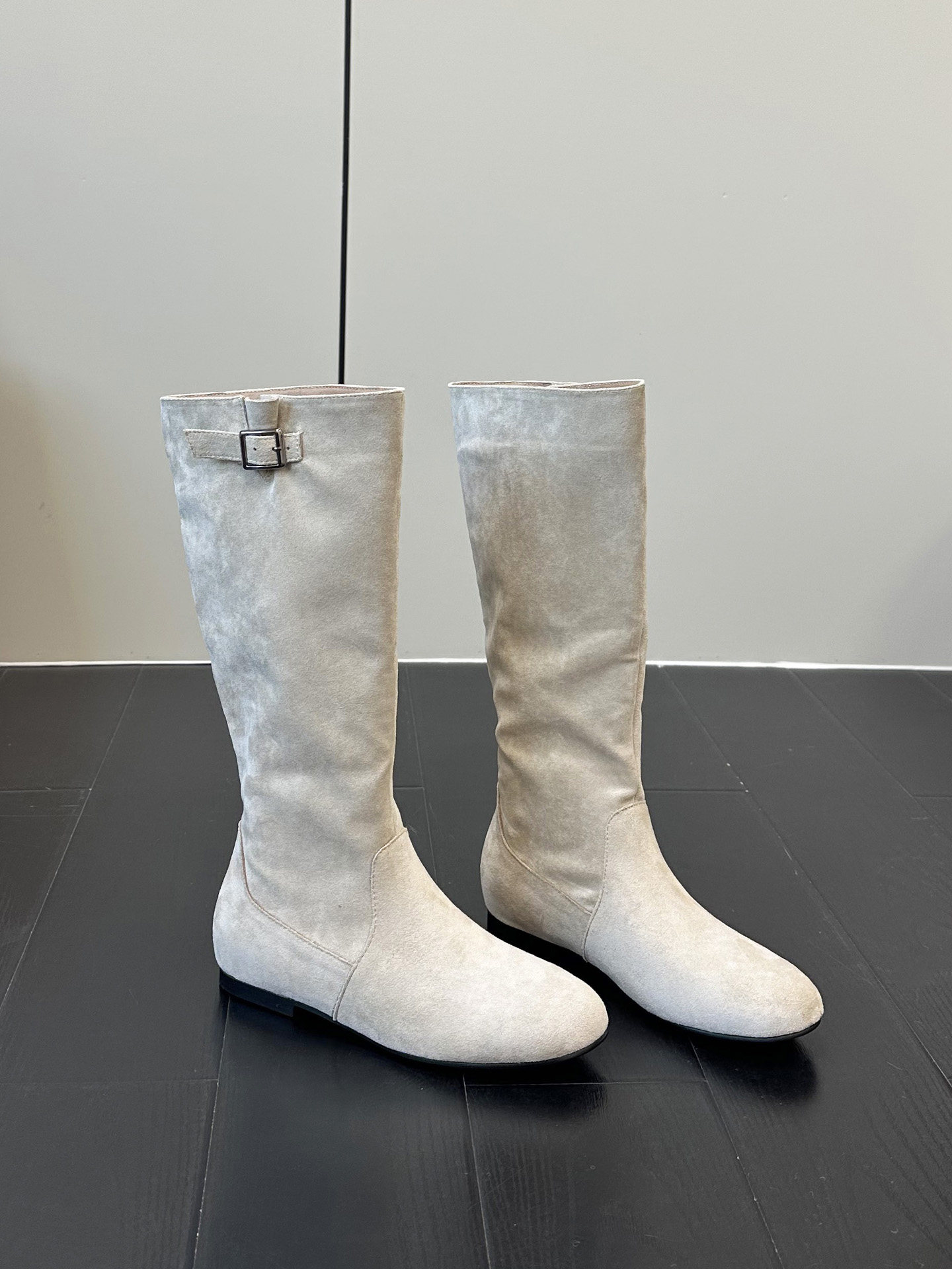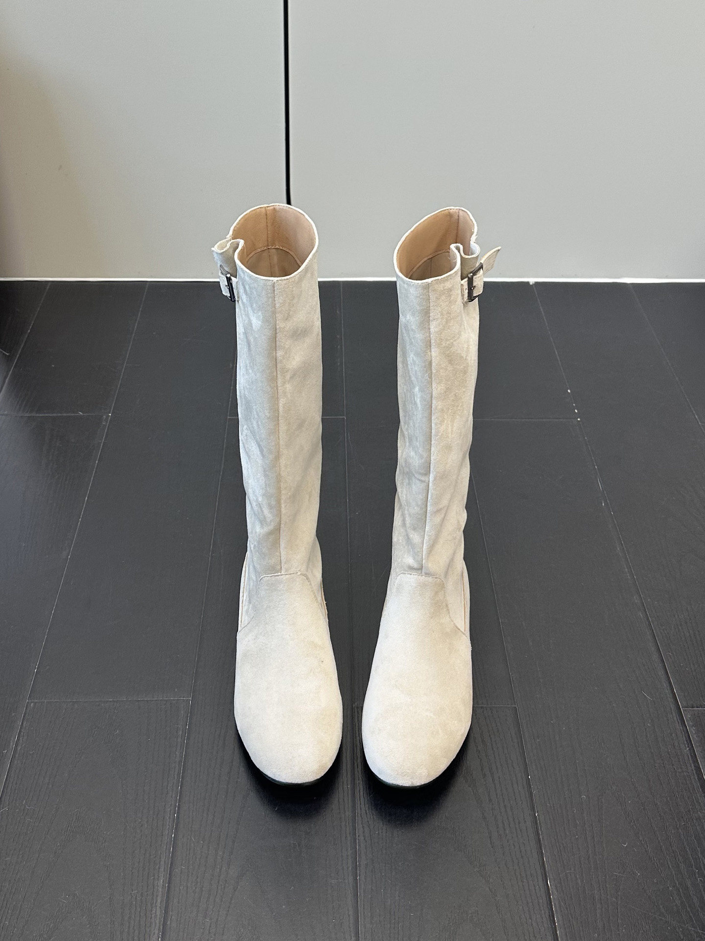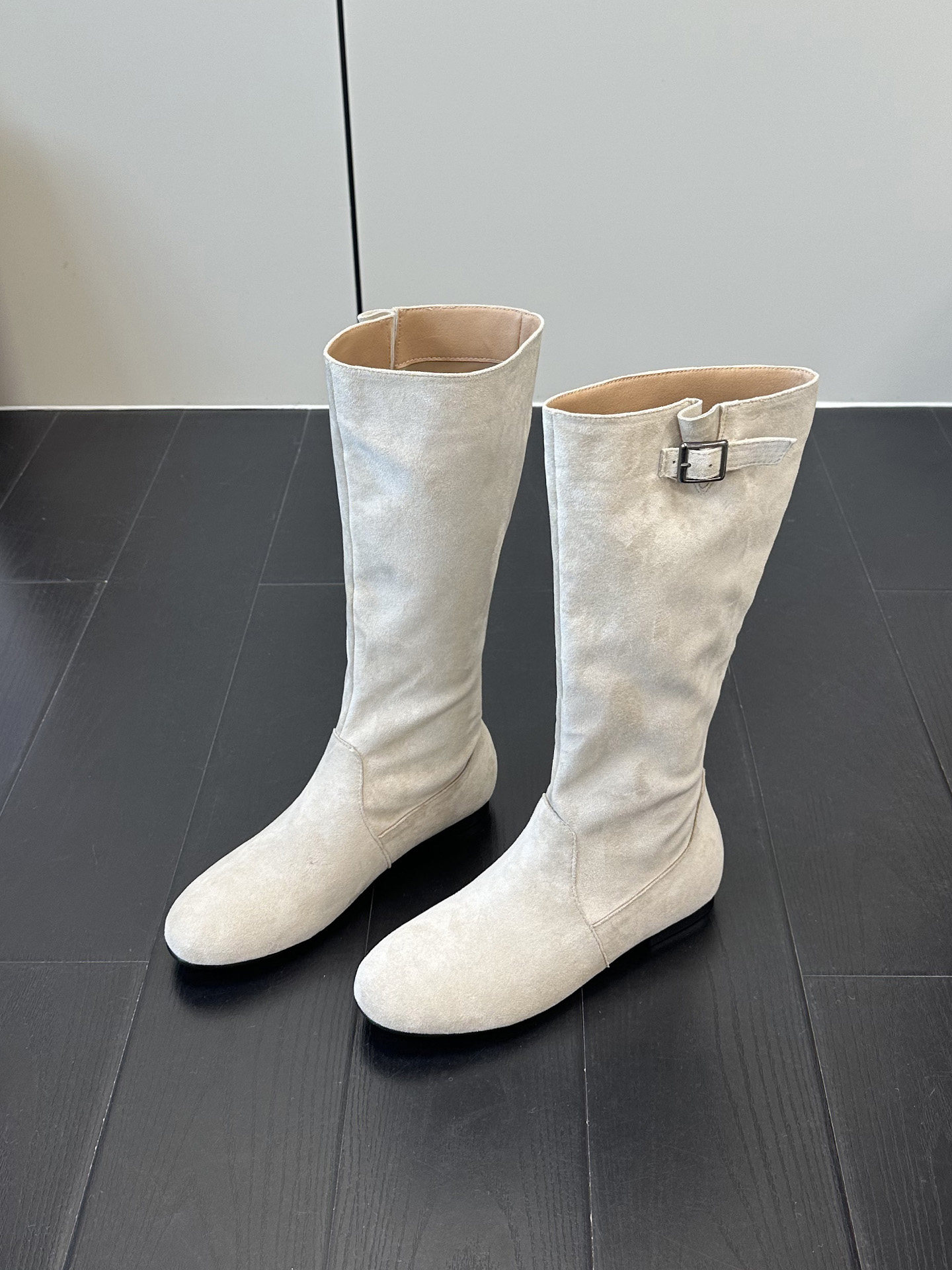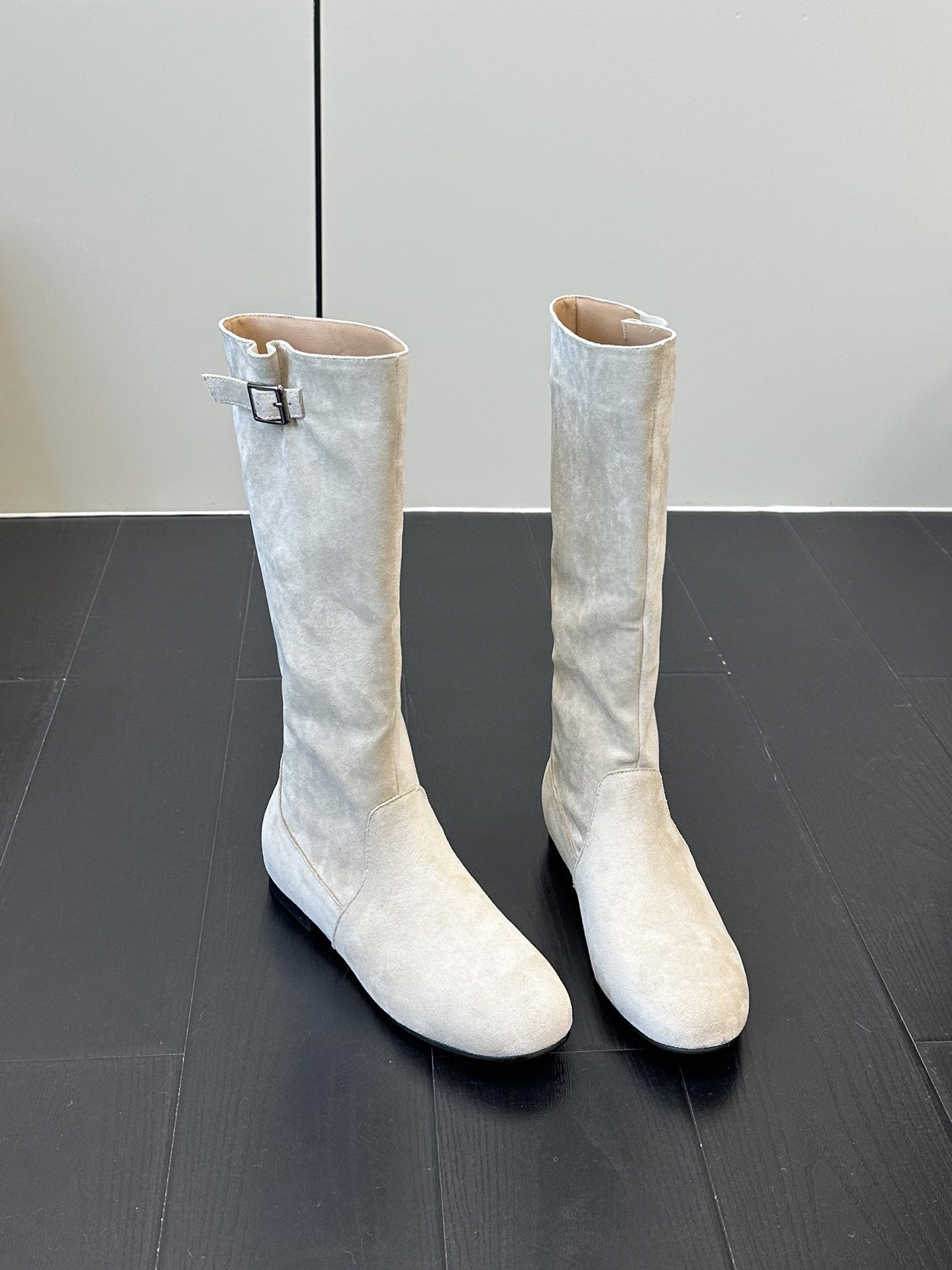 韓版高筒法式西部堆堆靴子女2025年秋冬新款圓頭絨面內增高長筒靴