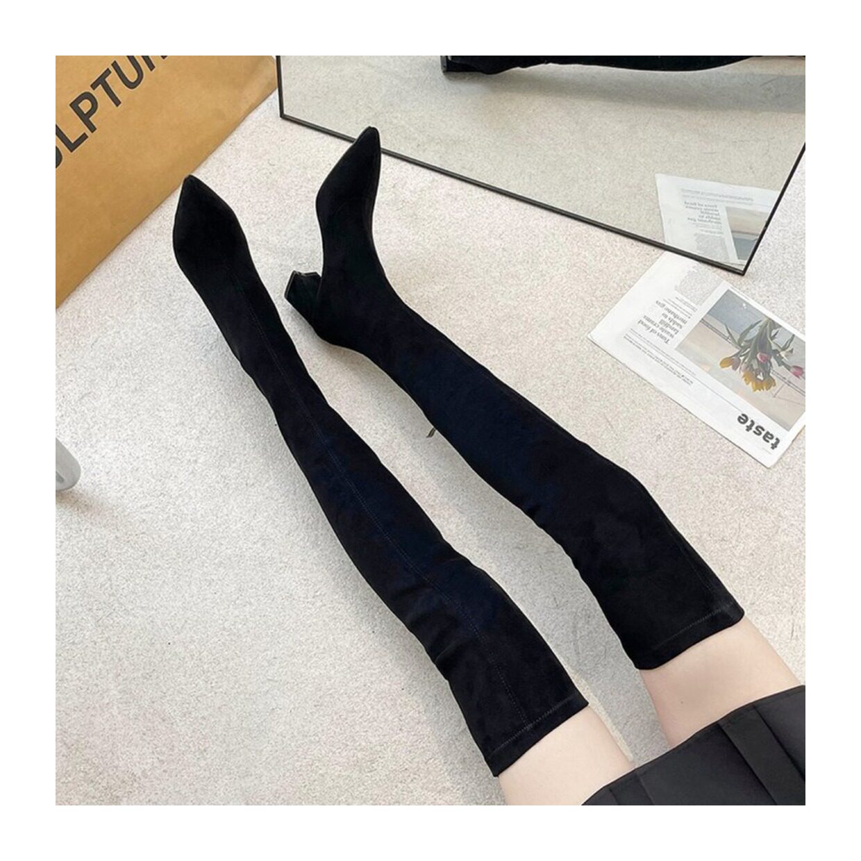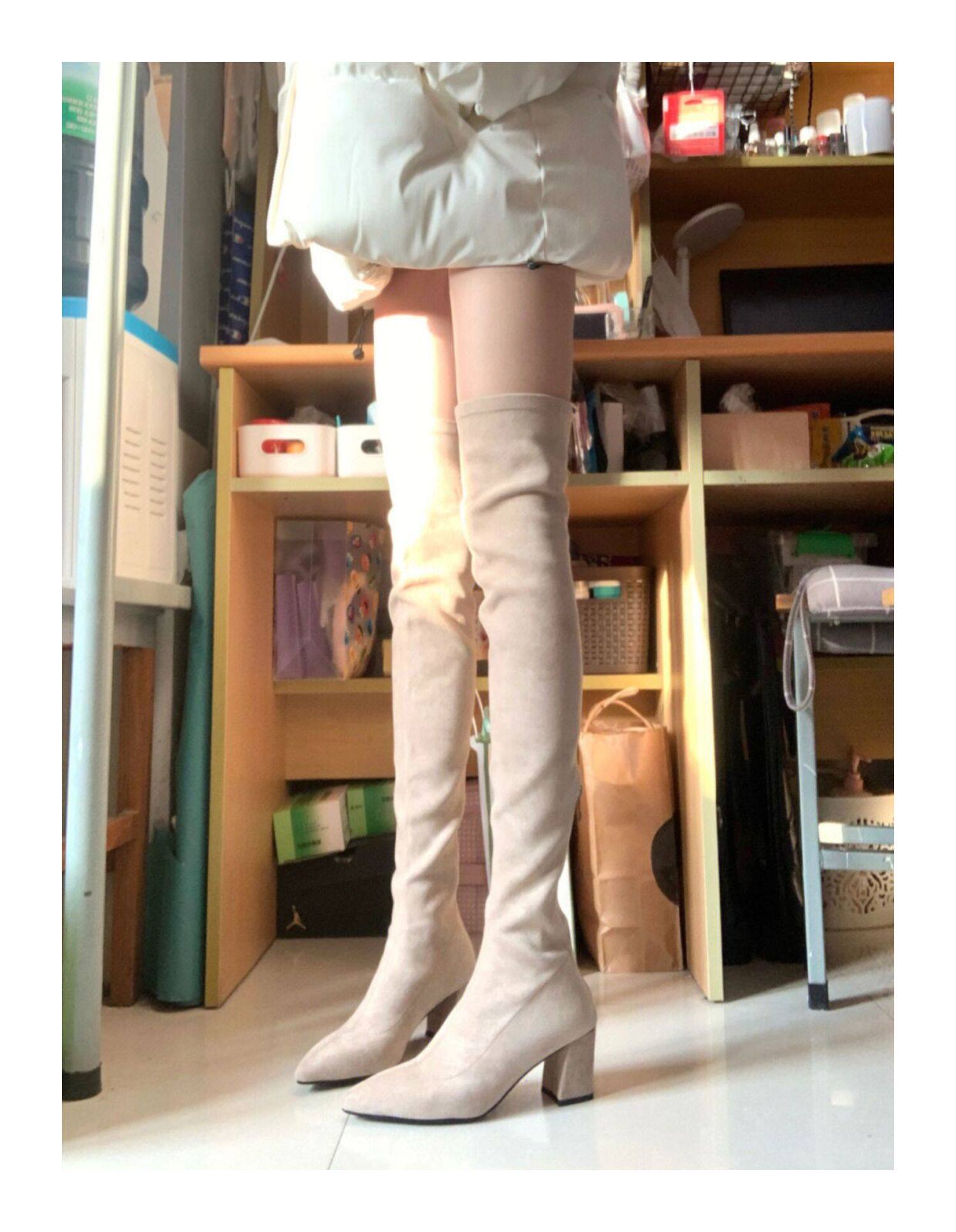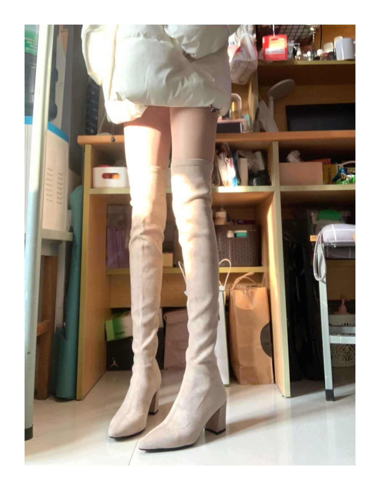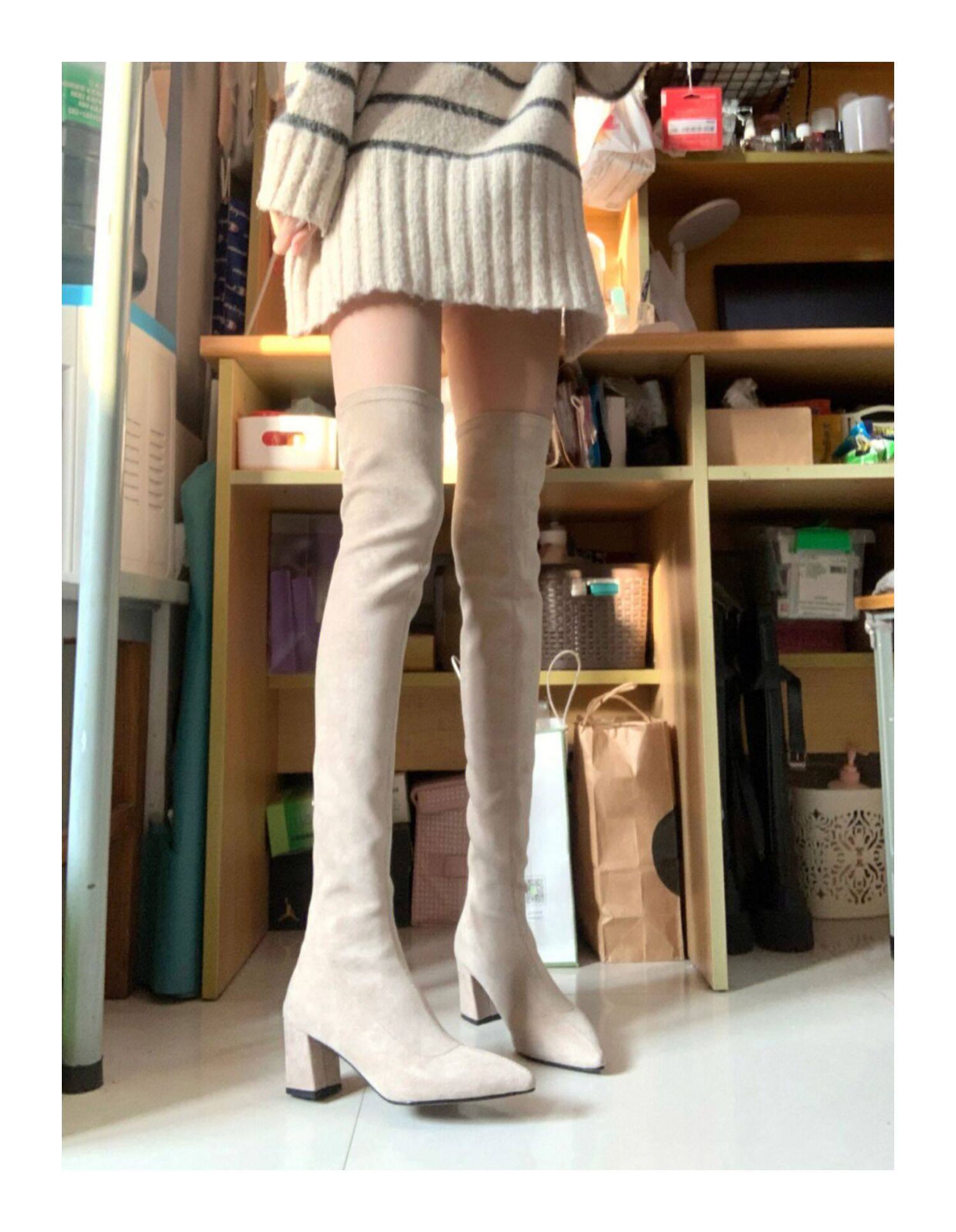 過膝靴2025秋冬新款時尚百搭尖頭粗跟高筒彈力瘦瘦靴小個子長筒靴