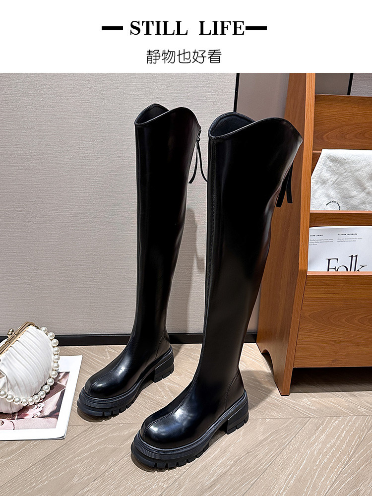 美夢丞過膝長靴女大筒圍粗腿瘦瘦靴平底高筒騎士靴加絨長靴大碼41