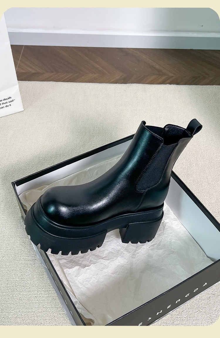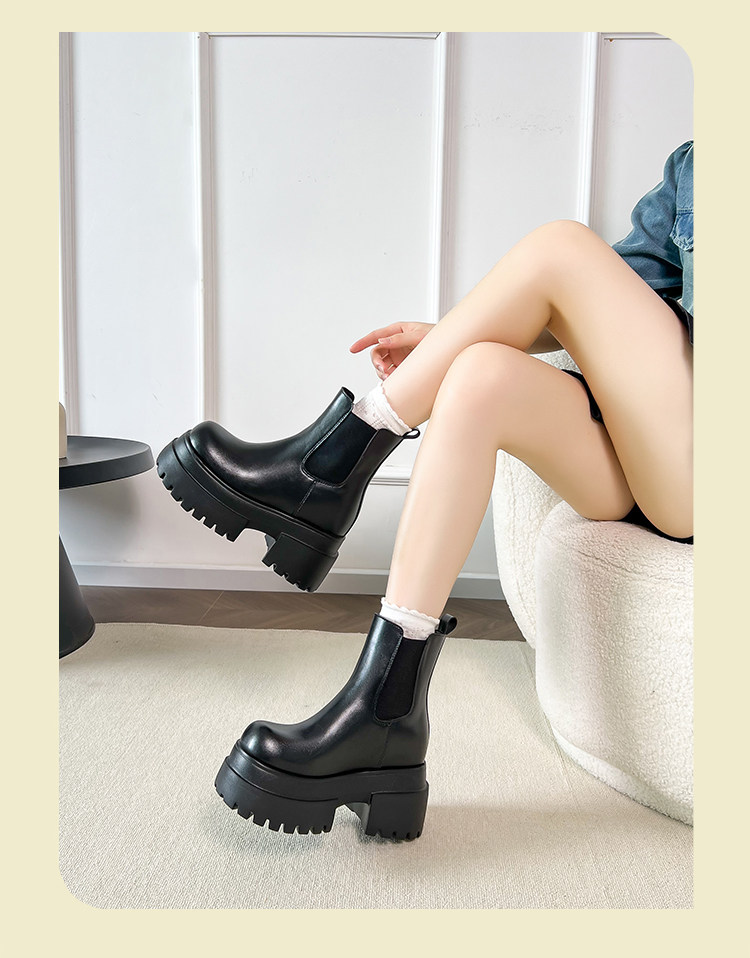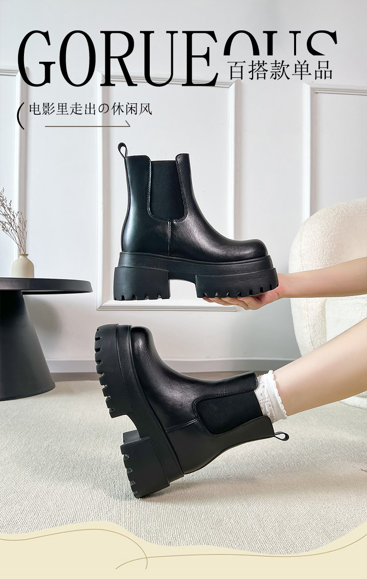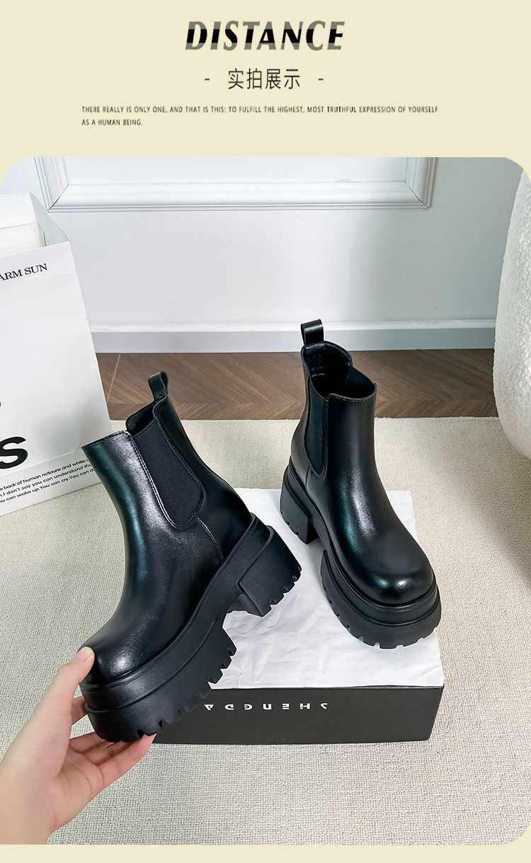 內增高靴子黑色切爾西菸筒短靴女2025秋冬厚底小個子瘦瘦靴馬丁靴